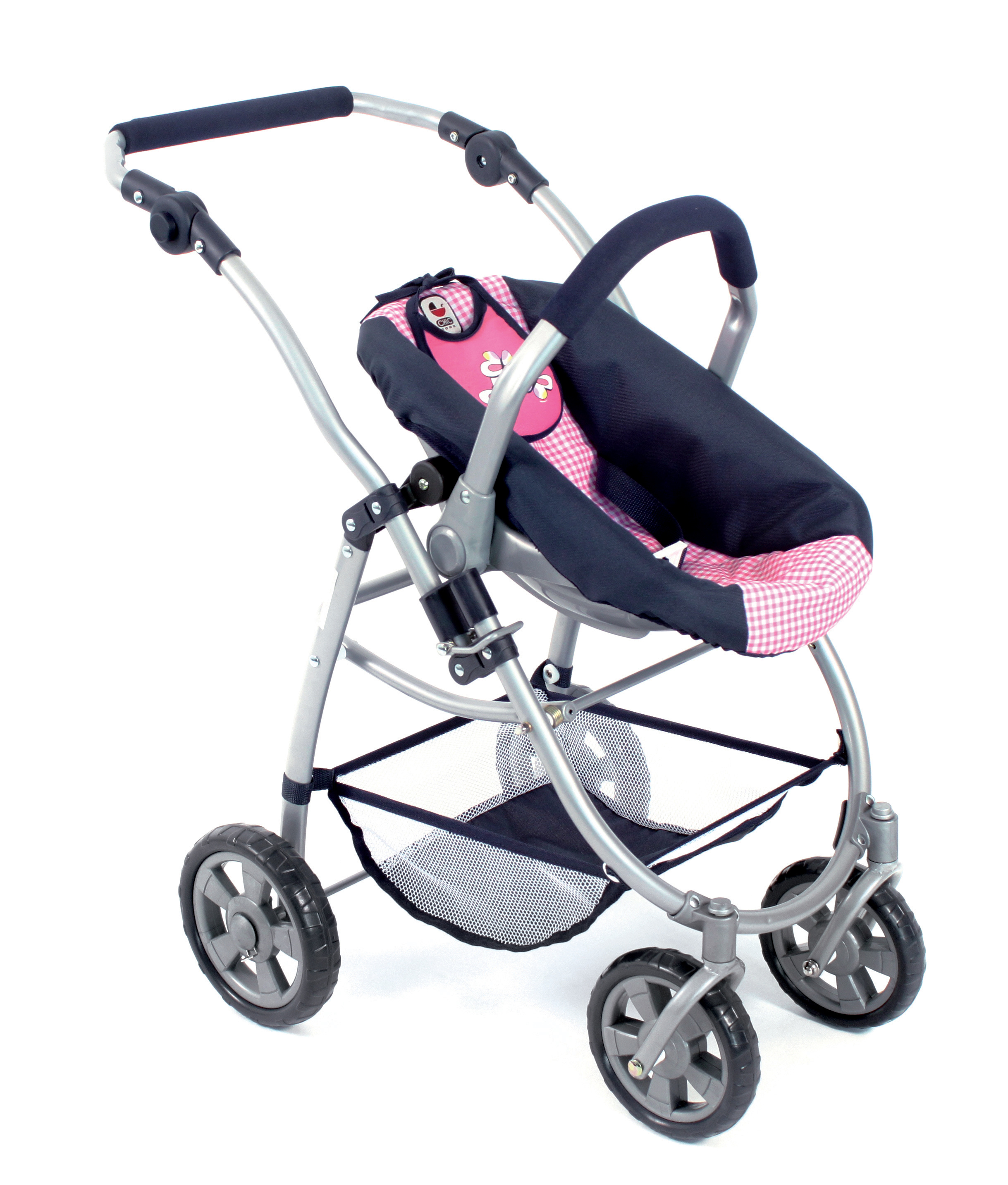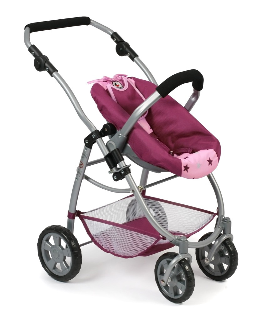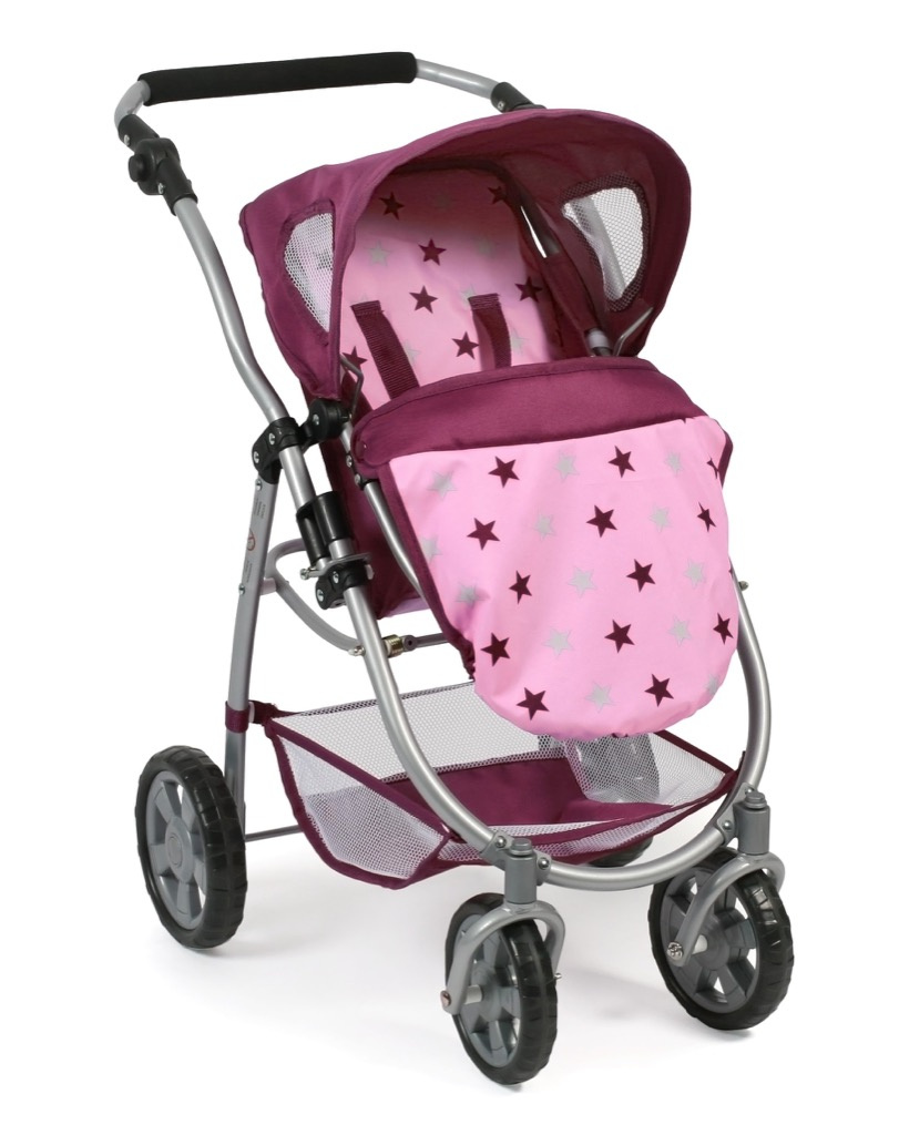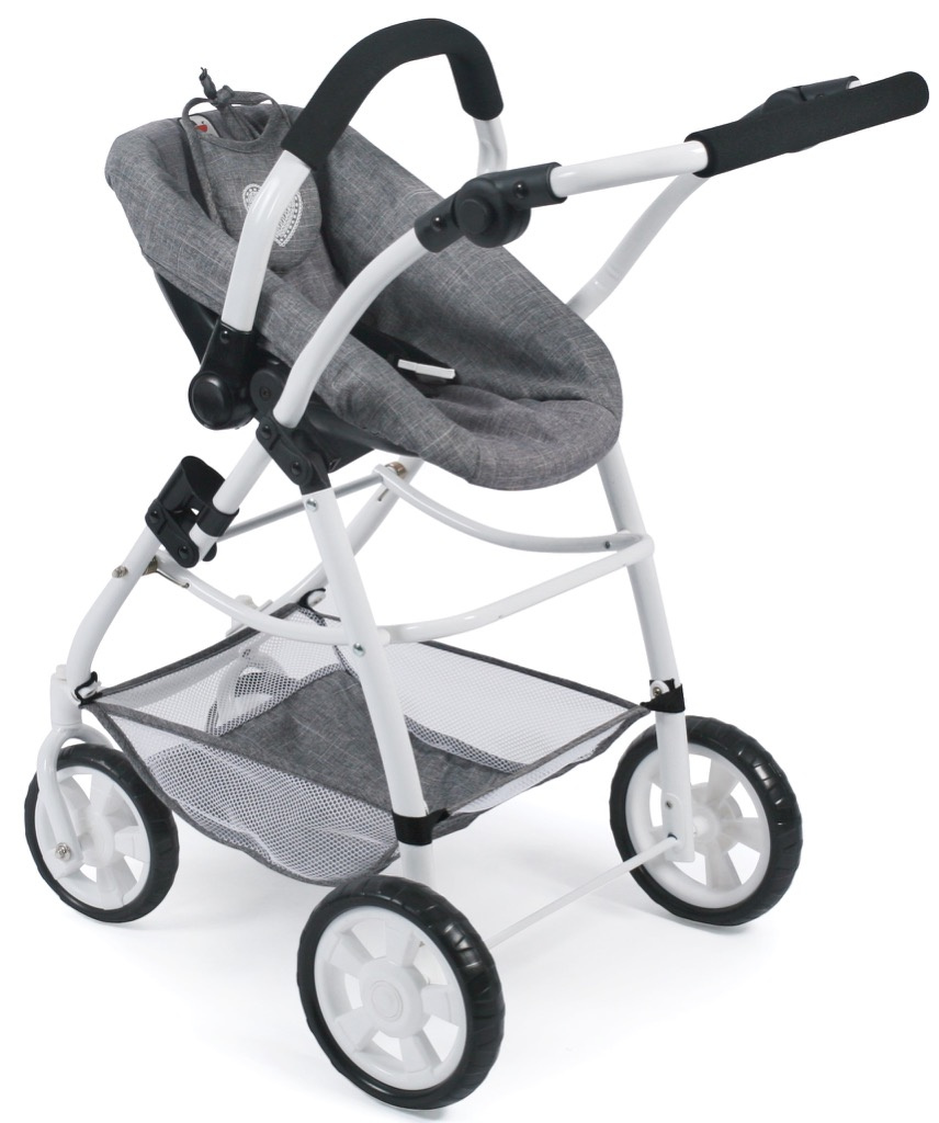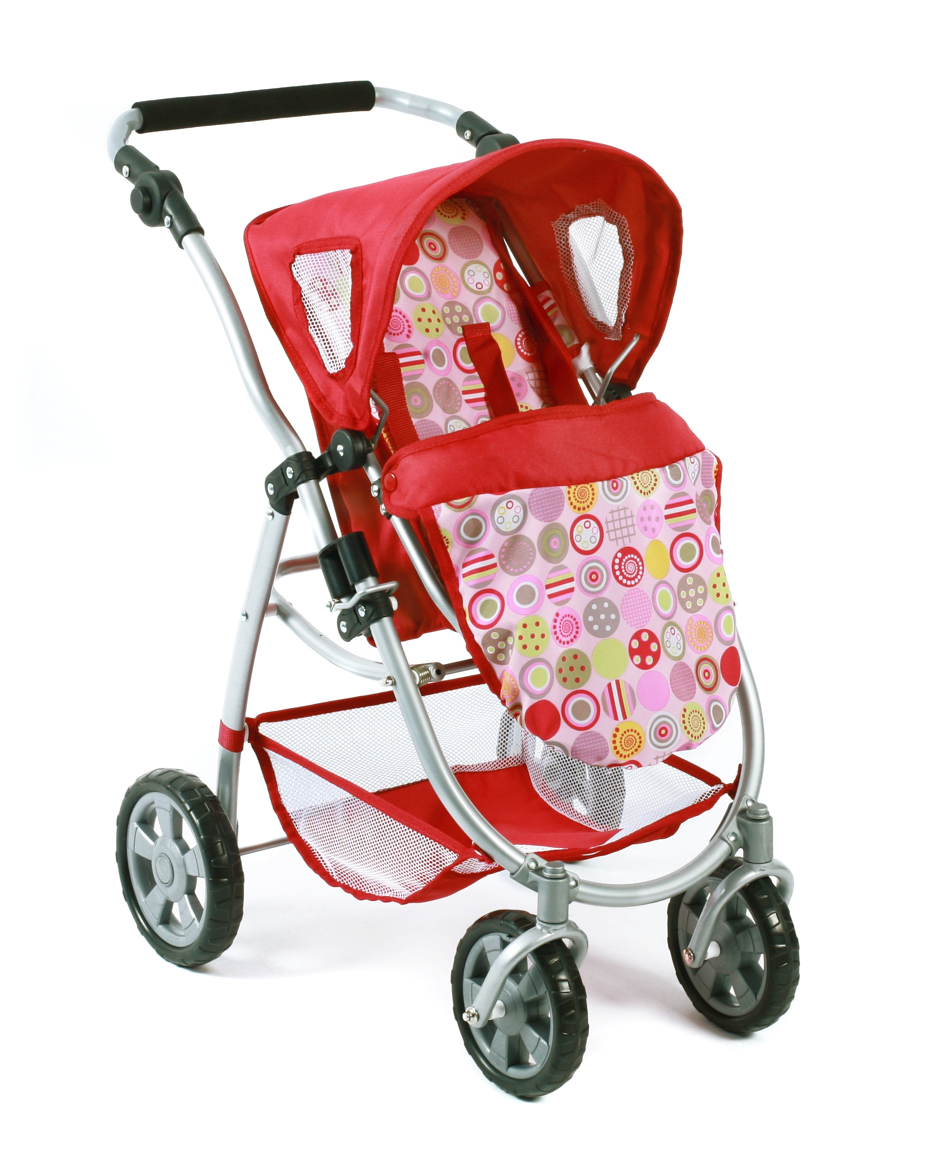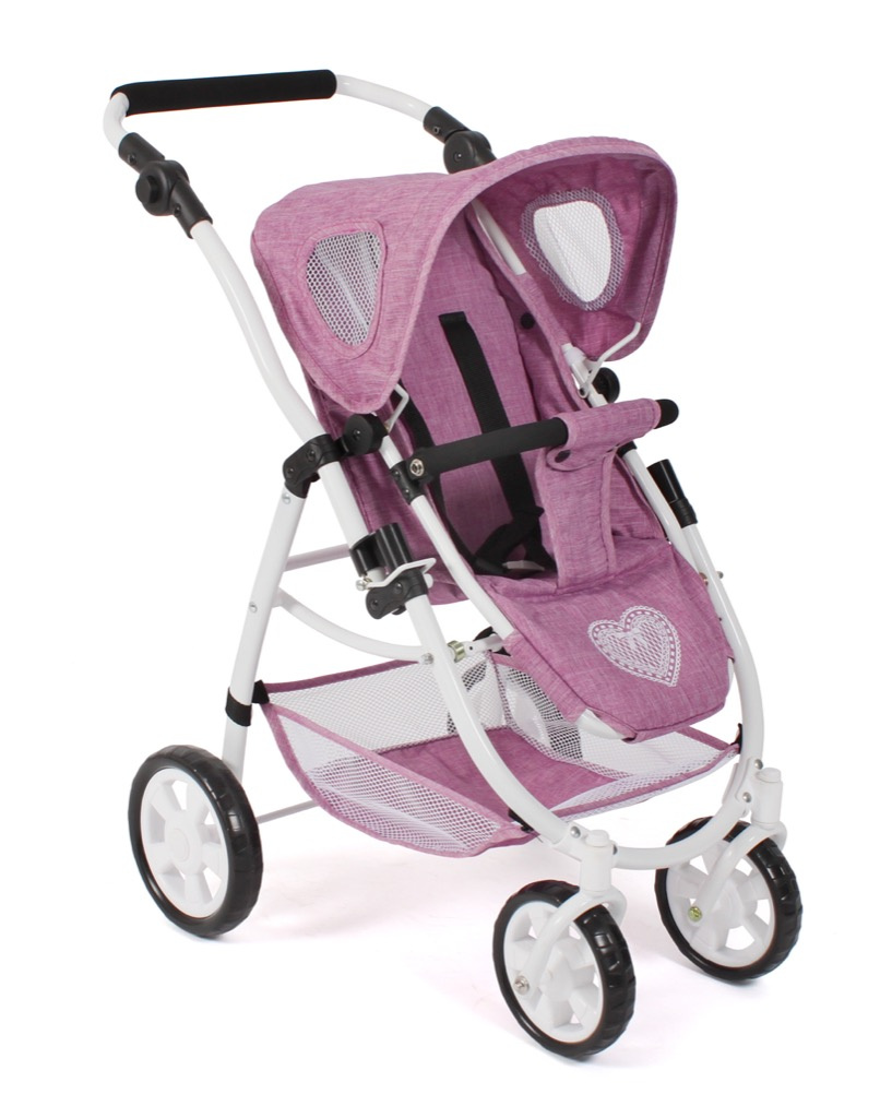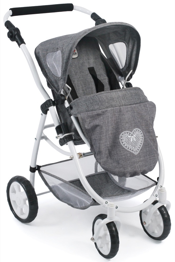 Korbičky lze složit na plocho pro transport nebo uskladnění. Sportovní korba má hrazdu a pás na upínání panenky. V hluboké korbě je slamníček. Korbička je vybavena ušima pro snadné přenášení, autosedačka je vybavena klasickým madlem, jako je to u sedaček pro dětská miminka. Přední kolečka se otáčejí kolem svislé osy. Kočárek má nastavitelnou rukojeť, samozřejmostí je síťka na drobnosti ve spodu kostry.
