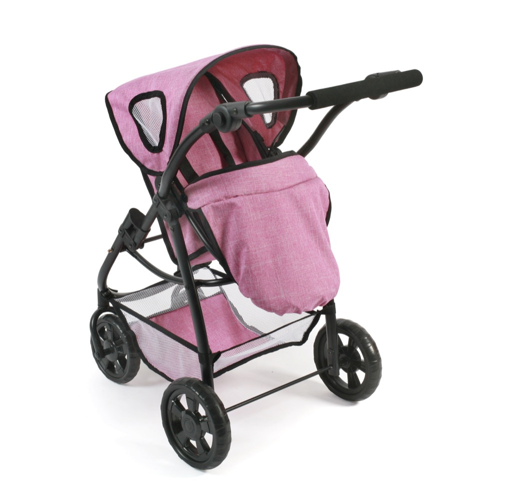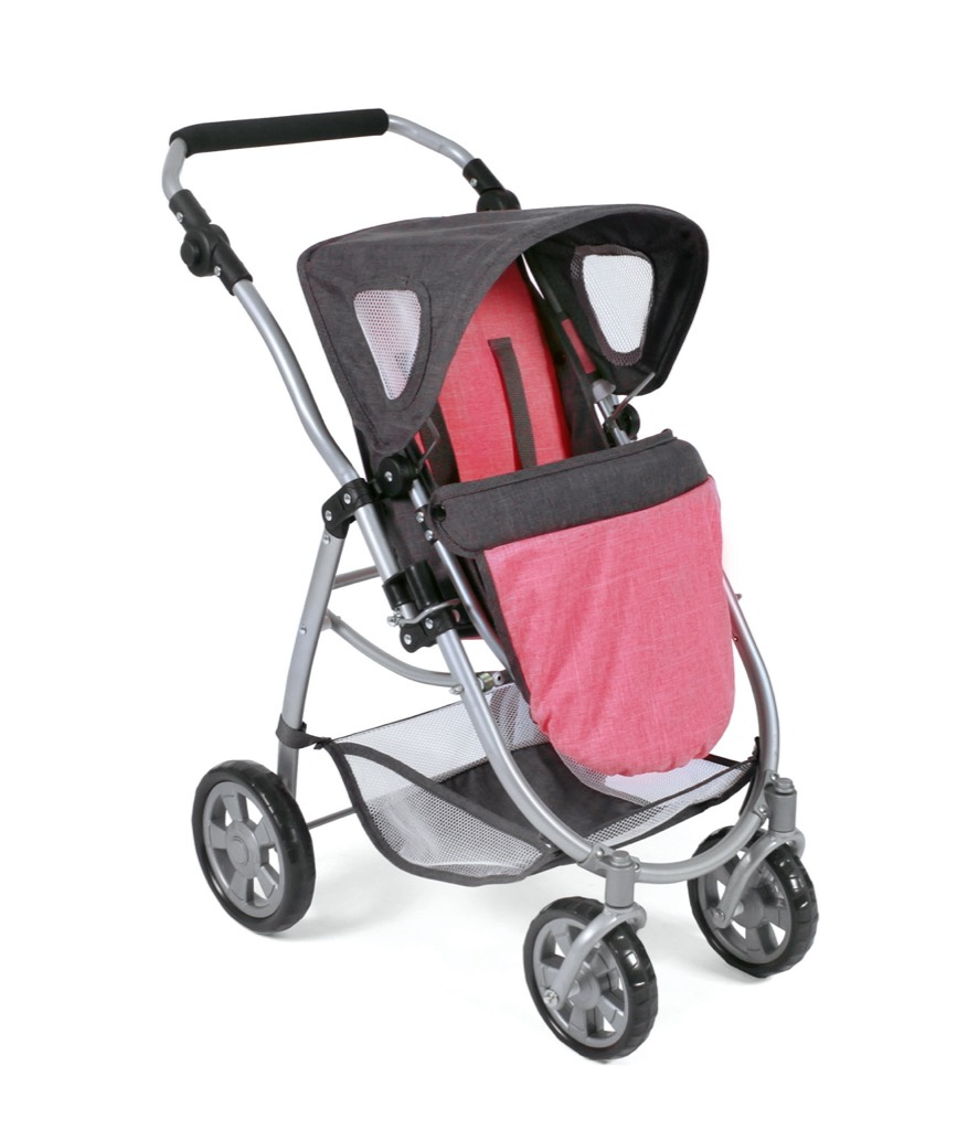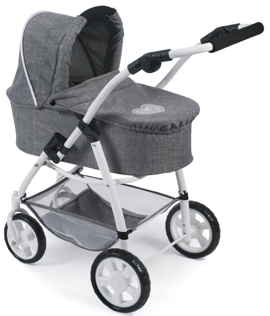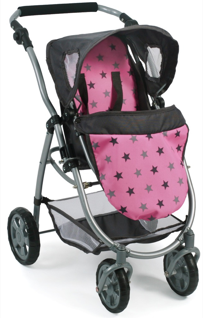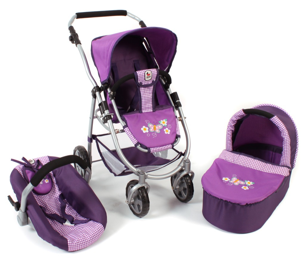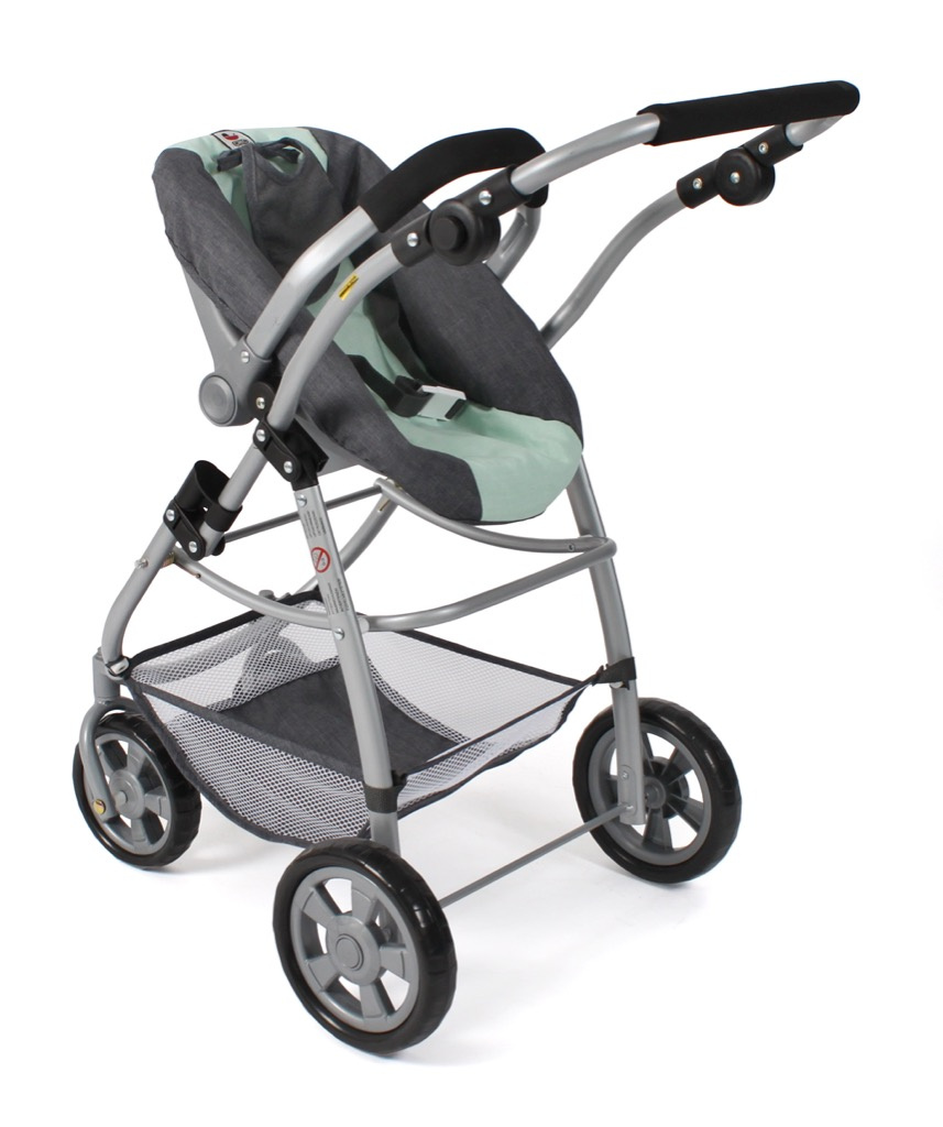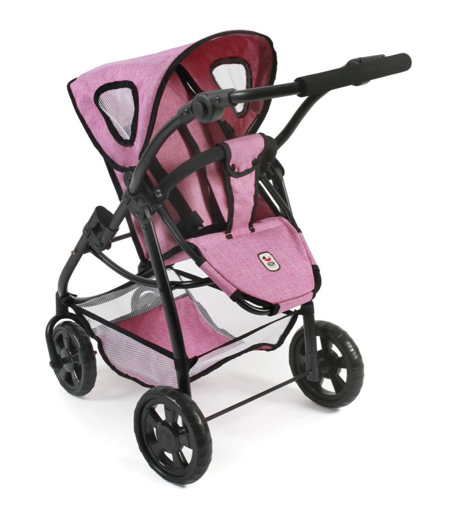 Korbičky lze složit na plocho pro transport nebo uskladnění. Sportovní korba má hrazdu a pás na upínání panenky. V hluboké korbě je slamníček. Korbička je vybavena ušima pro snadné přenášení, autosedačka je vybavena klasickým madlem, jako je to u sedaček pro dětská miminka. Přední kolečka se otáčejí kolem svislé osy. Kočárek má nastavitelnou rukojeť, samozřejmostí je síťka na drobnosti ve spodu kostry.