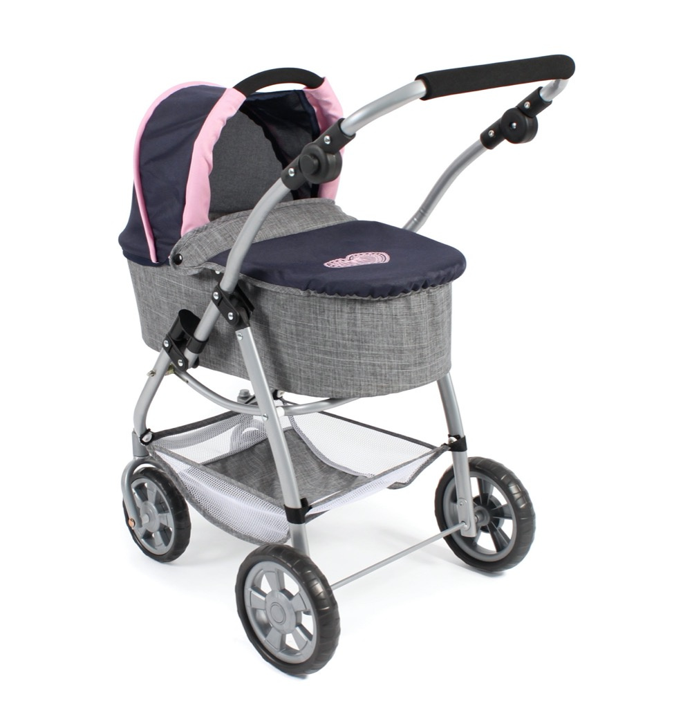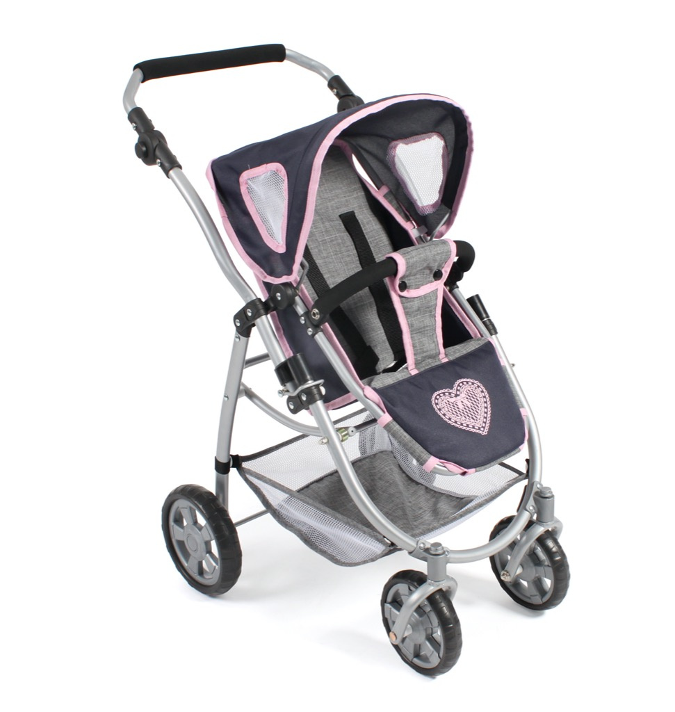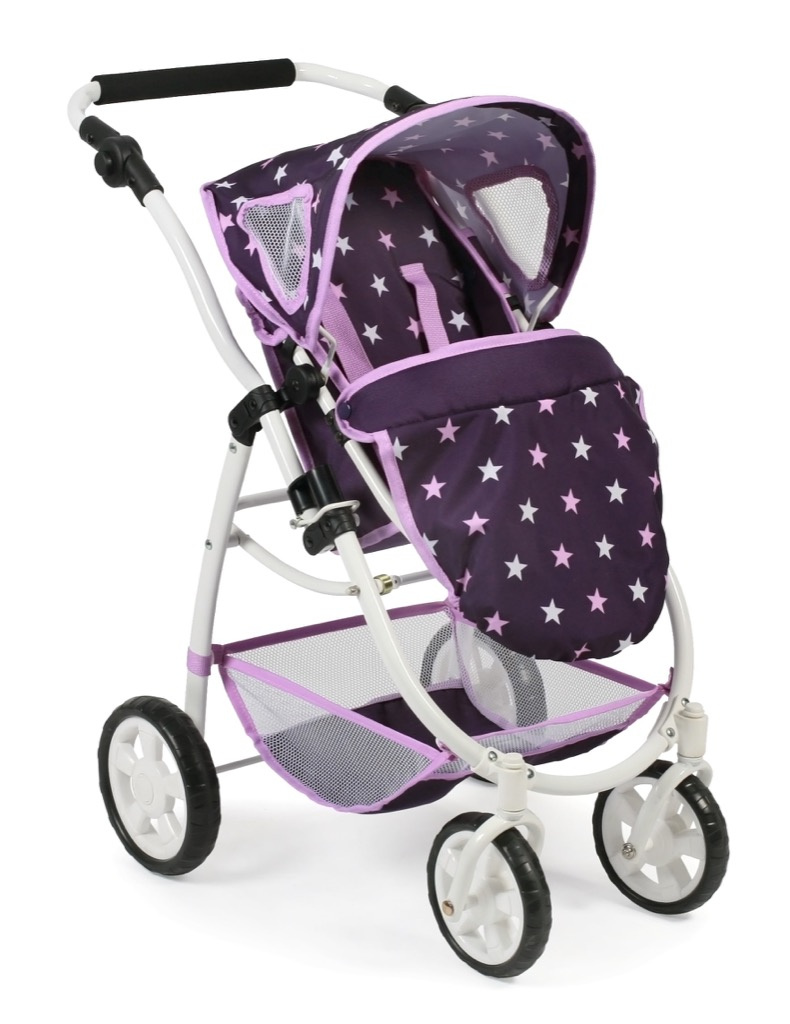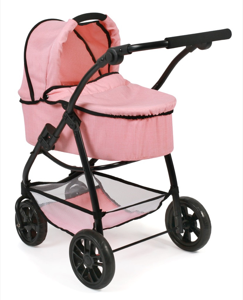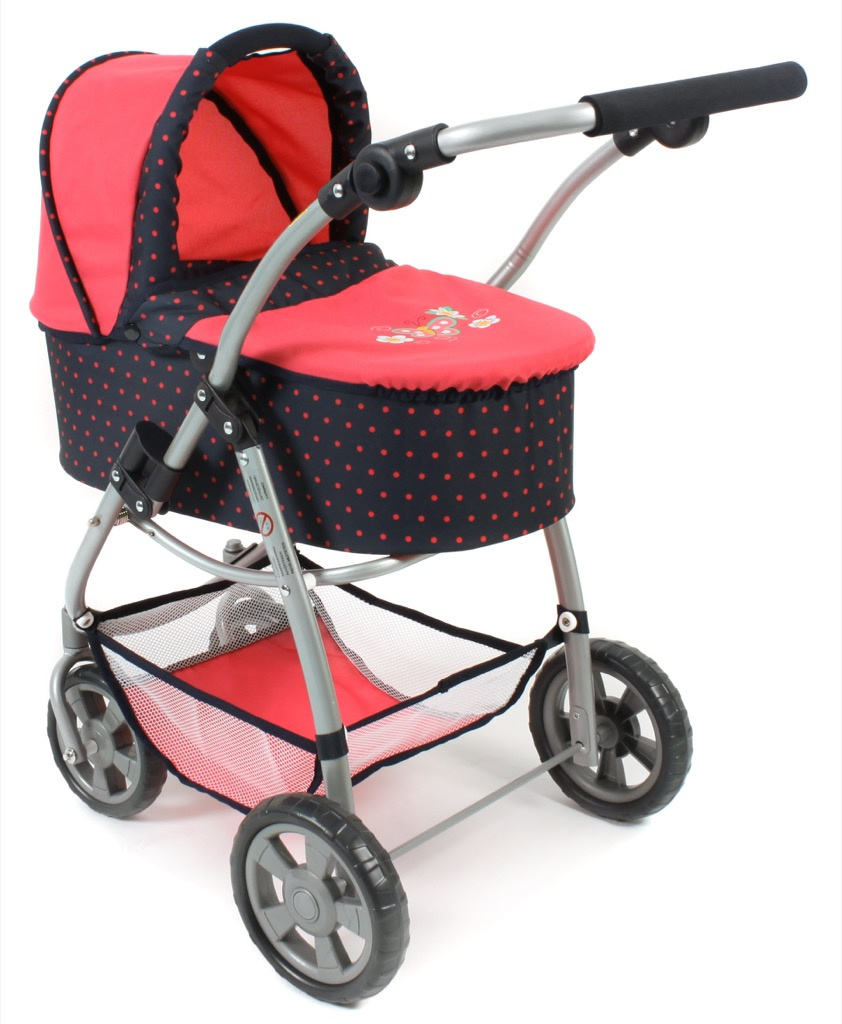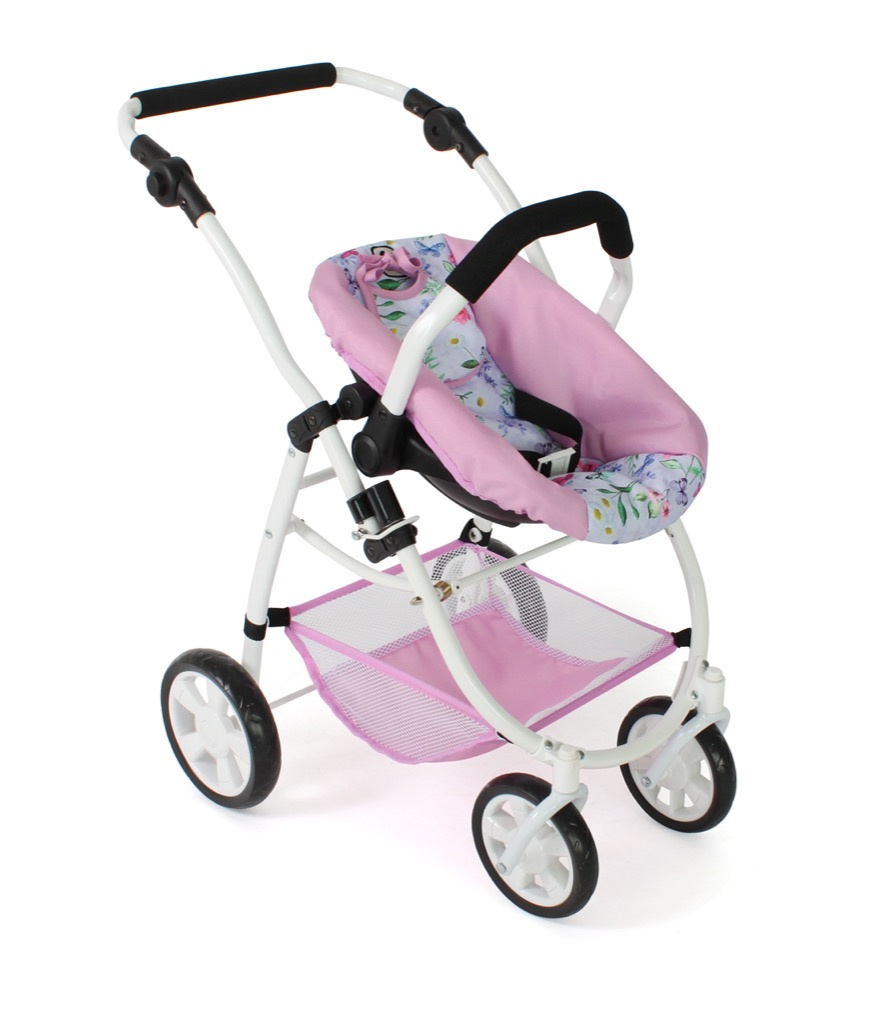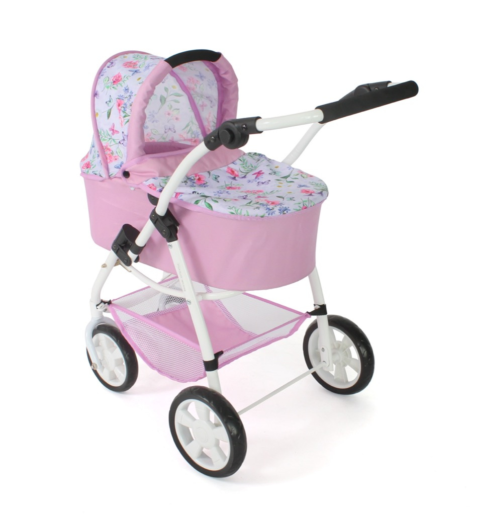 Korbičky lze složit na plocho pro transport nebo uskladnění. Sportovní korba má hrazdu a pás na upínání panenky. V hluboké korbě je slamníček. Korbička je vybavena ušima pro snadné přenášení, autosedačka je vybavena klasickým madlem, jako je to u sedaček pro dětská miminka. Přední kolečka se otáčejí kolem svislé osy. Kočárek má nastavitelnou rukojeť, samozřejmostí je síťka na drobnosti ve spodu kostry.