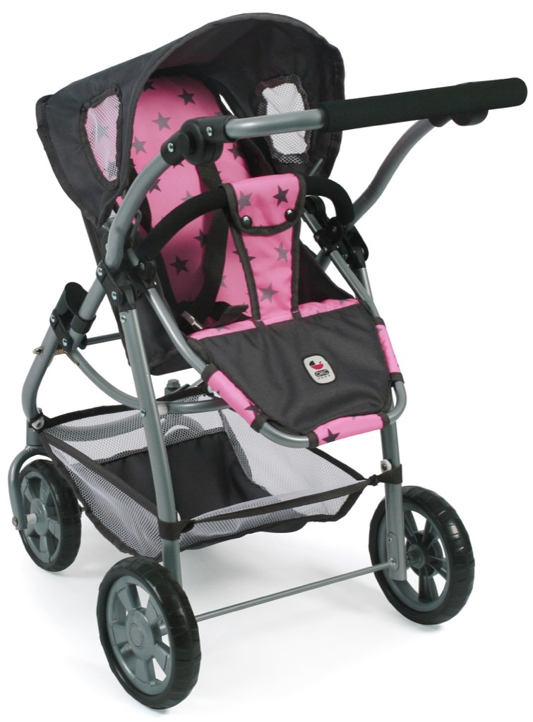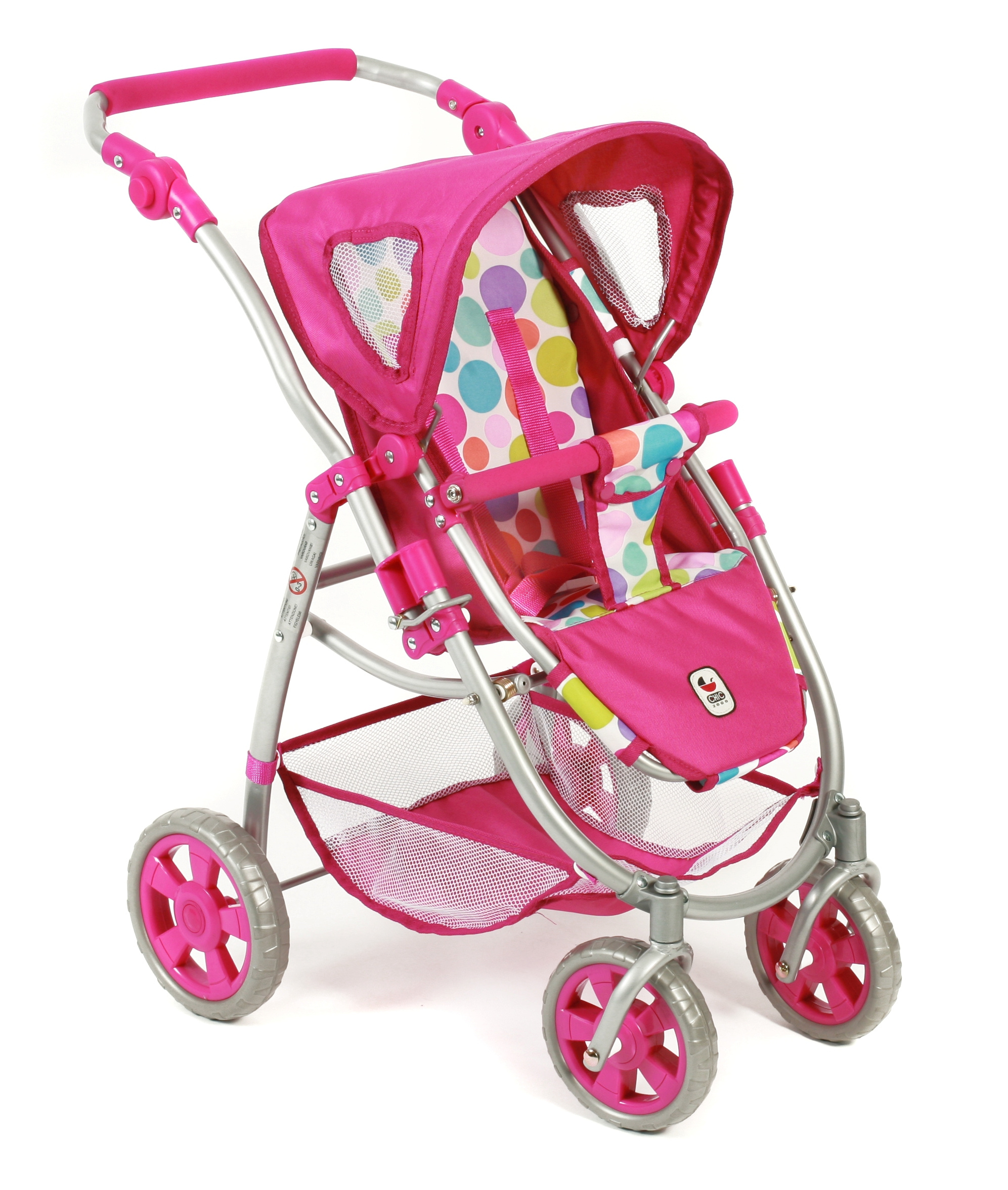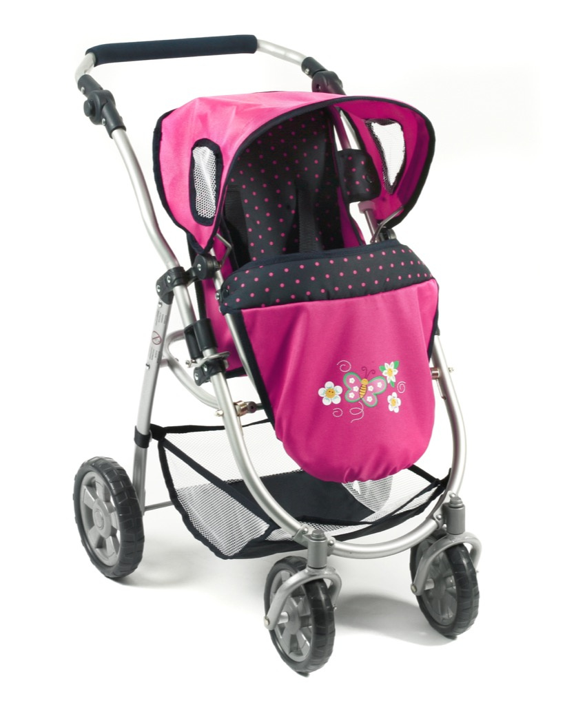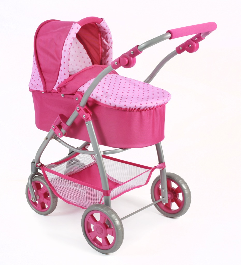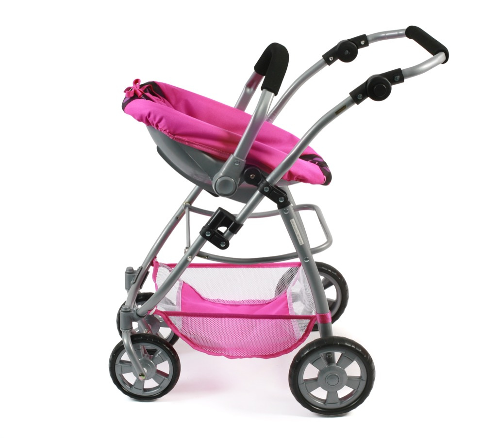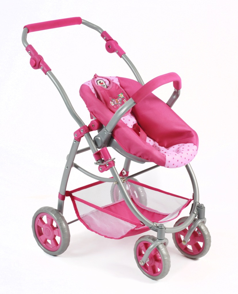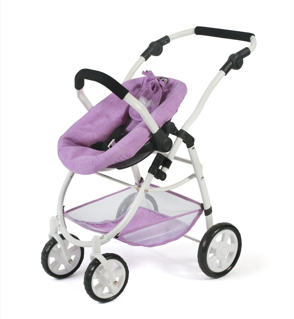 Korbičky lze složit na plocho pro transport nebo uskladnění. Sportovní korba má hrazdu a pás na upínání panenky. V hluboké korbě je slamníček. Korbička je vybavena ušima pro snadné přenášení, autosedačka je vybavena klasickým madlem, jako je to u sedaček pro dětská miminka. Přední kolečka se otáčejí kolem svislé osy. Kočárek má nastavitelnou rukojeť, samozřejmostí je síťka na drobnosti ve spodu kostry.