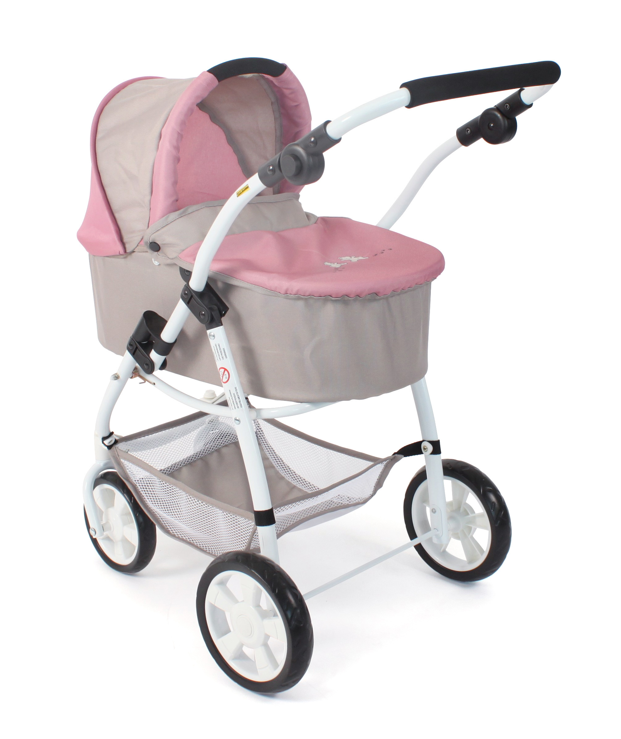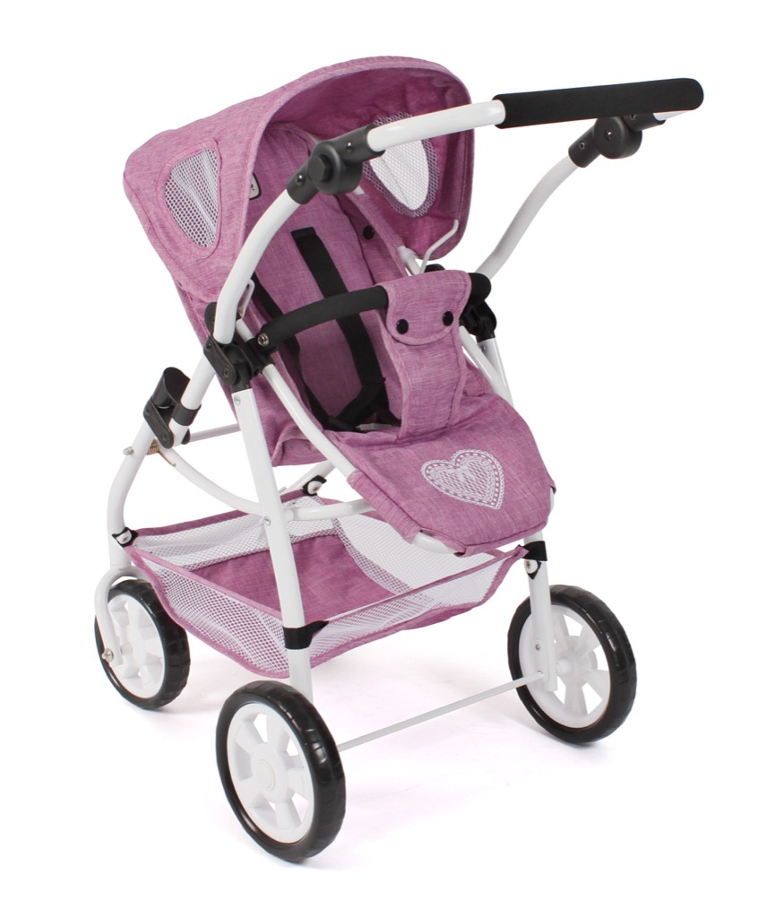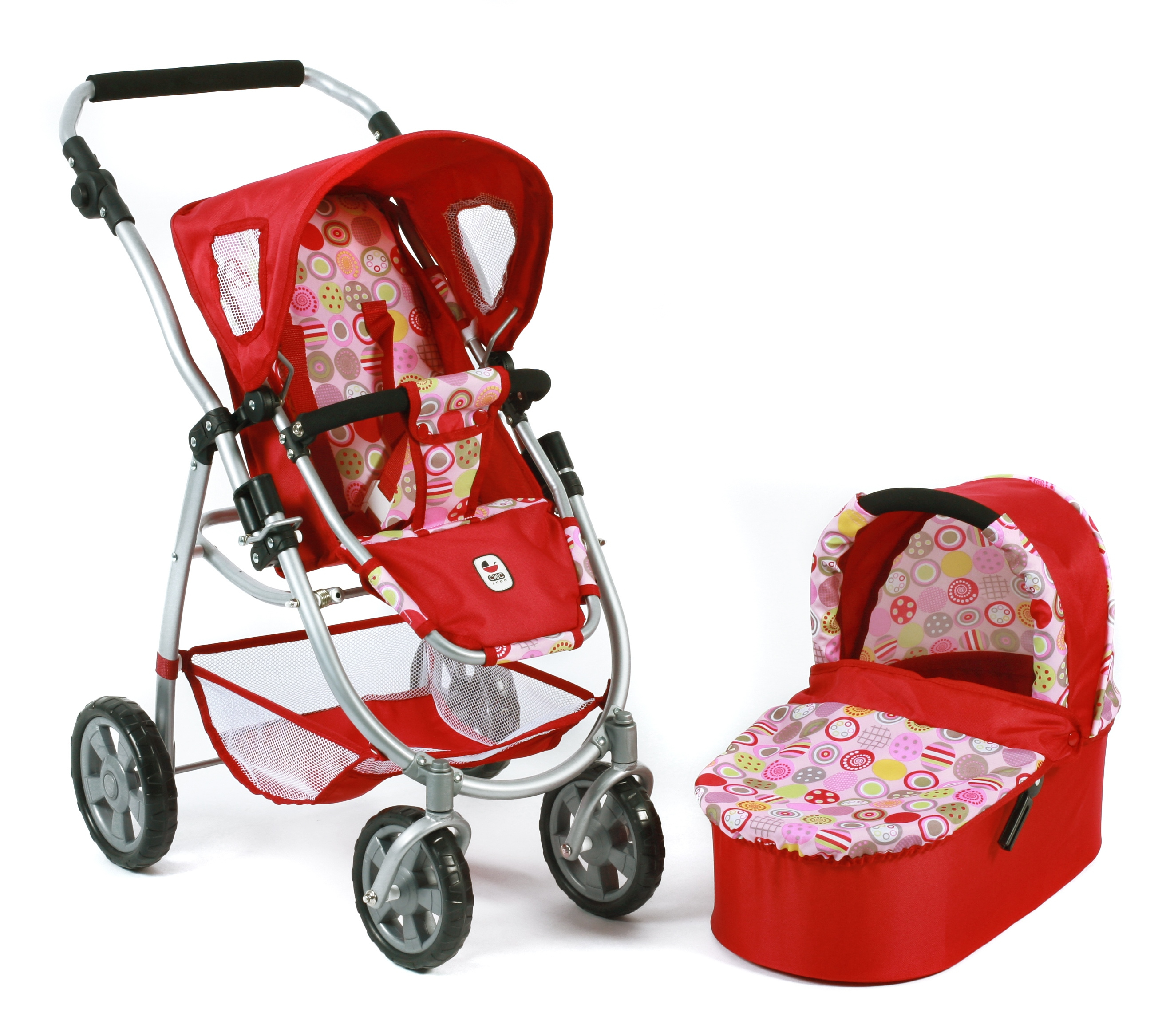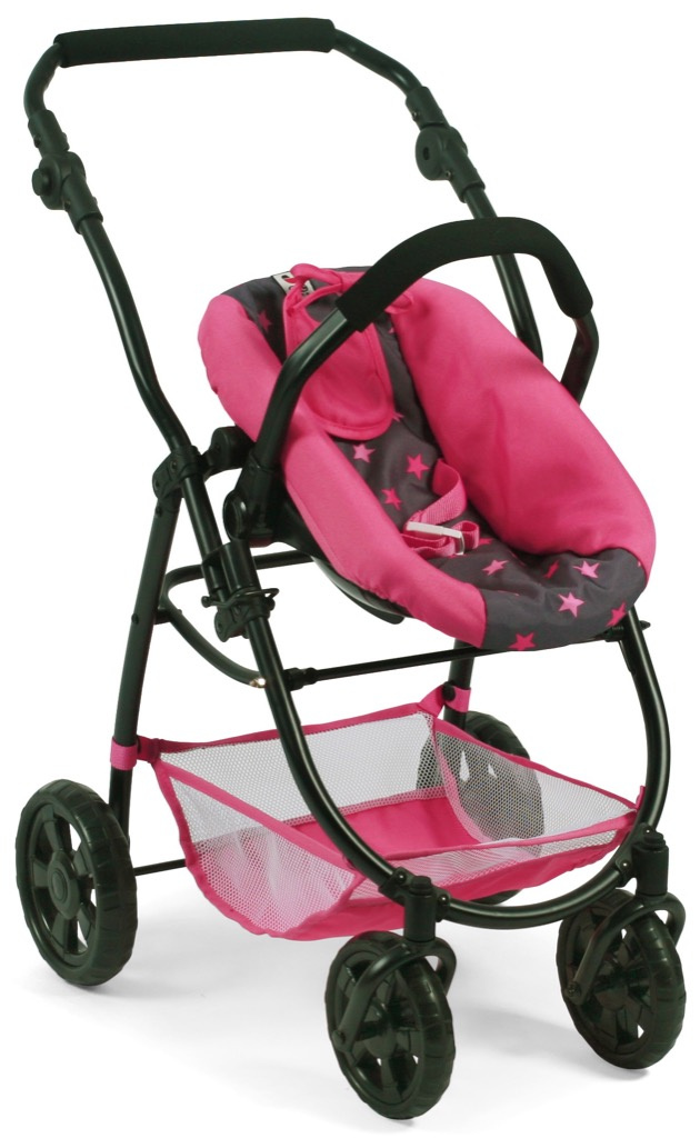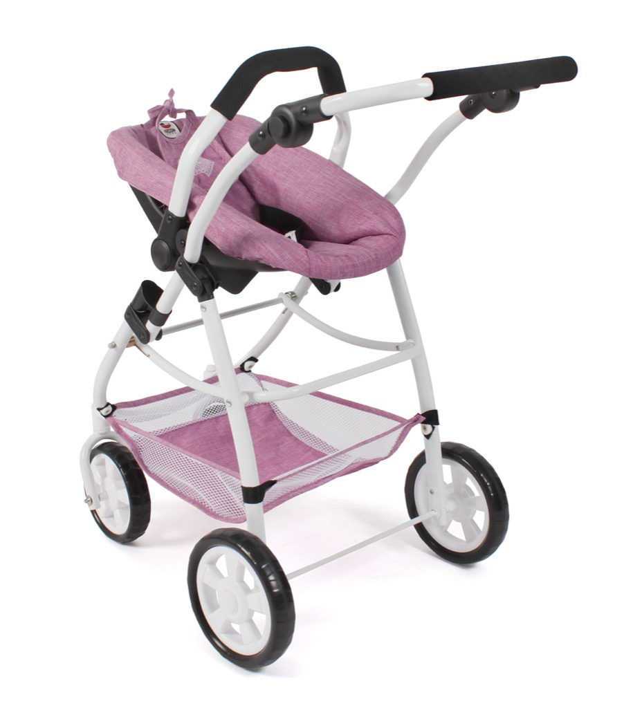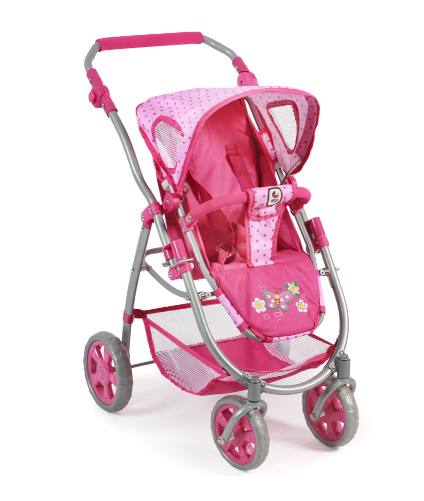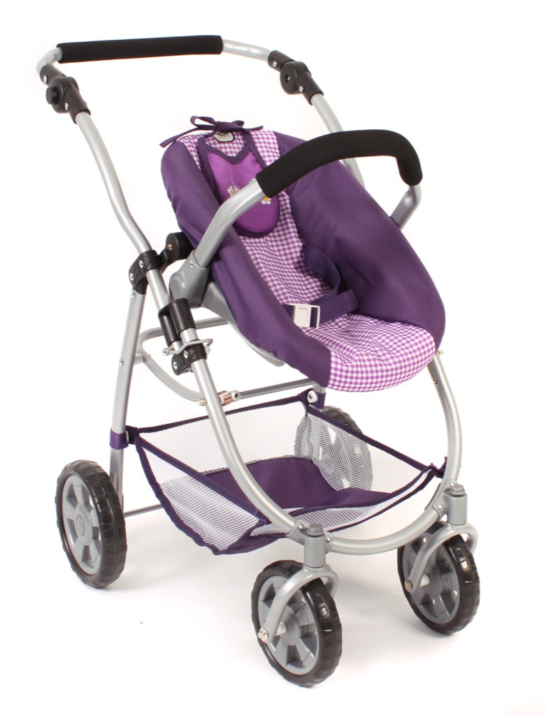 Korbičky lze složit na plocho pro transport nebo uskladnění. Sportovní korba má hrazdu a pás na upínání panenky. V hluboké korbě je slamníček. Korbička je vybavena ušima pro snadné přenášení, autosedačka je vybavena klasickým madlem, jako je to u sedaček pro dětská miminka. Přední kolečka se otáčejí kolem svislé osy. Kočárek má nastavitelnou rukojeť, samozřejmostí je síťka na drobnosti ve spodu kostry.