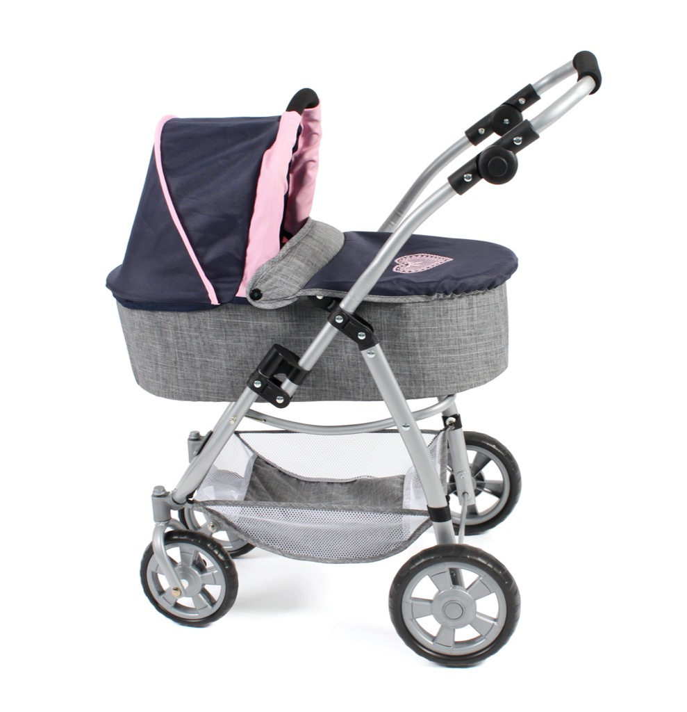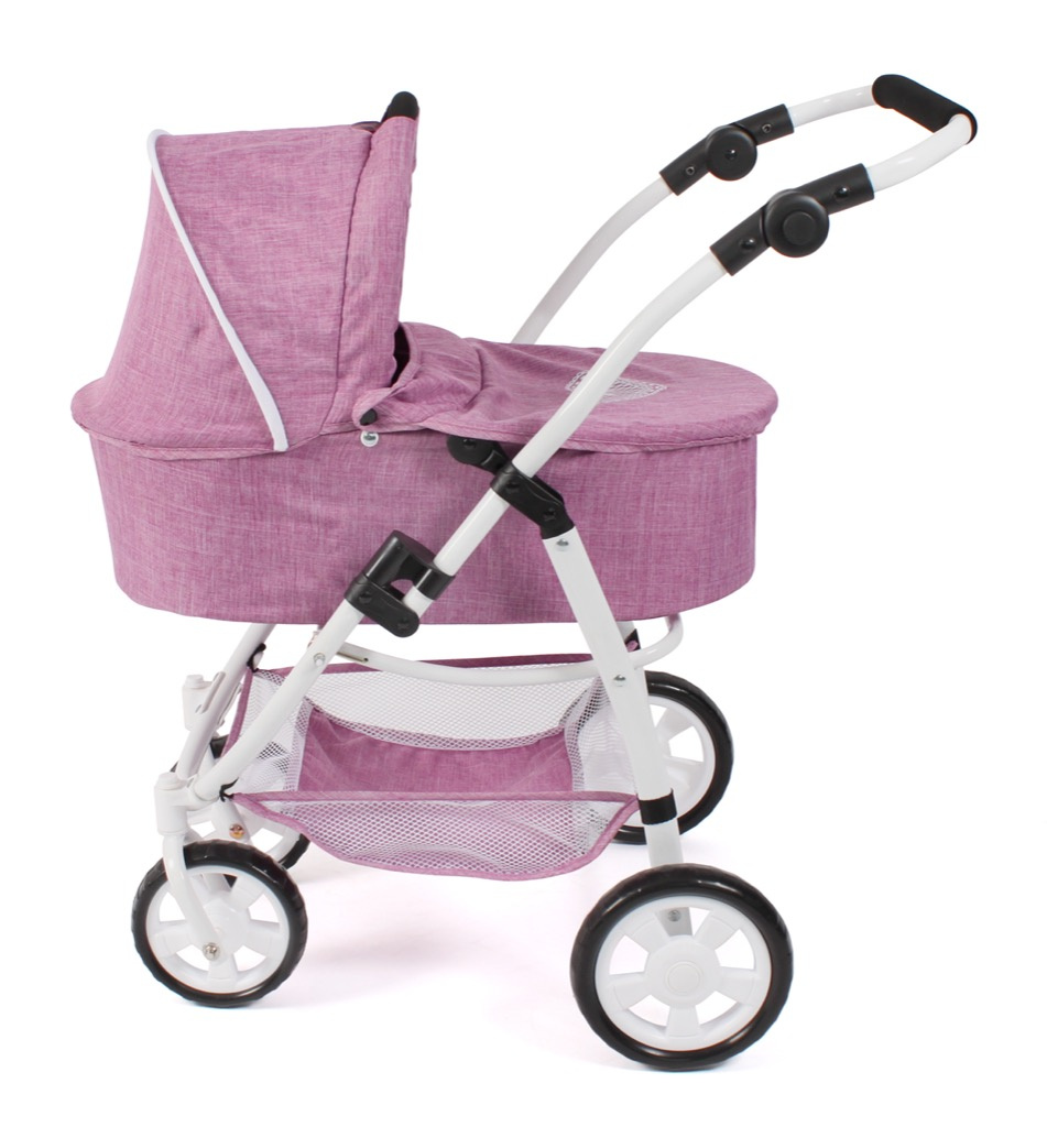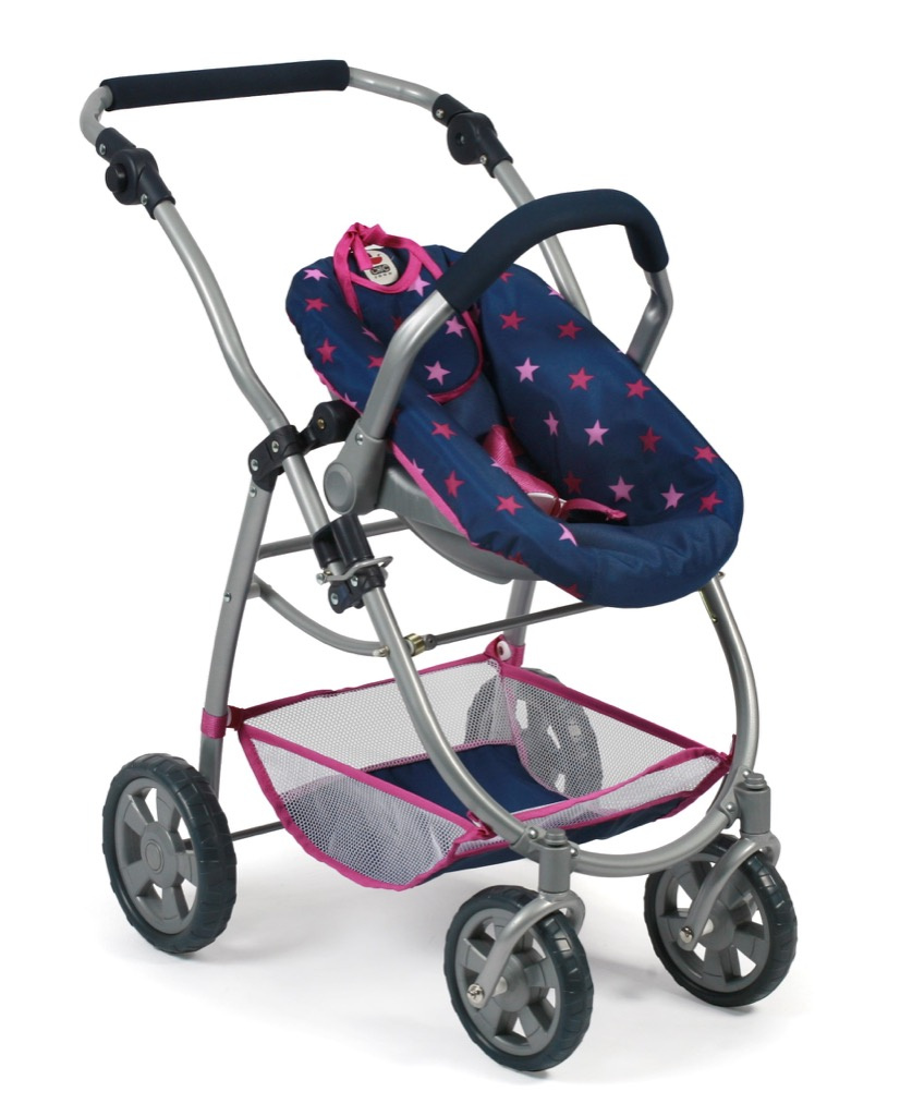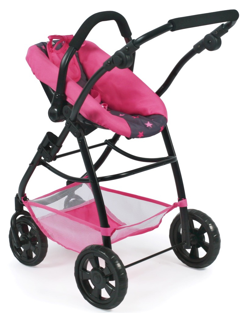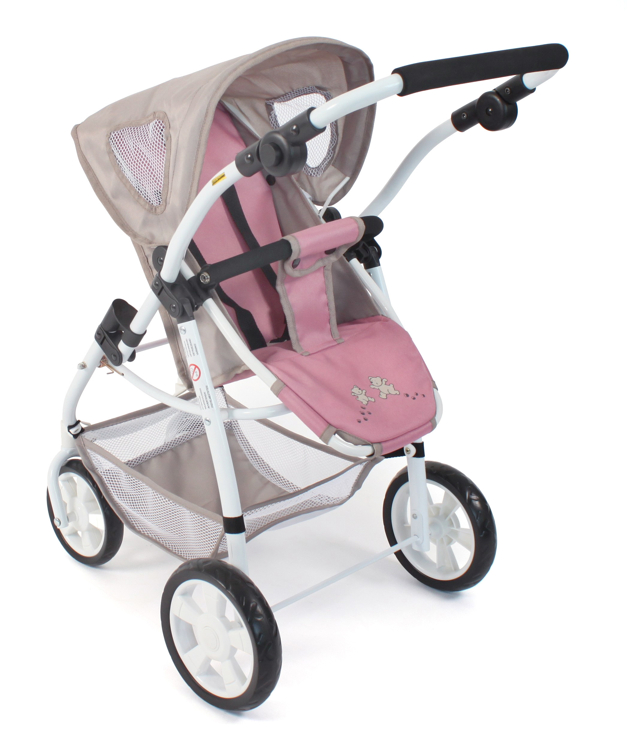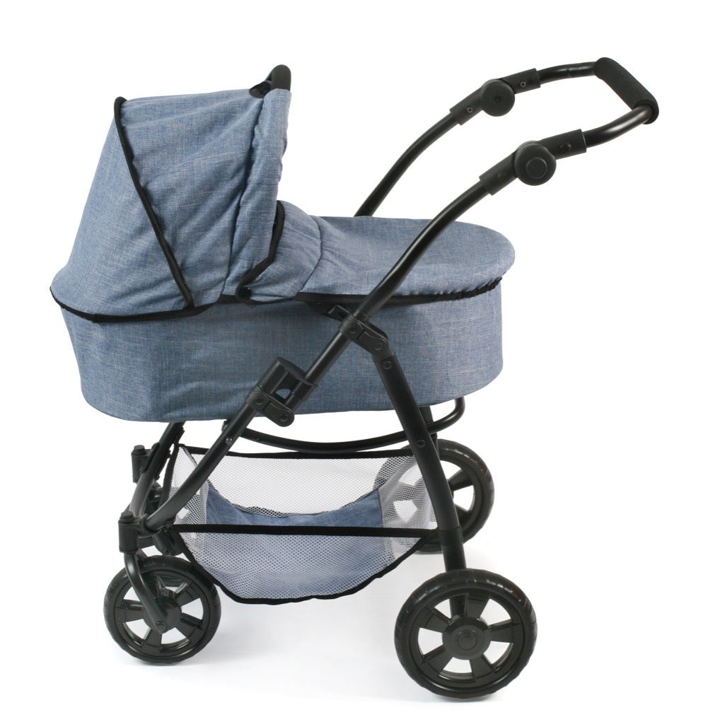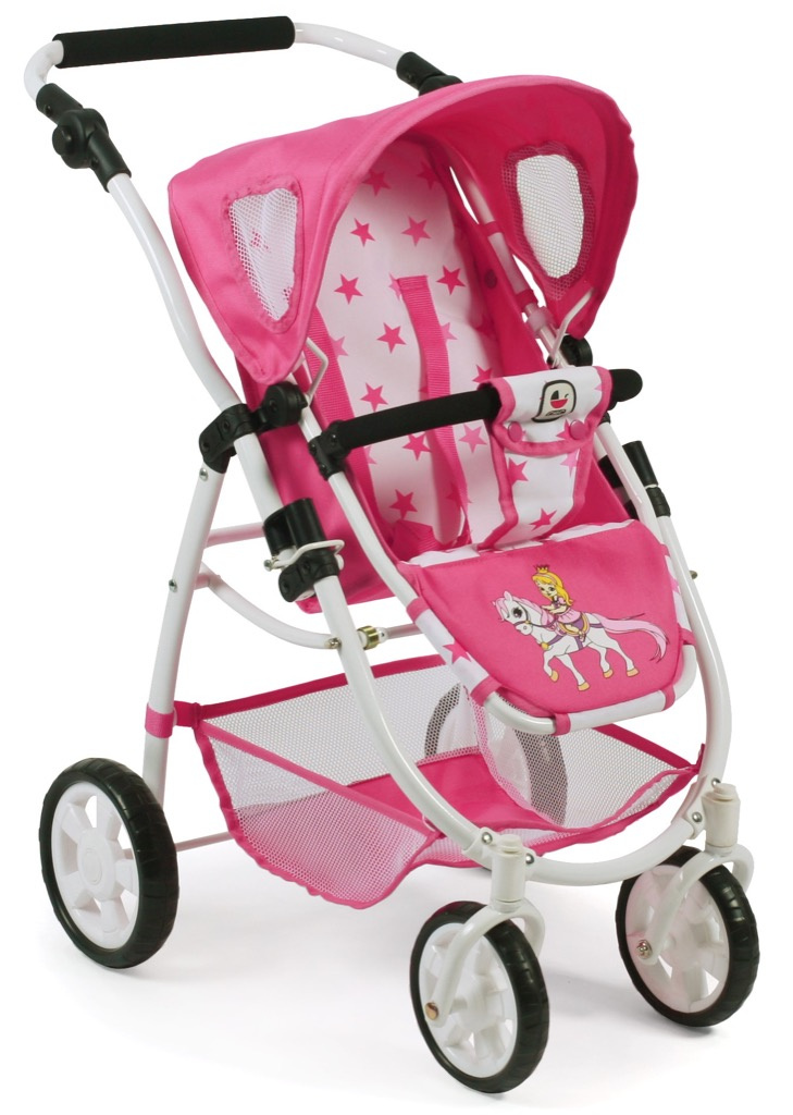 Korbičky lze složit na plocho pro transport nebo uskladnění. Sportovní korba má hrazdu a pás na upínání panenky. V hluboké korbě je slamníček. Korbička je vybavena ušima pro snadné přenášení, autosedačka je vybavena klasickým madlem, jako je to u sedaček pro dětská miminka. Přední kolečka se otáčejí kolem svislé osy. Kočárek má nastavitelnou rukojeť, samozřejmostí je síťka na drobnosti ve spodu kostry.