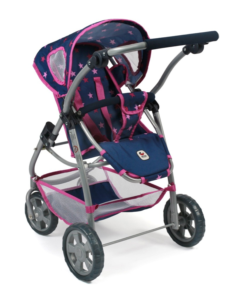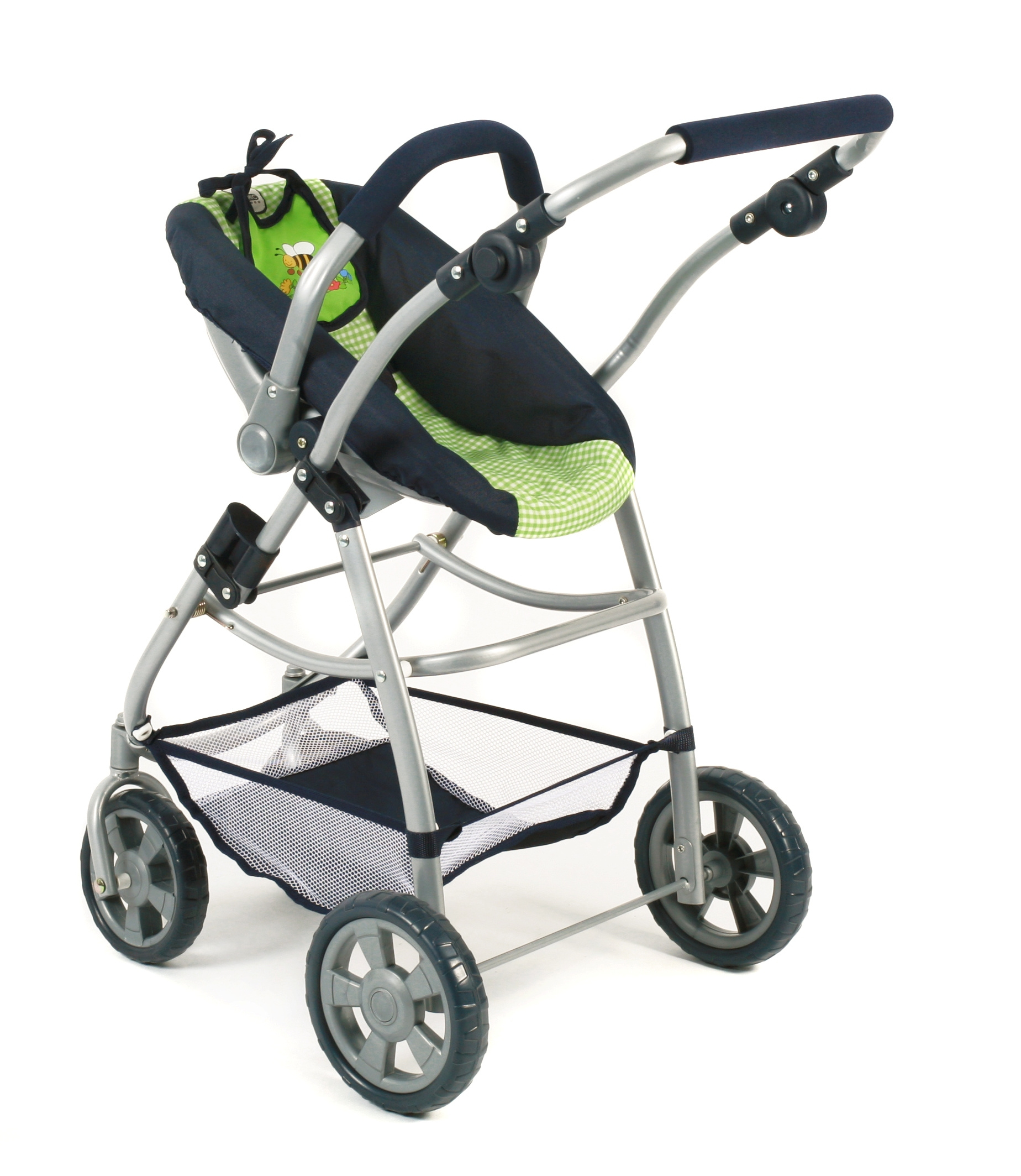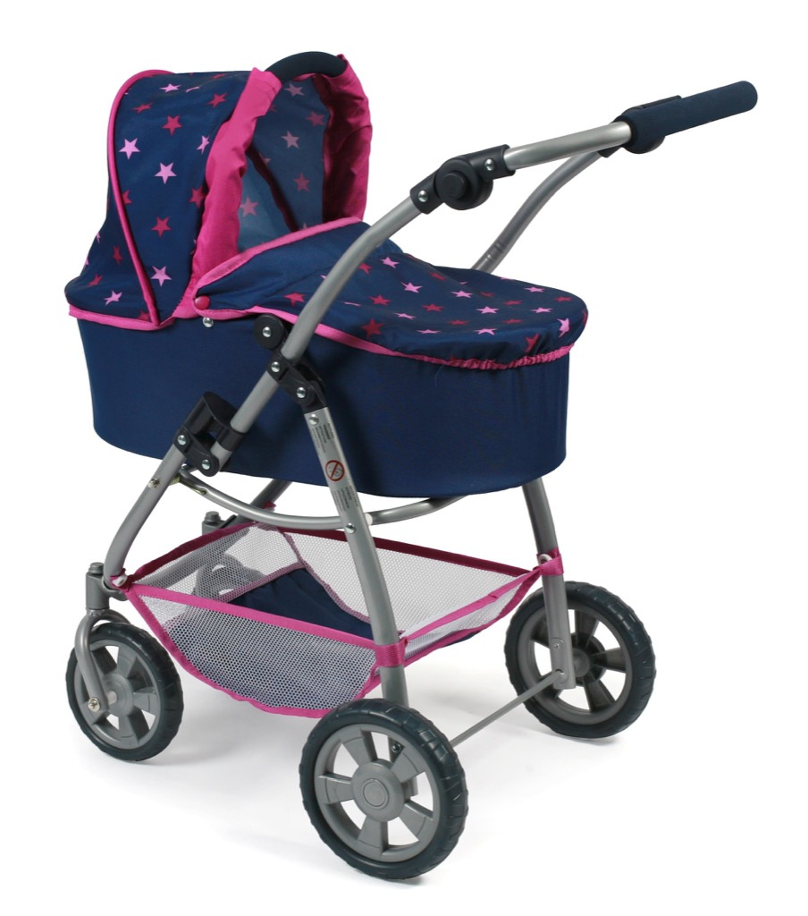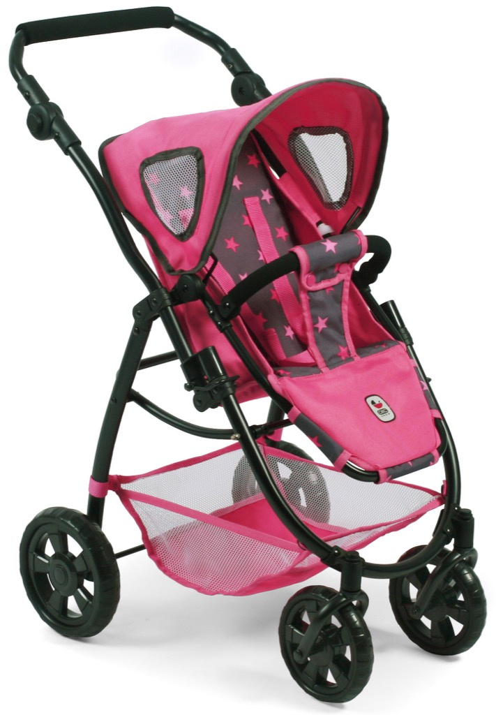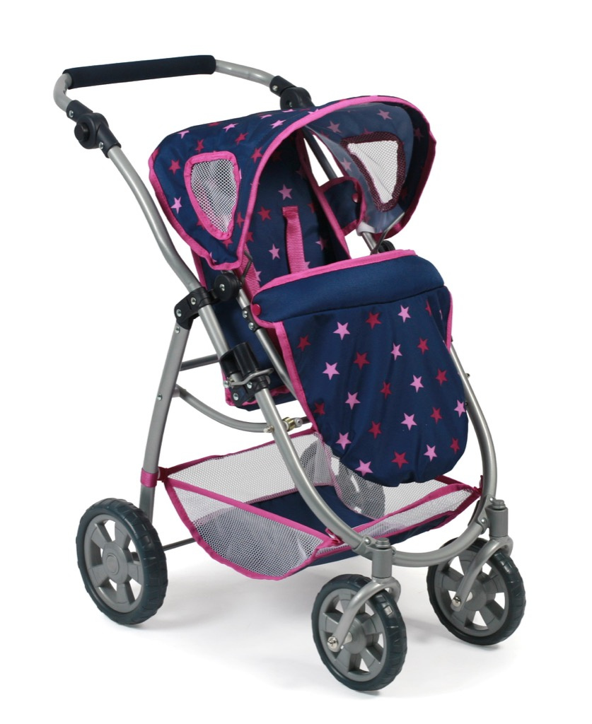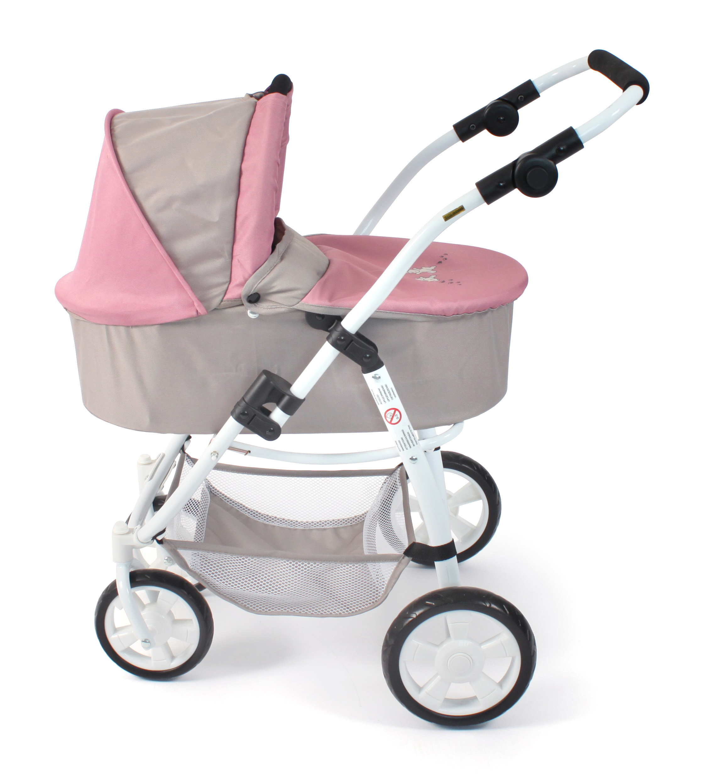 Korbičky lze složit na plocho pro transport nebo uskladnění. Sportovní korba má hrazdu a pás na upínání panenky. V hluboké korbě je slamníček. Korbička je vybavena ušima pro snadné přenášení, autosedačka je vybavena klasickým madlem, jako je to u sedaček pro dětská miminka. Přední kolečka se otáčejí kolem svislé osy. Kočárek má nastavitelnou rukojeť, samozřejmostí je síťka na drobnosti ve spodu kostry.