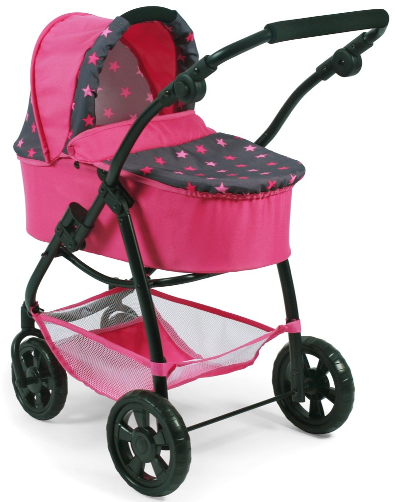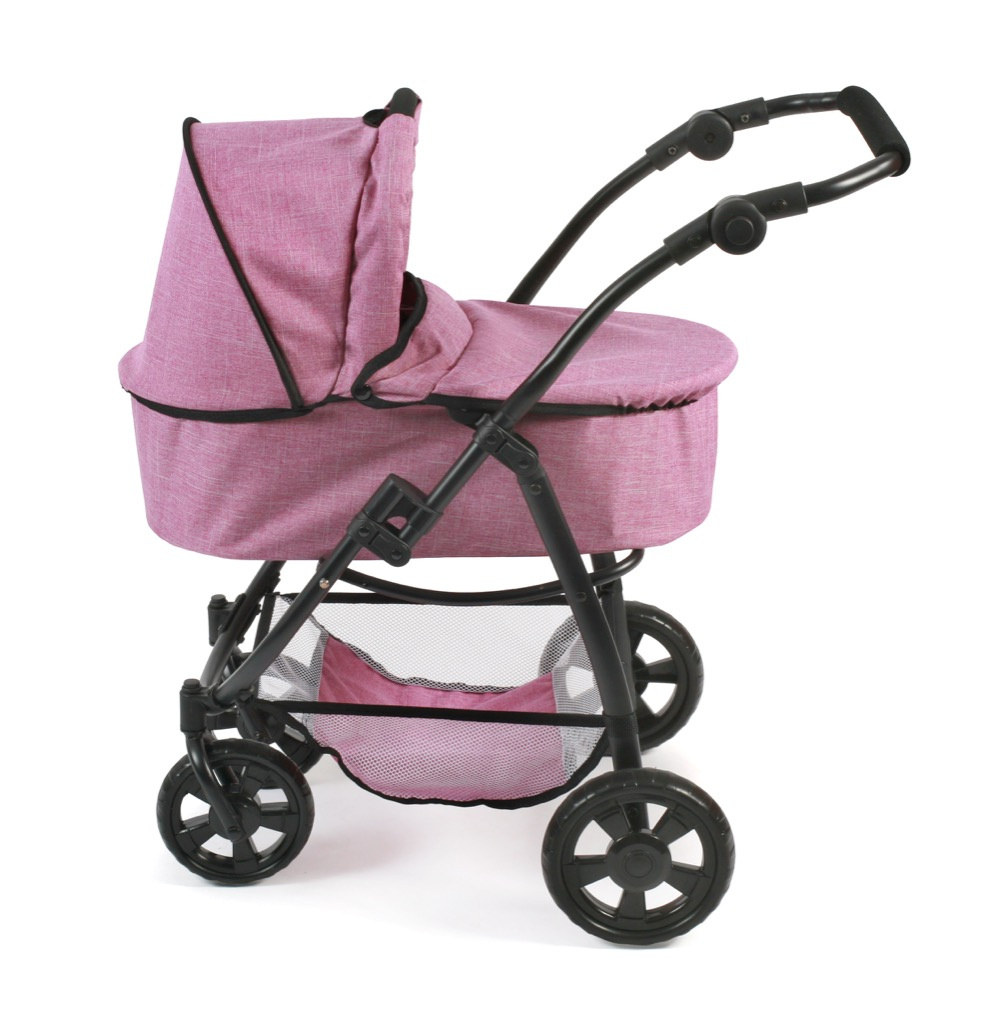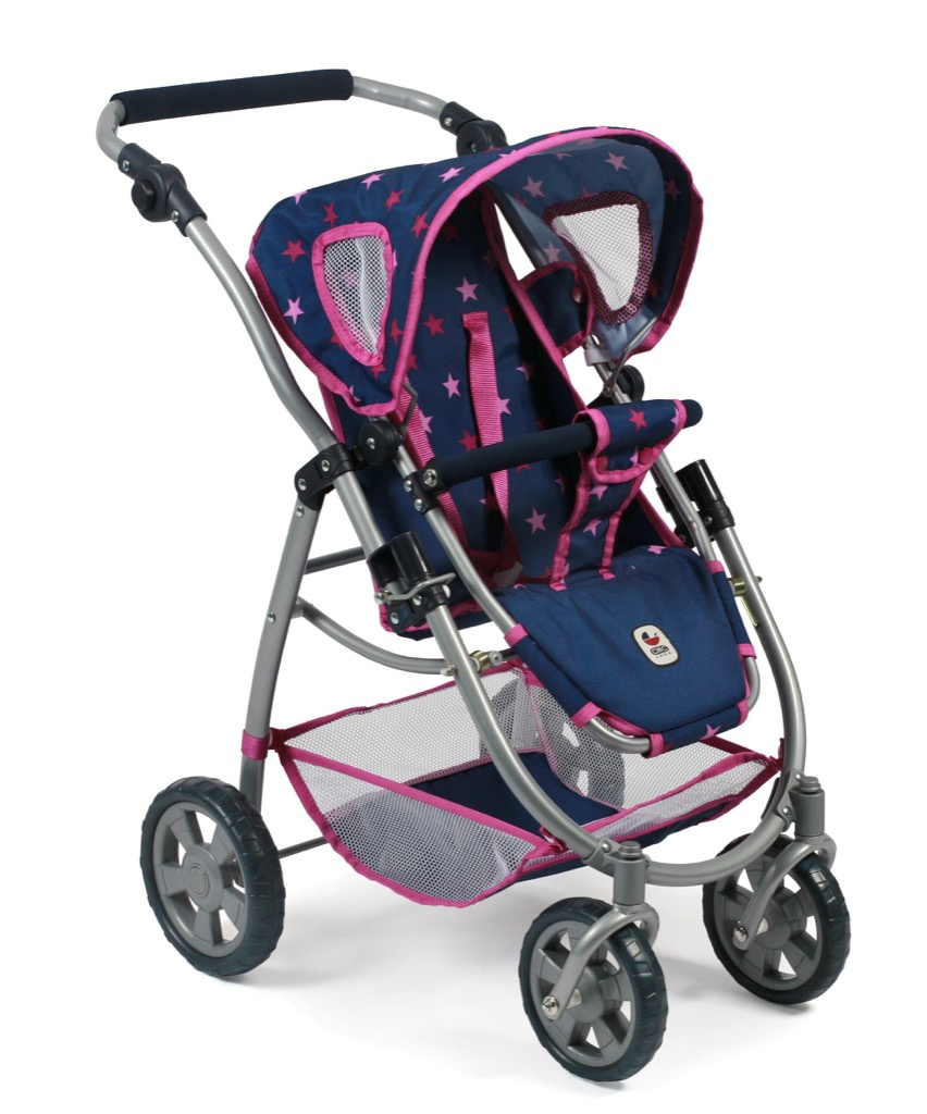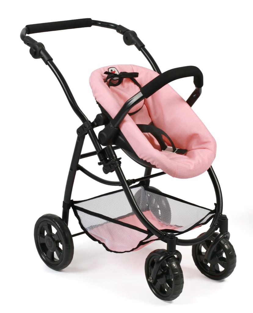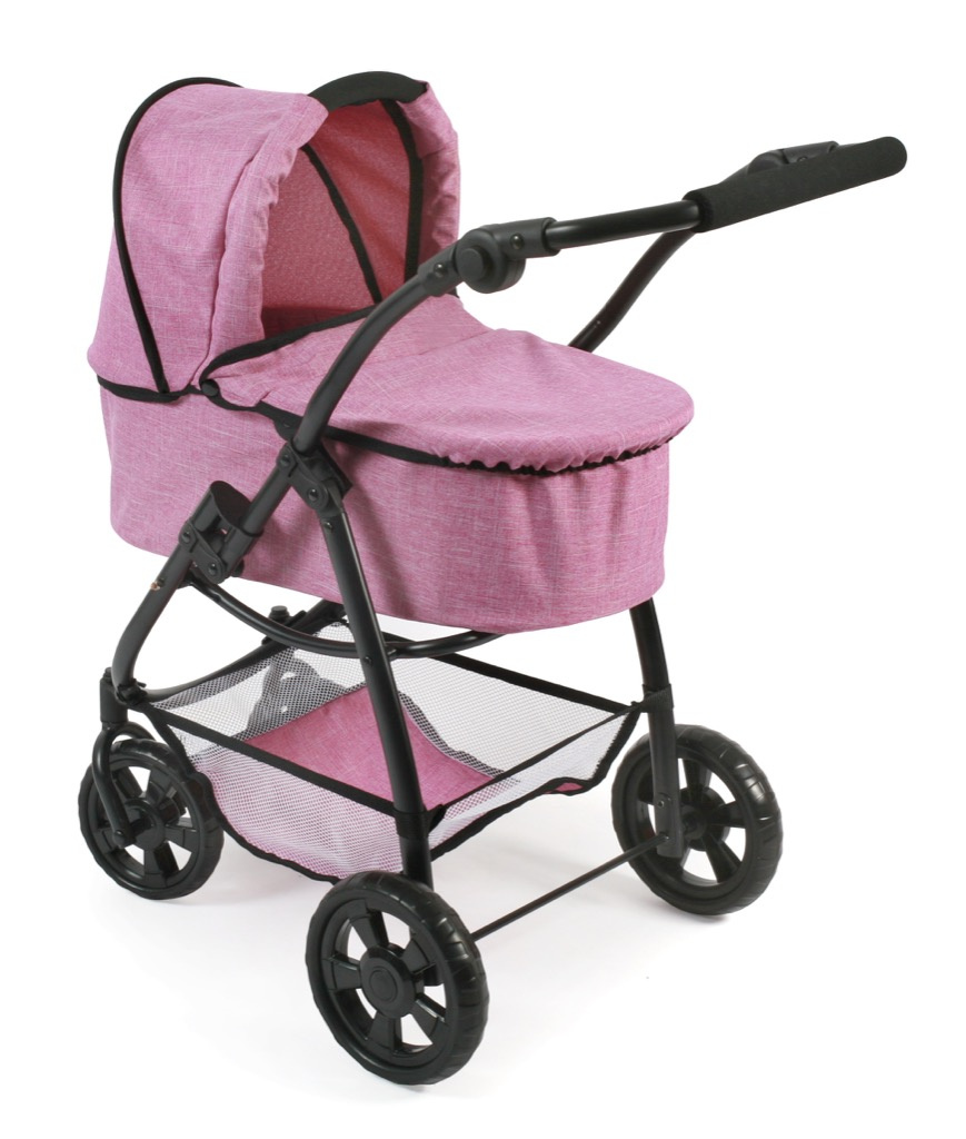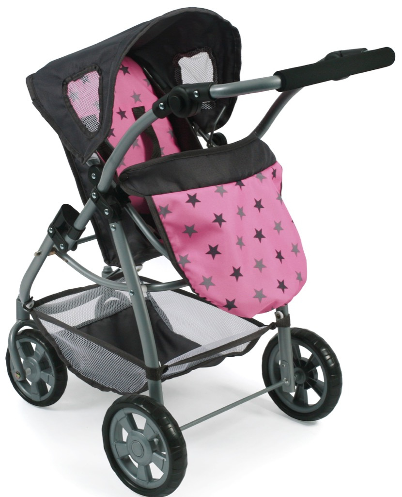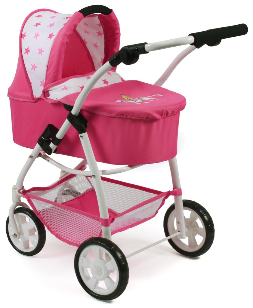 Korbičky lze složit na plocho pro transport nebo uskladnění. Sportovní korba má hrazdu a pás na upínání panenky. V hluboké korbě je slamníček. Korbička je vybavena ušima pro snadné přenášení, autosedačka je vybavena klasickým madlem, jako je to u sedaček pro dětská miminka. Přední kolečka se otáčejí kolem svislé osy. Kočárek má nastavitelnou rukojeť, samozřejmostí je síťka na drobnosti ve spodu kostry.