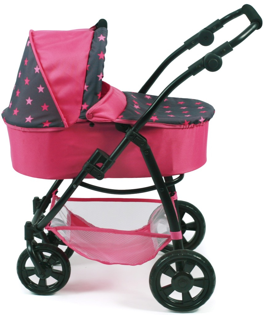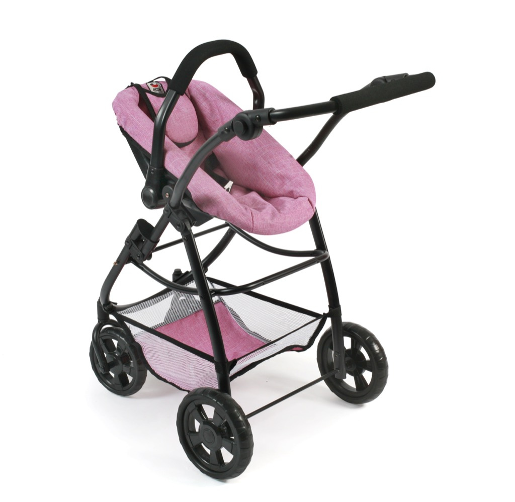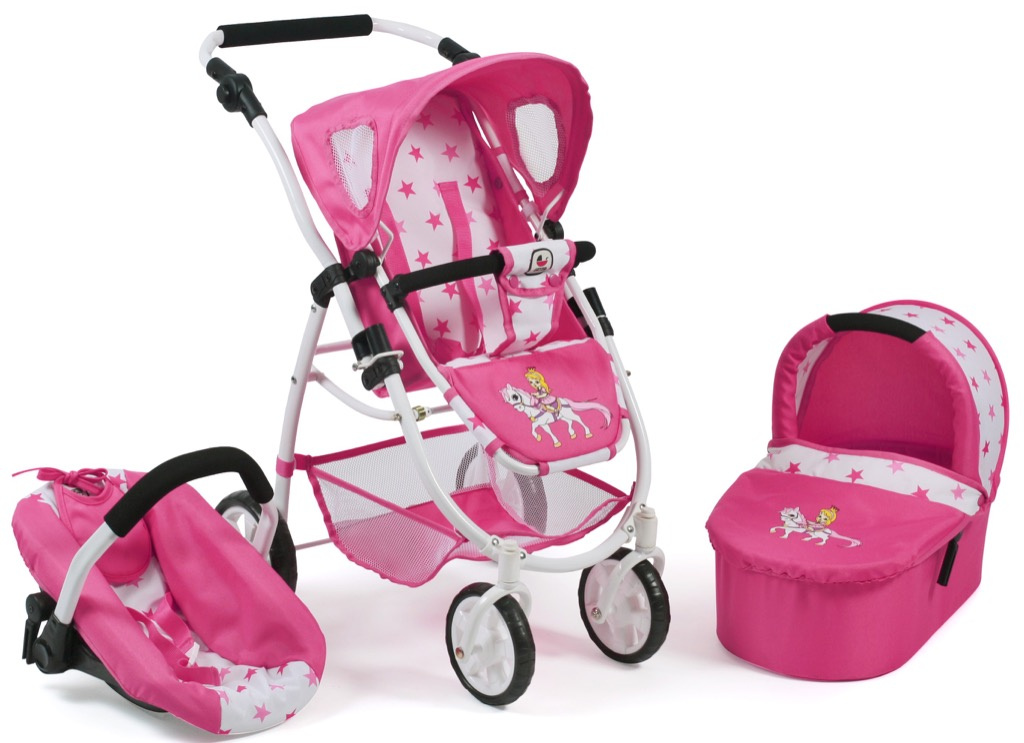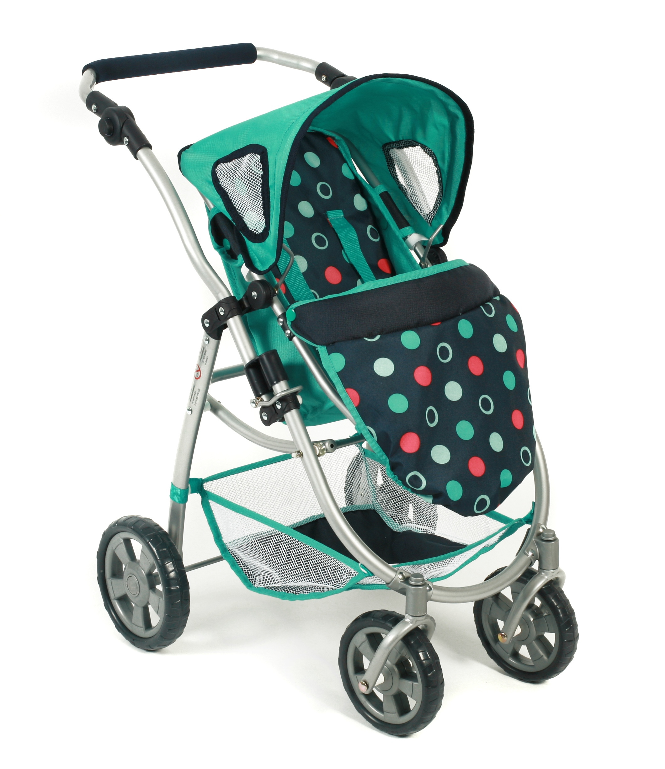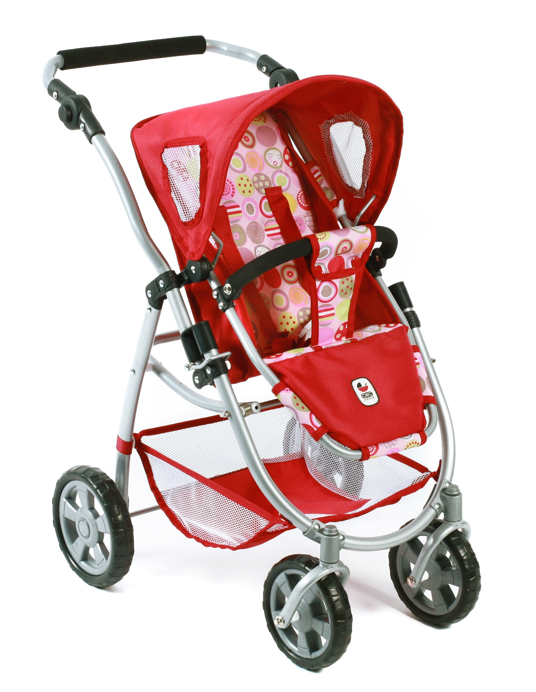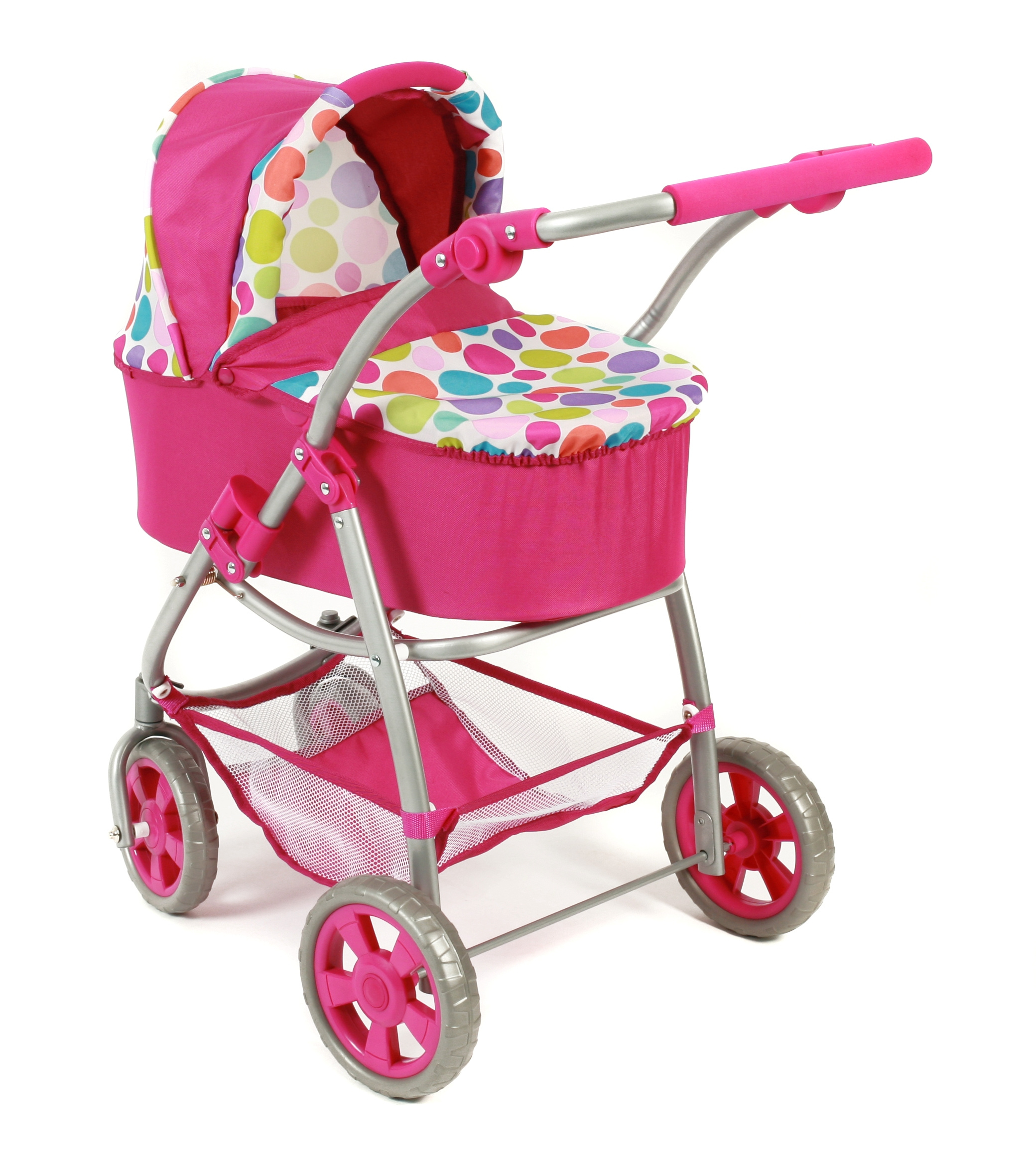 Korbičky lze složit na plocho pro transport nebo uskladnění. Sportovní korba má hrazdu a pás na upínání panenky. V hluboké korbě je slamníček. Korbička je vybavena ušima pro snadné přenášení, autosedačka je vybavena klasickým madlem, jako je to u sedaček pro dětská miminka. Přední kolečka se otáčejí kolem svislé osy. Kočárek má nastavitelnou rukojeť, samozřejmostí je síťka na drobnosti ve spodu kostry.