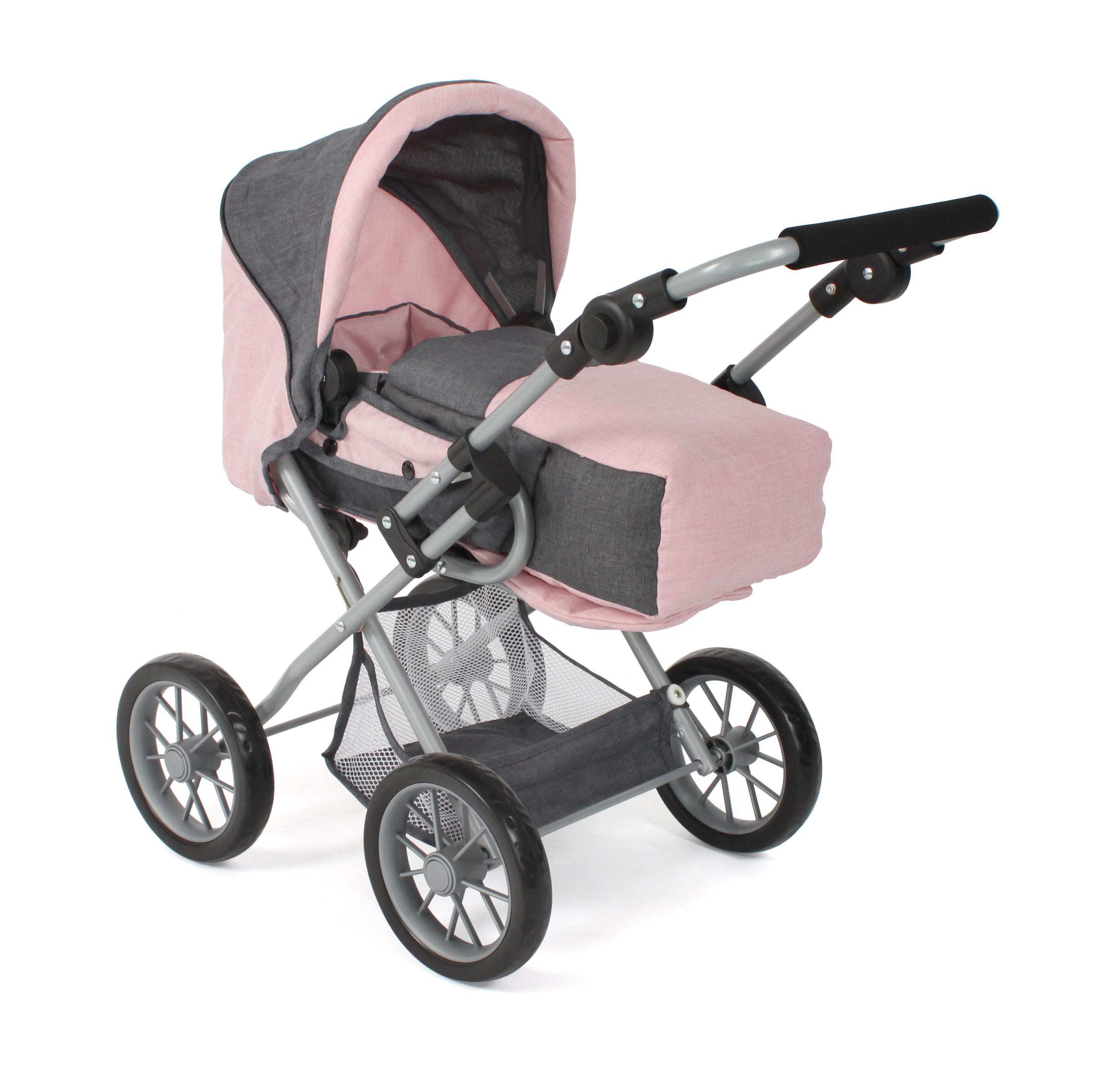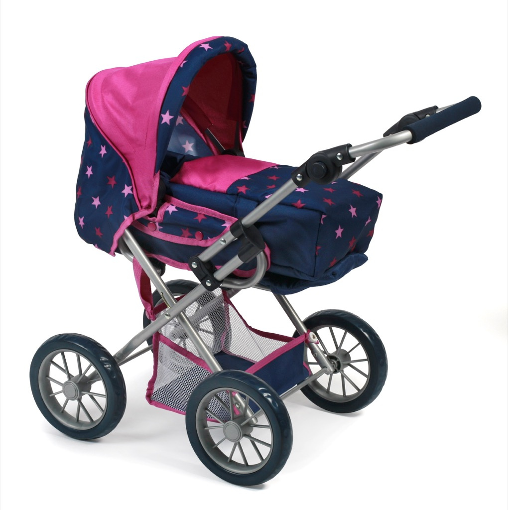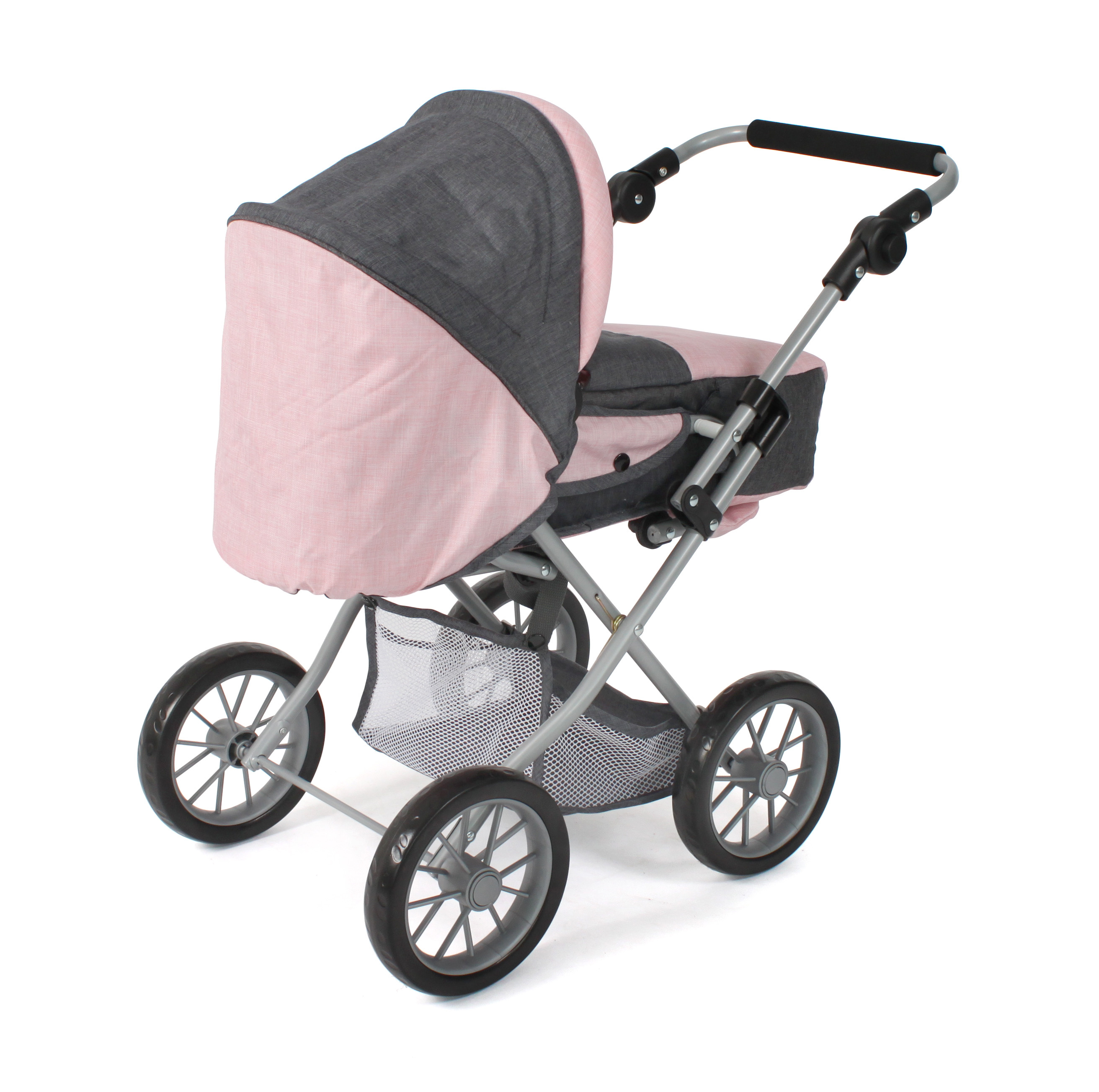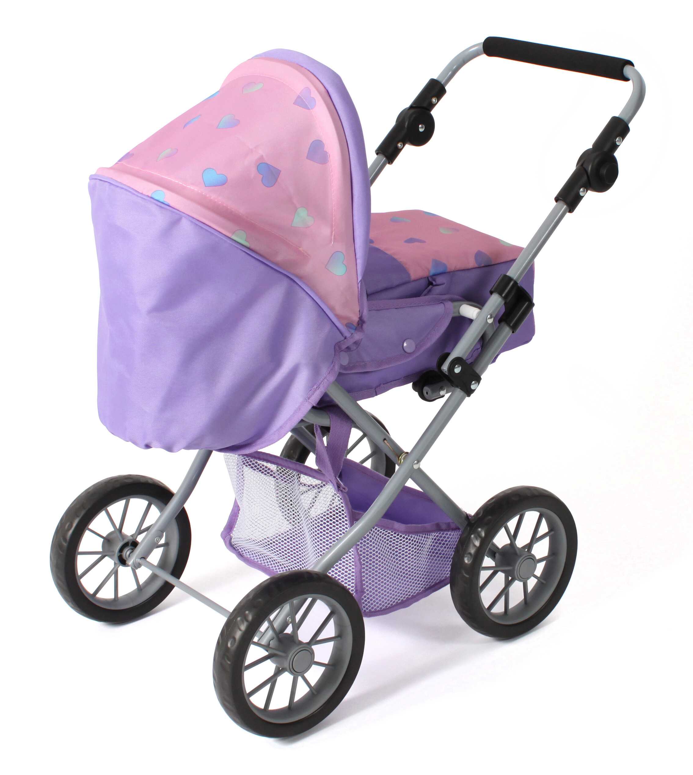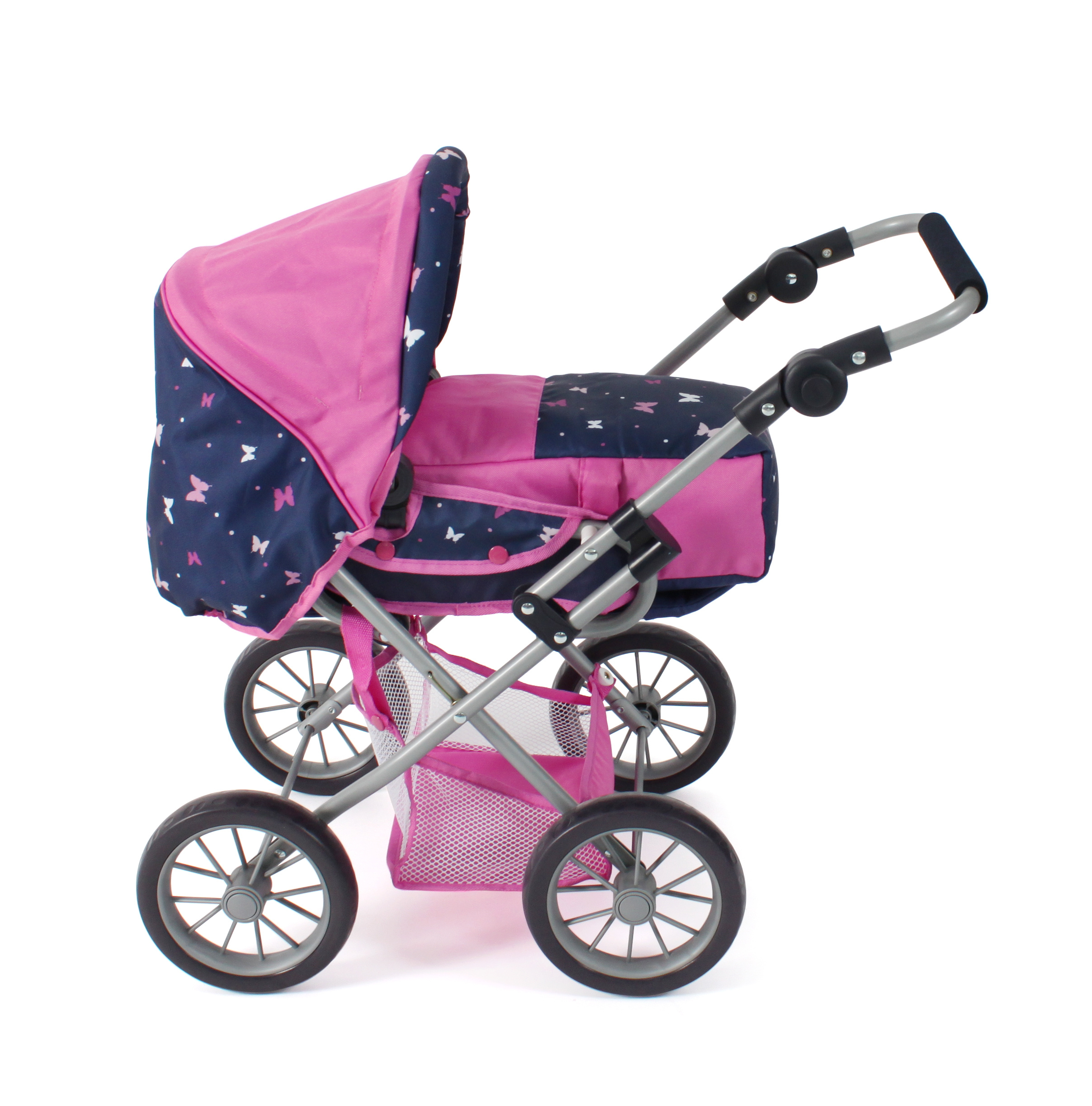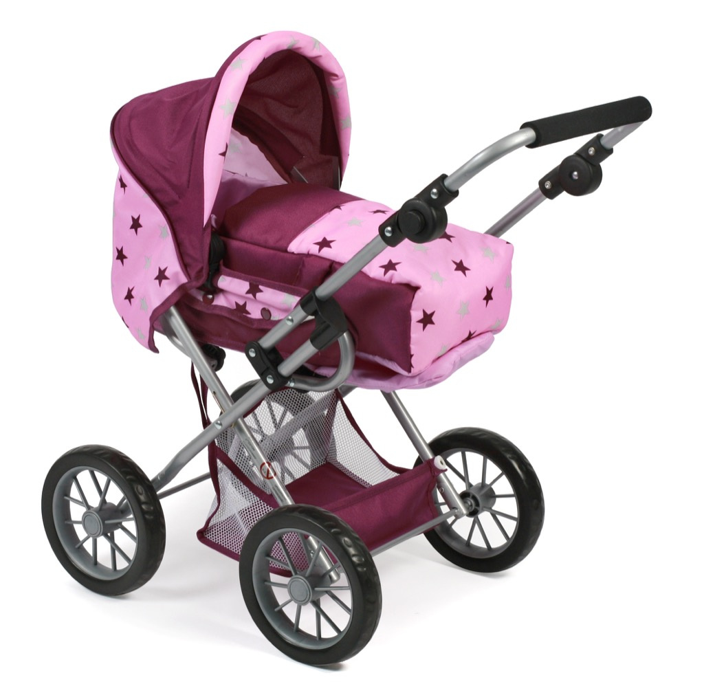 | Kombinovaný kočárek pro panenky - trojkombinace. Kočárek má nastavitelnou rukojeť. Vyjímatelnou tašku, která je součástí kočárku, je možné použít i samostatně jako tašku na panenku. Boudička je sklápěcí, a taktéž opěradlo kočárku. Kočárek má vespod konstrukce košík pro uložení drobností. Ke kočárku se dá koupit přebalovací taška na rukojeť ve stejné barvě. Vyrobeno německou firmou BAYER CHIC. výška 68cm šířka 37cm délka 64cm |