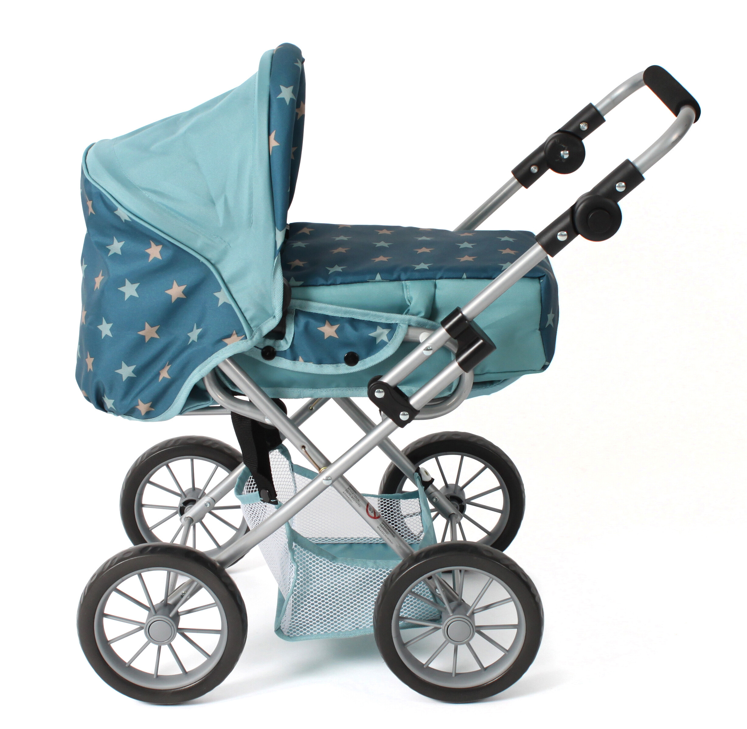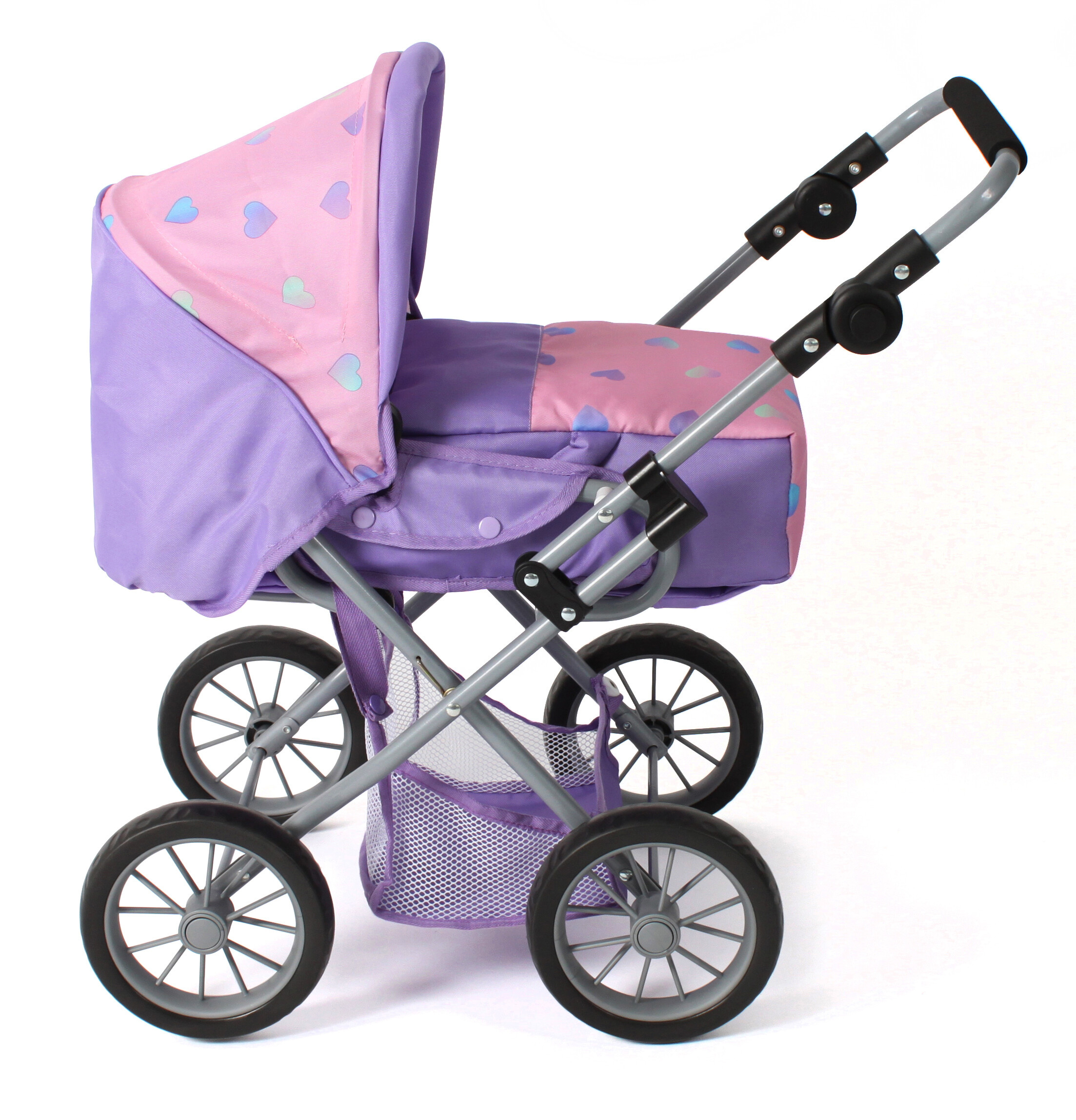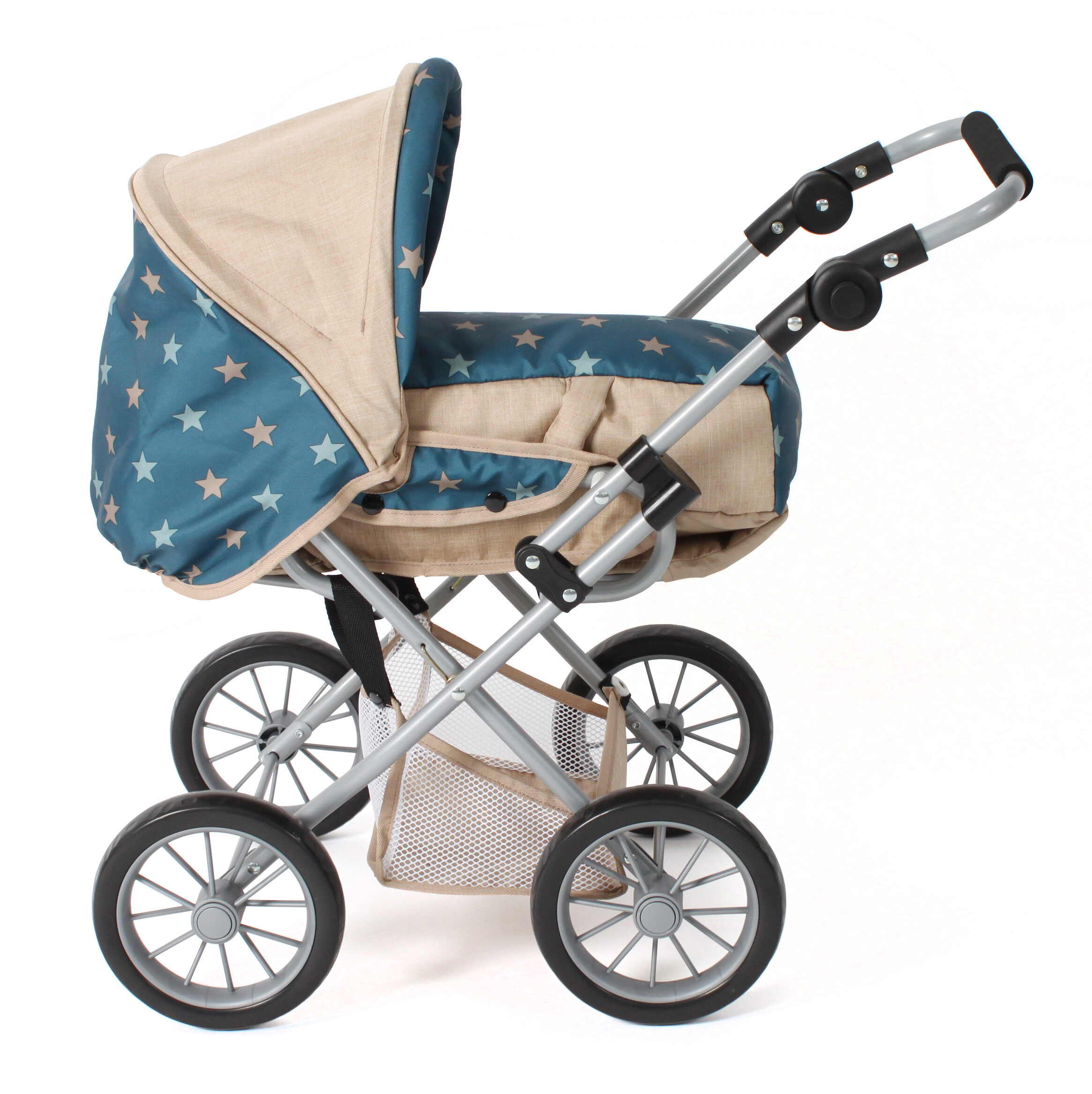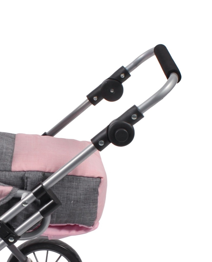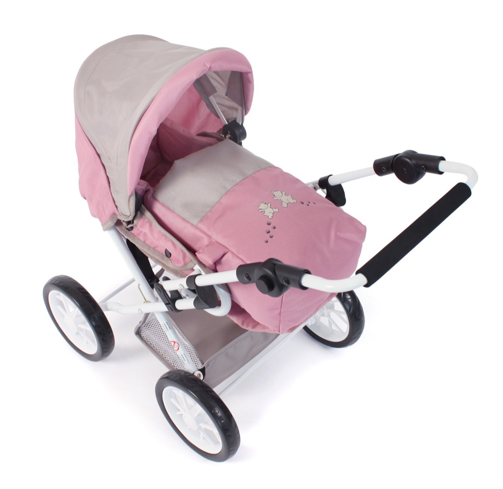 | Kombinovaný kočárek pro panenky - trojkombinace. Kočárek má nastavitelnou rukojeť. Vyjímatelnou tašku, která je součástí kočárku, je možné použít i samostatně jako tašku na panenku. Boudička je sklápěcí, a taktéž opěradlo kočárku. Kočárek má vespod konstrukce košík pro uložení drobností. Ke kočárku se dá koupit přebalovací taška na rukojeť ve stejné barvě. Vyrobeno německou firmou BAYER CHIC. výška 68cm šířka 37cm délka 64cm |