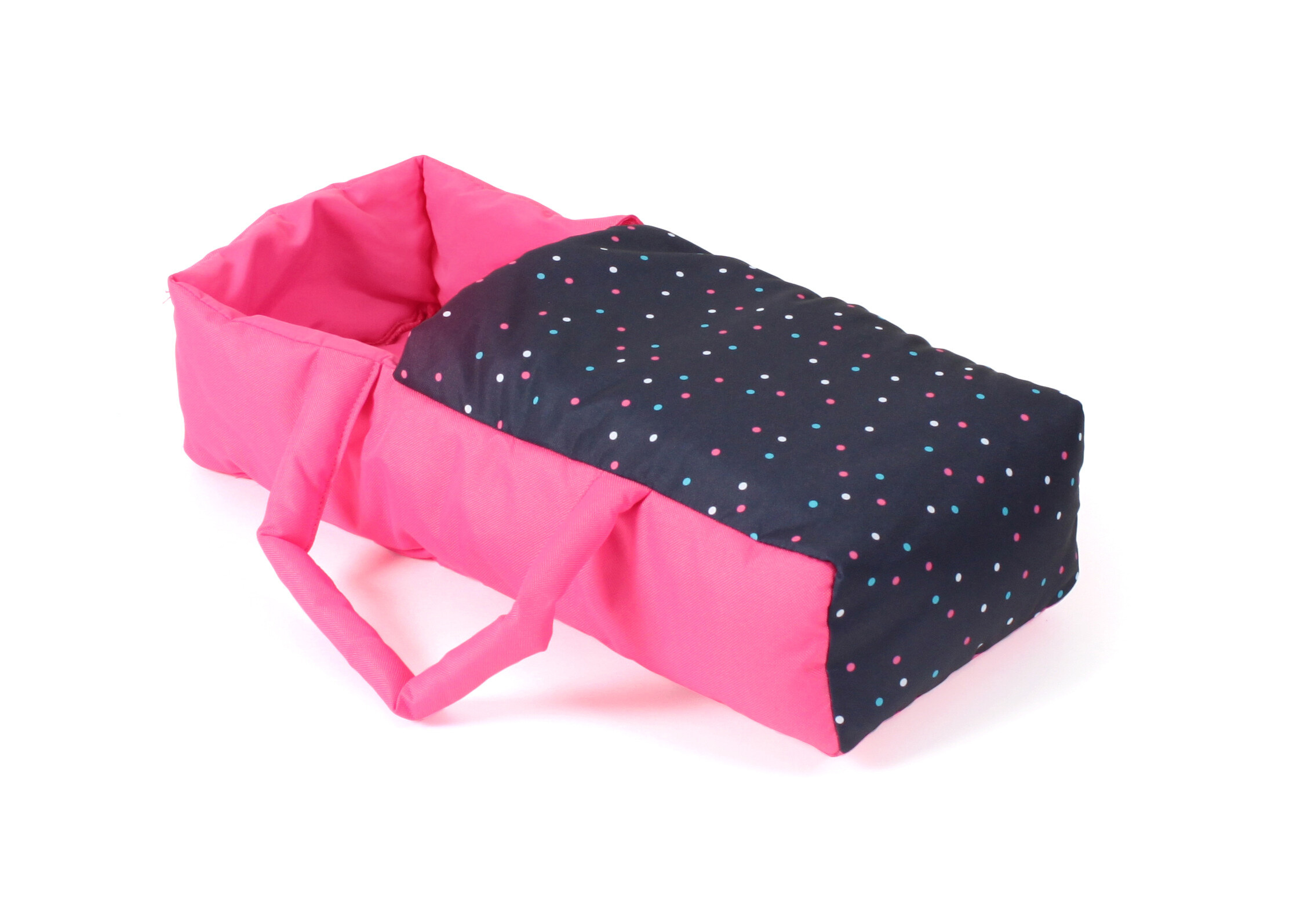 Postýlka pro panenky. Postýlku lze lehce složit a rozložit do malého balíčku. Výrobek obsahuje tašku pro uložení a transport, pro panenku 48 cm. Rozměry : š 31 x v 32 x d 54 cm.