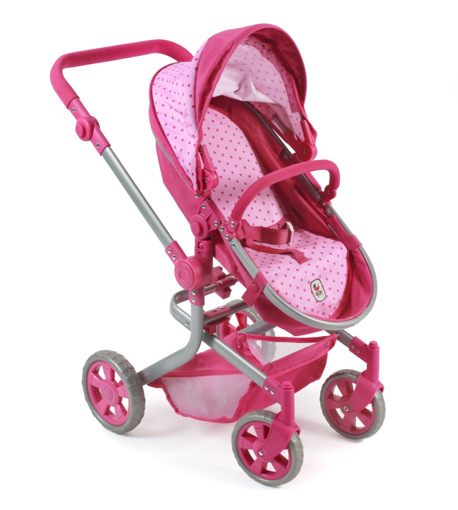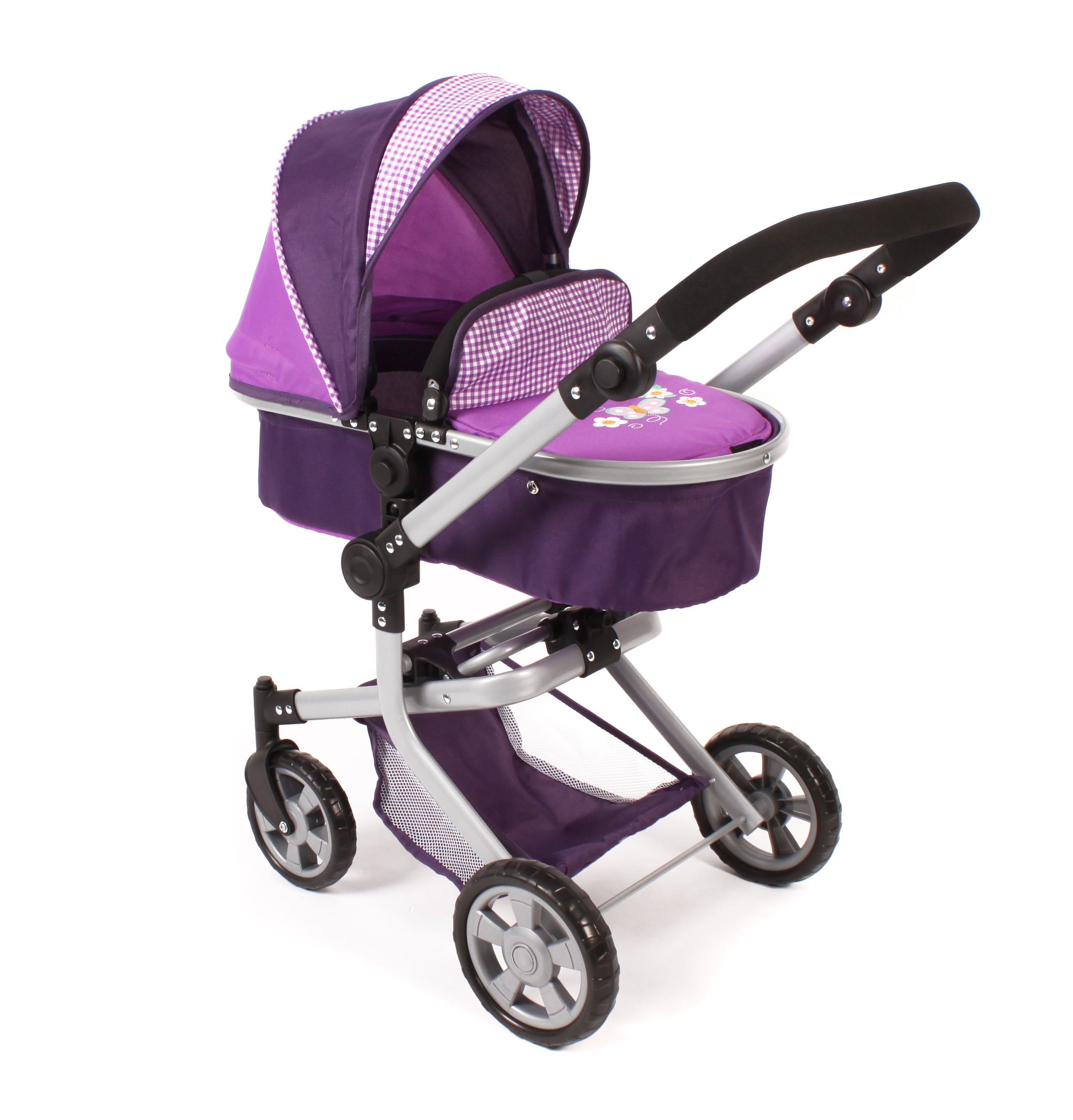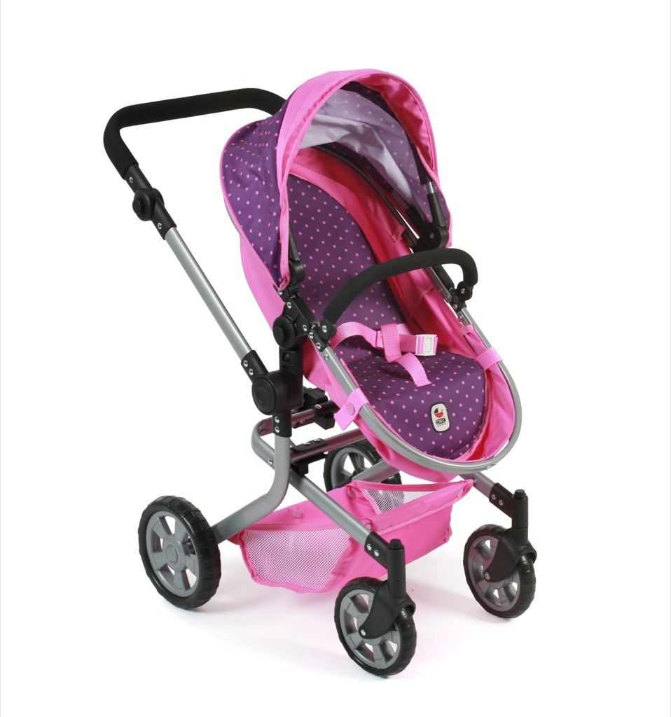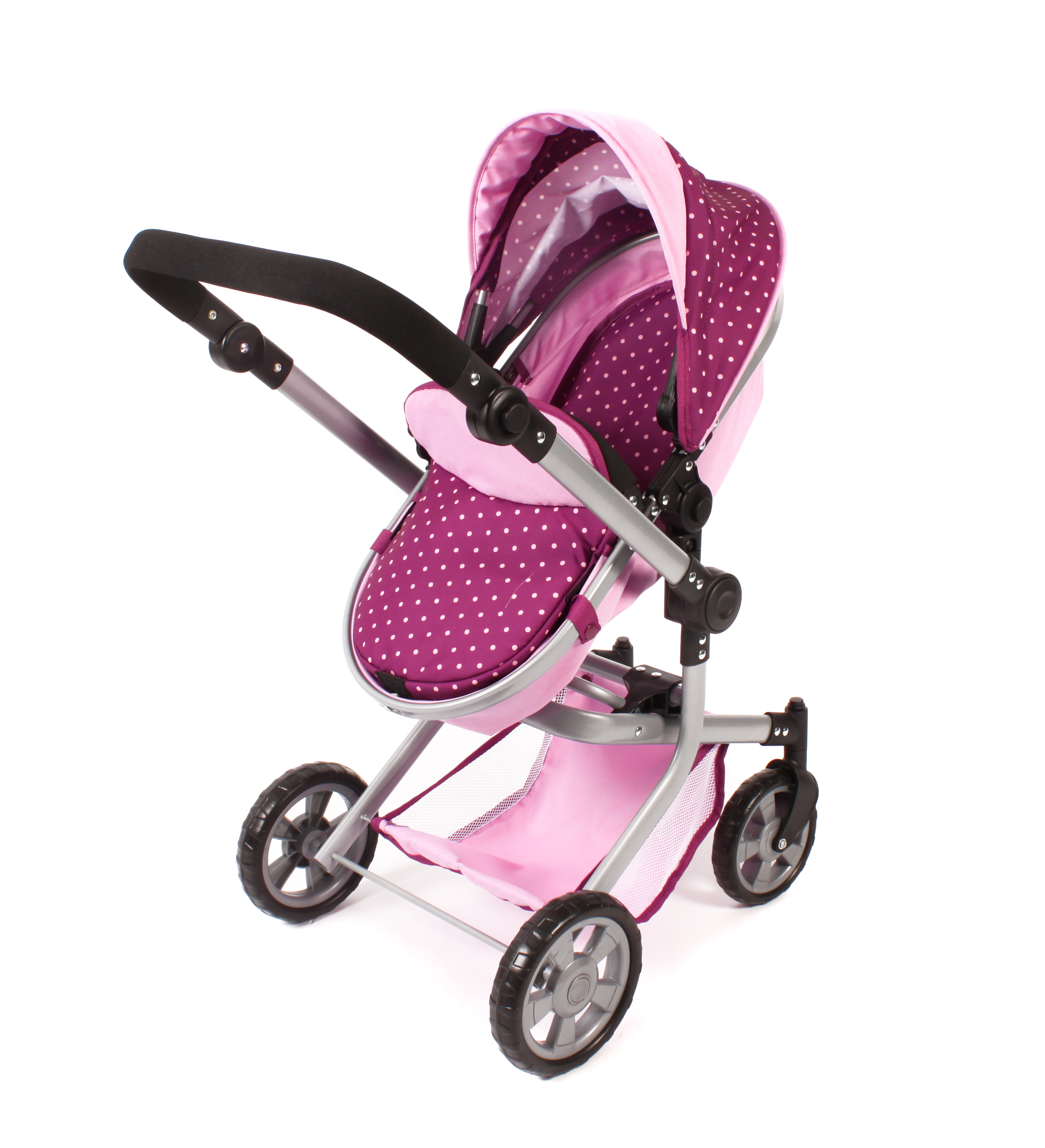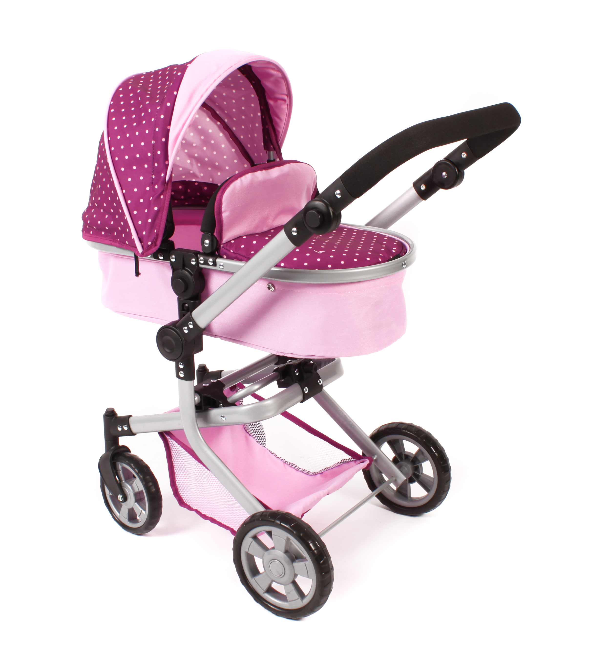 Kočárek je vhodný pro holčičku od 3 do 8 let, prakticky s holčičkou díky nastavitelnému madlu roste.