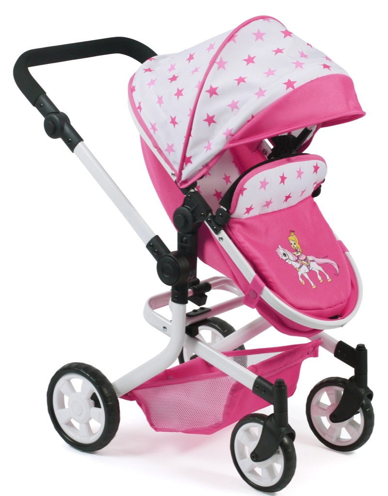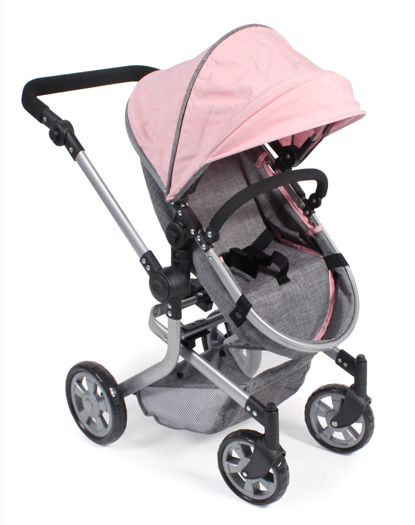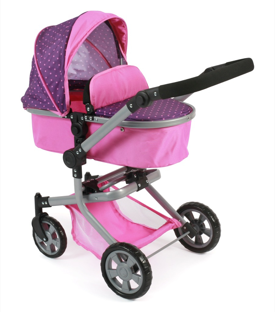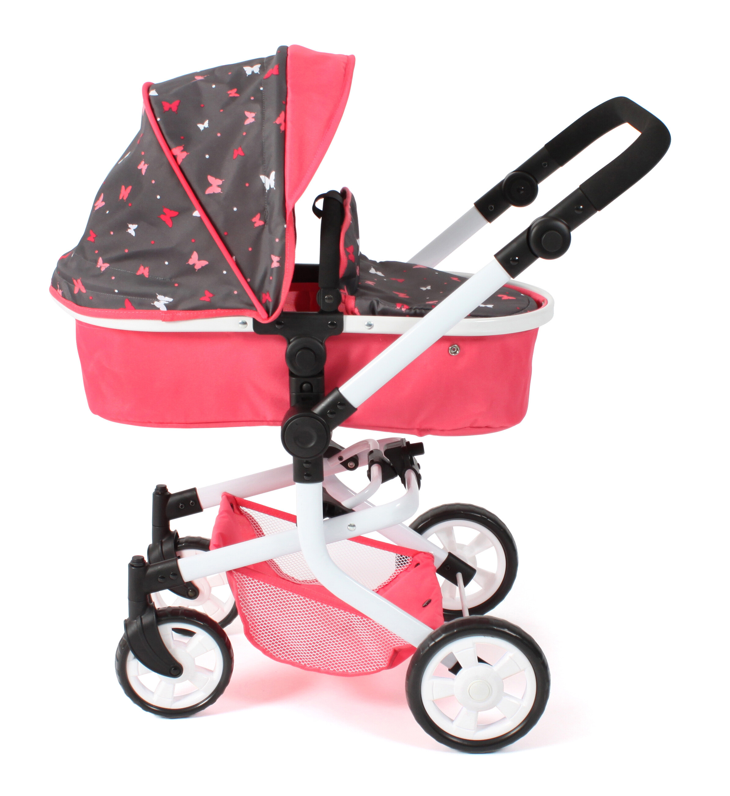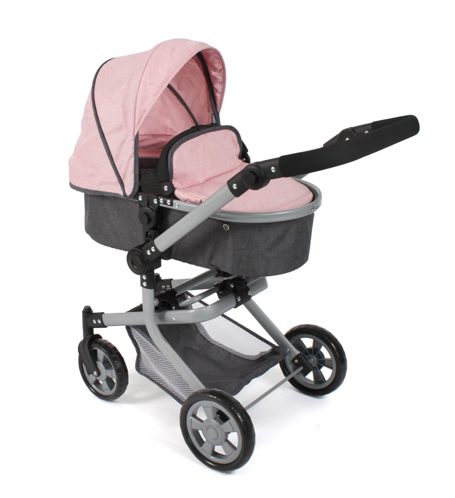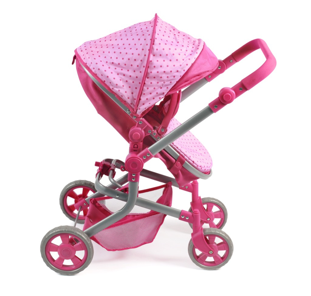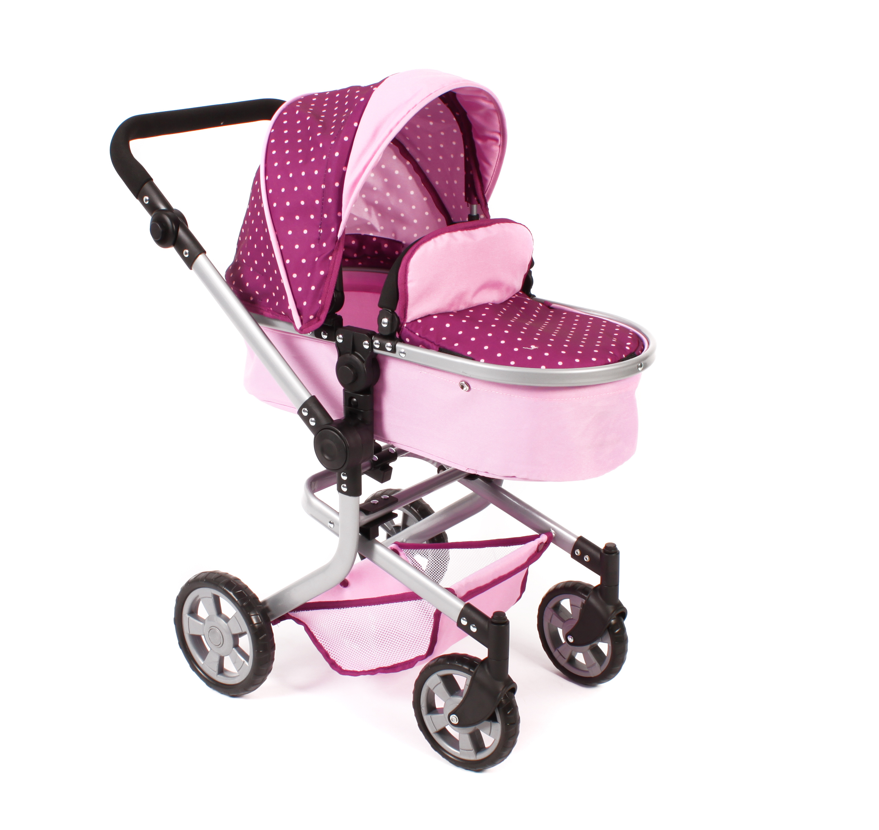 Kočárek je vhodný pro holčičku od 3 do 8 let, prakticky s holčičkou díky nastavitelnému madlu roste.