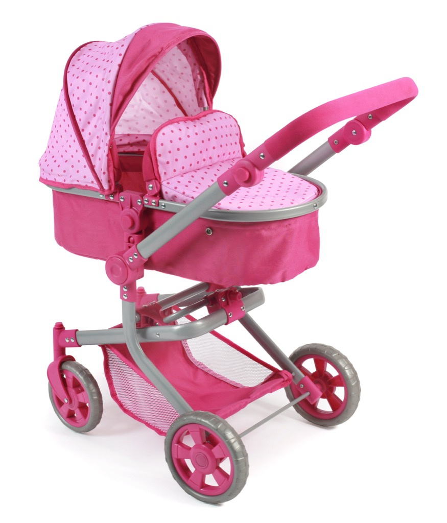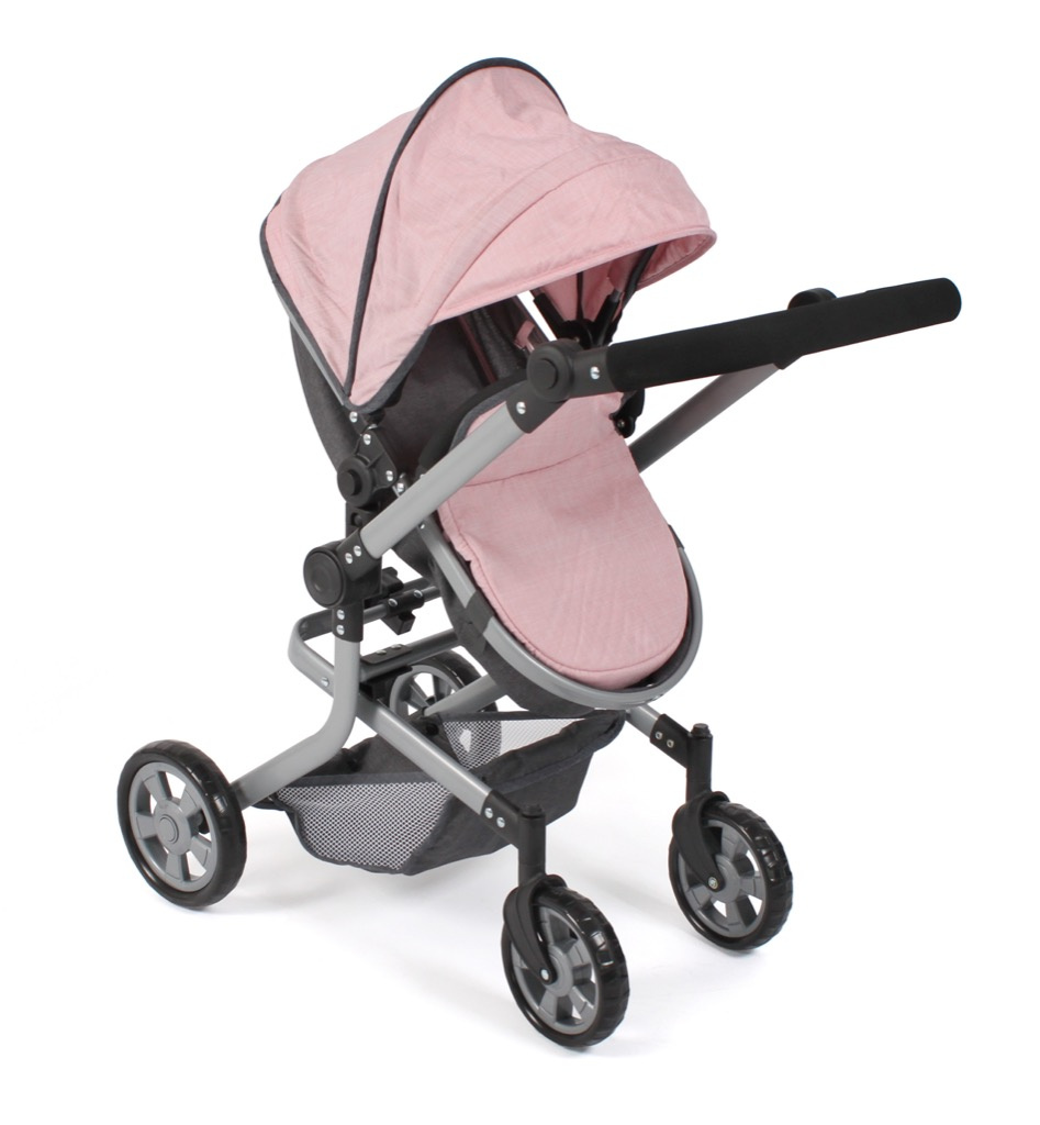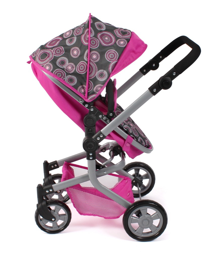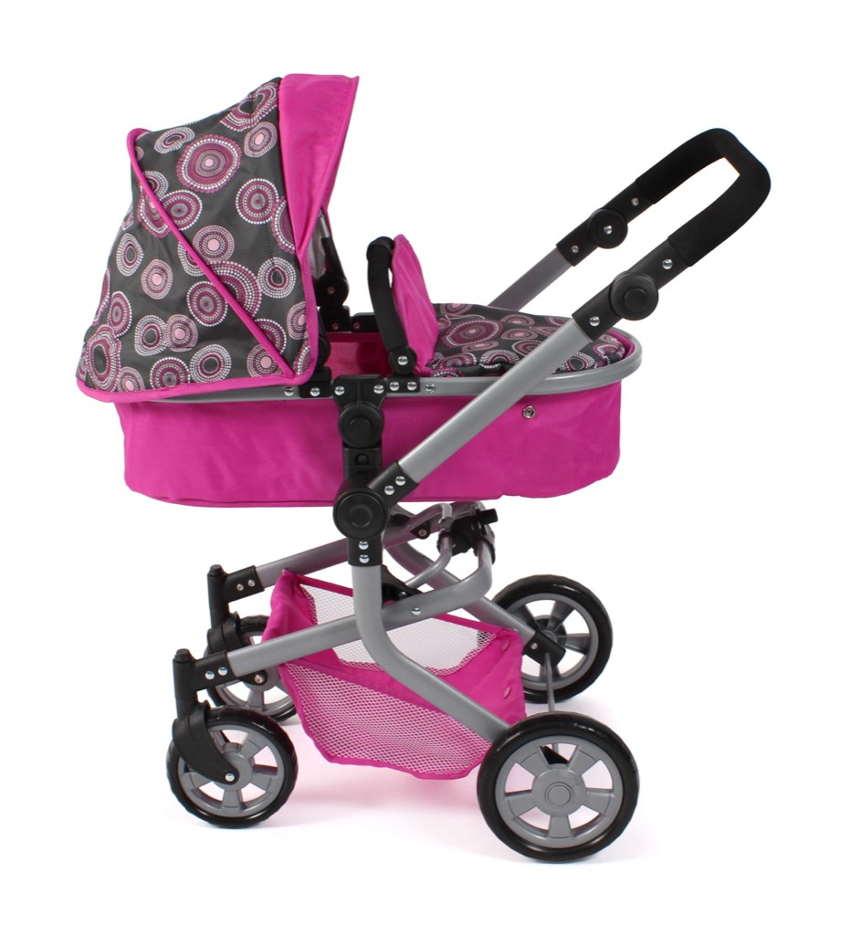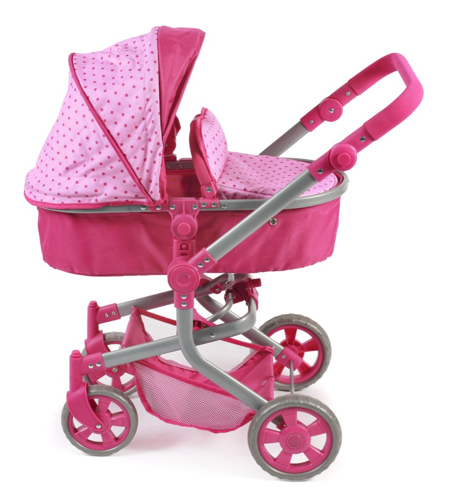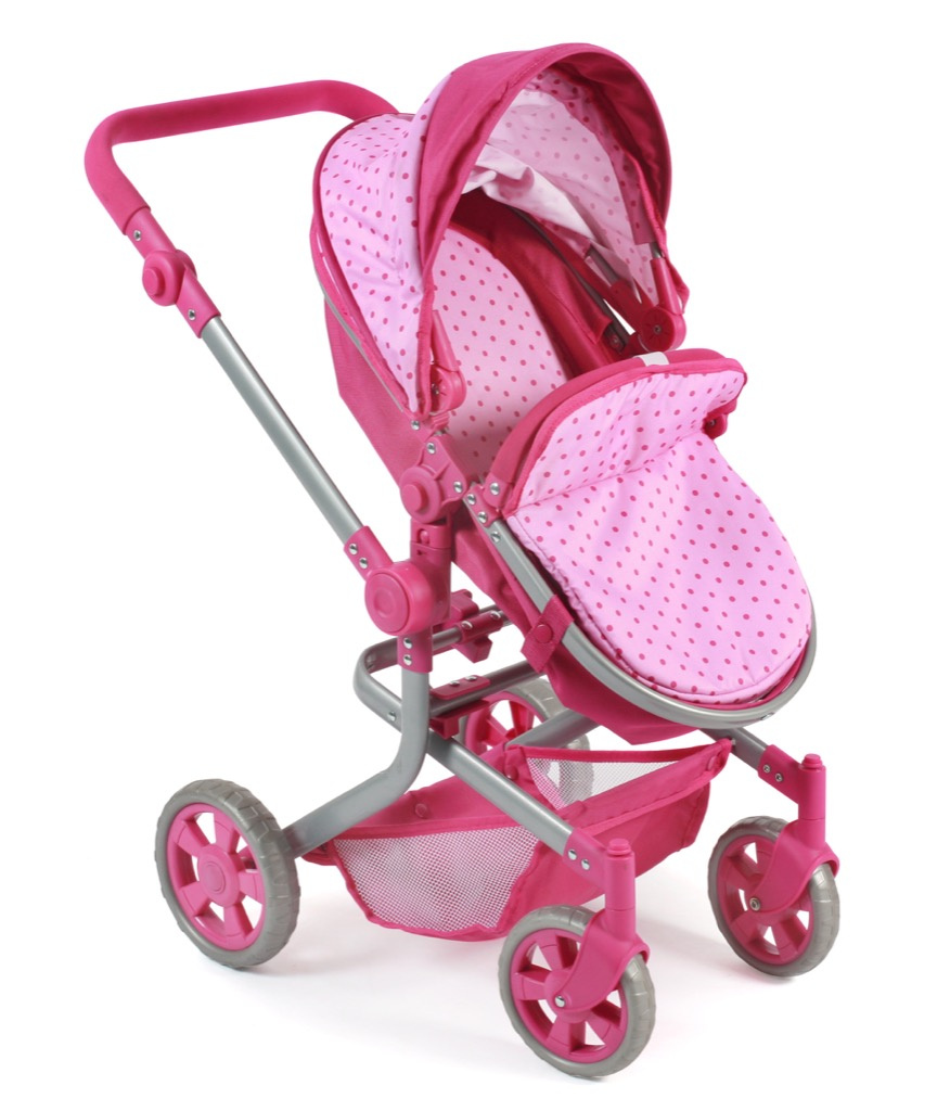 Kočárek je vhodný pro holčičku od 3 do 8 let, prakticky s holčičkou díky nastavitelnému madlu roste.