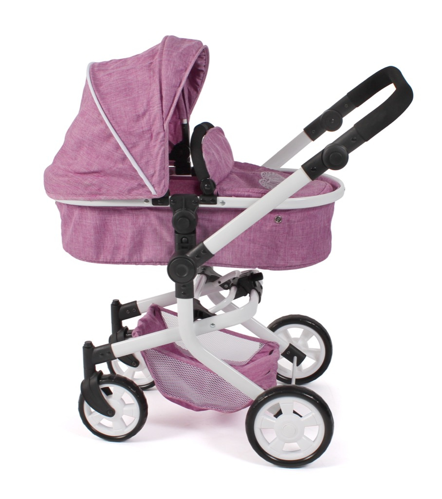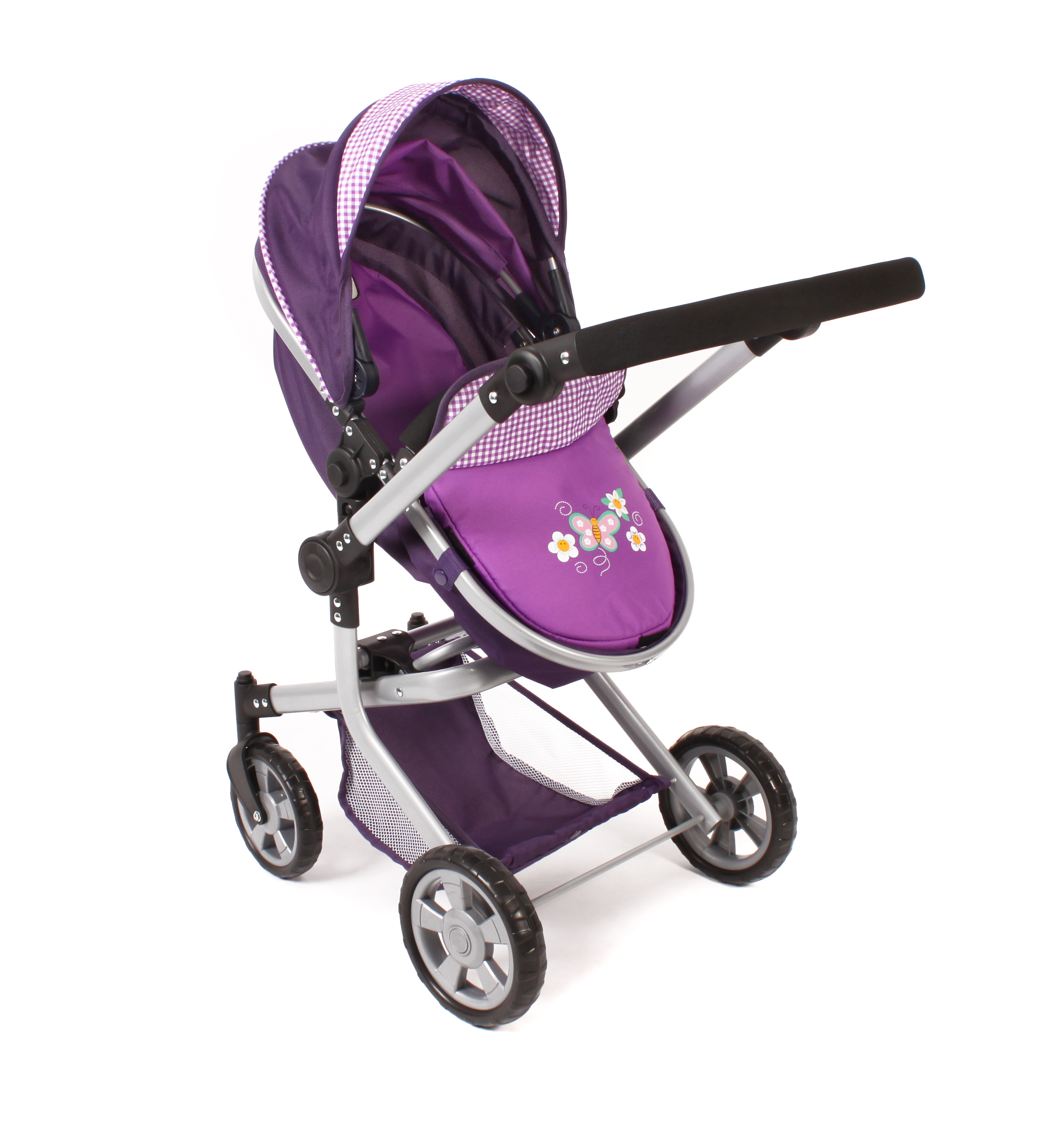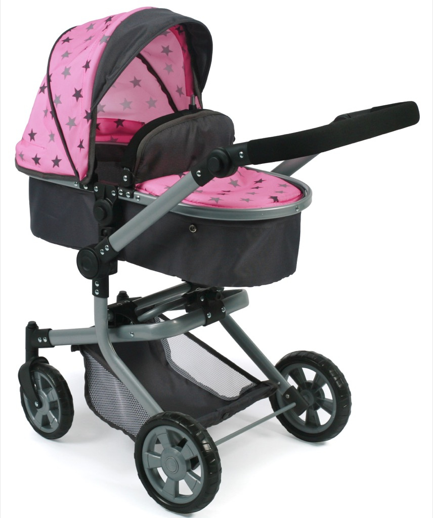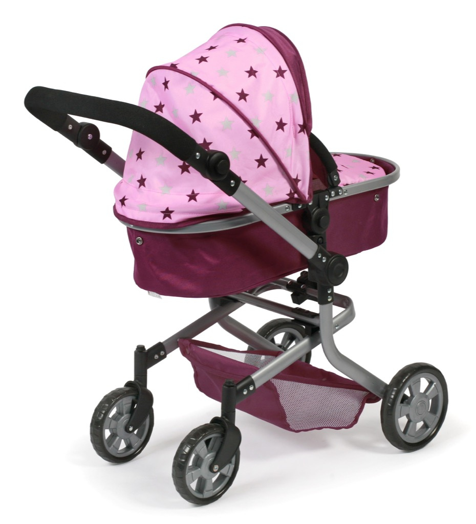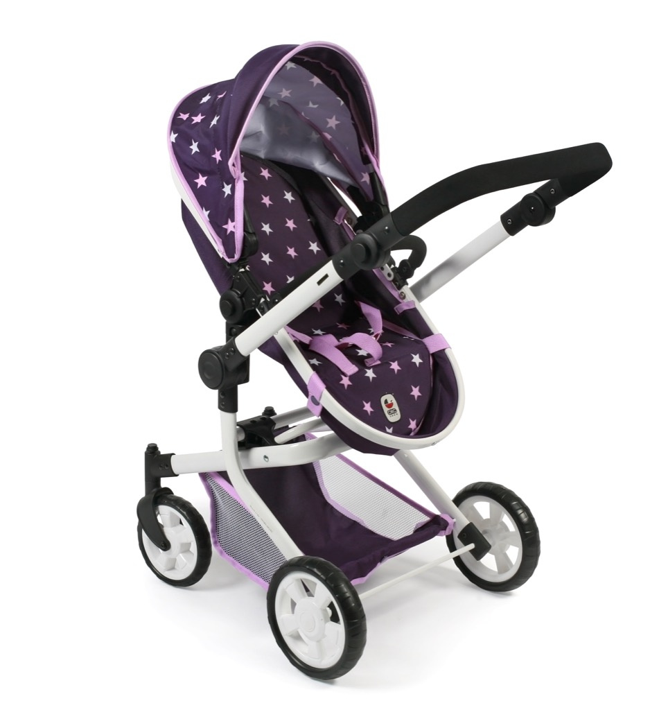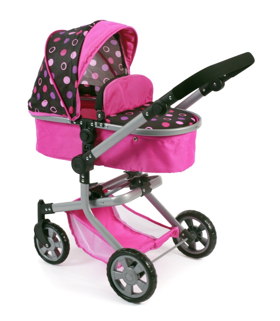 Kočárek je vhodný pro holčičku od 3 do 8 let, prakticky s holčičkou díky nastavitelnému madlu roste.