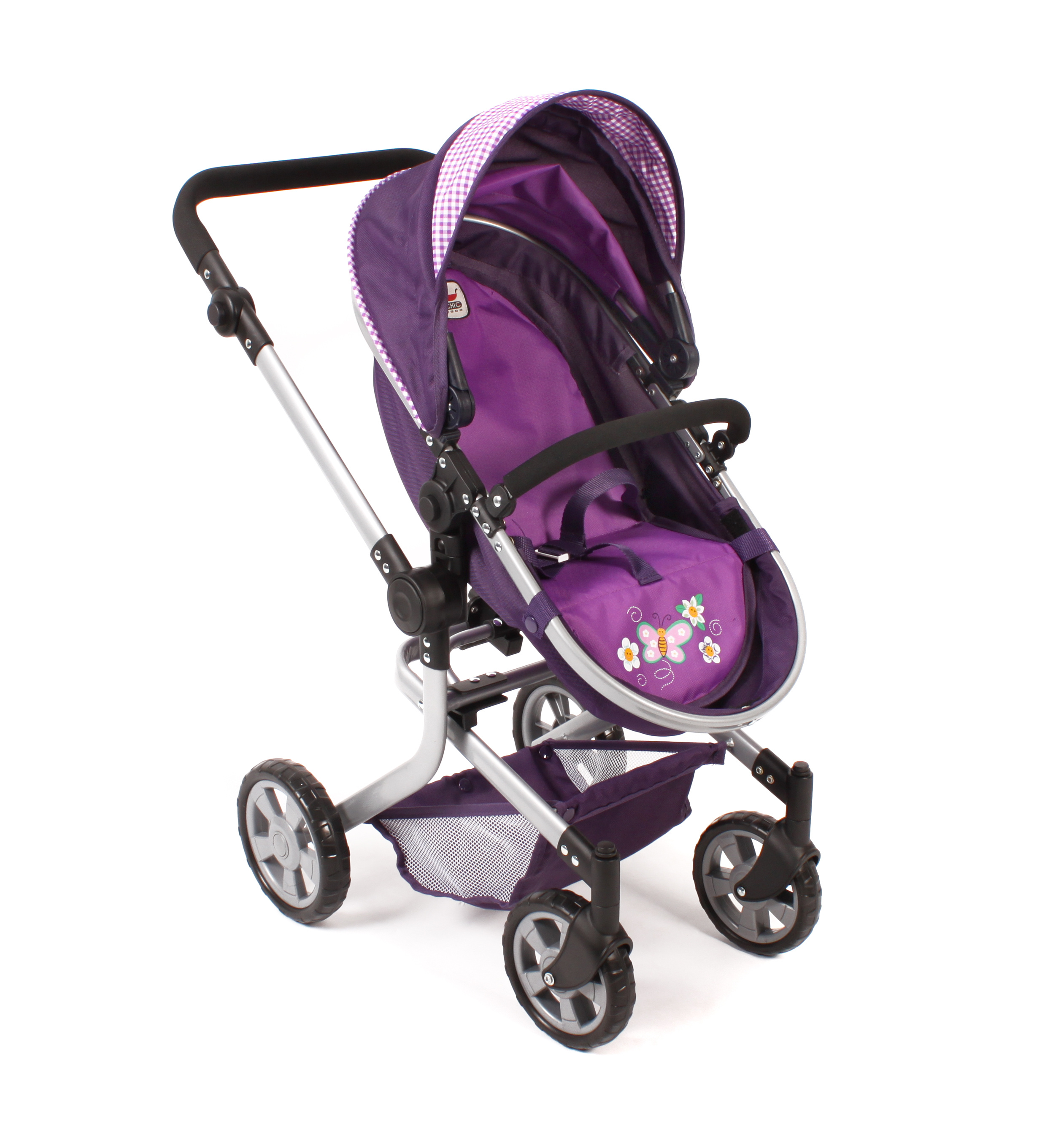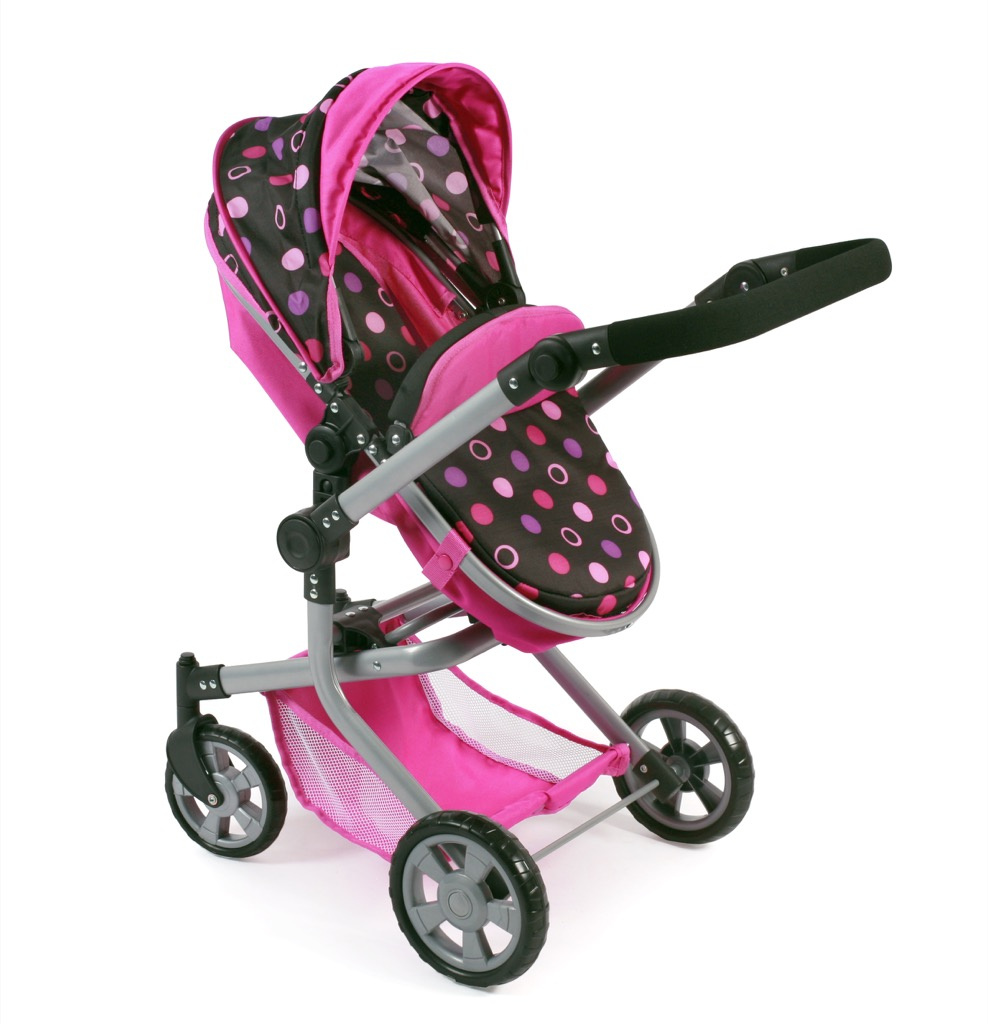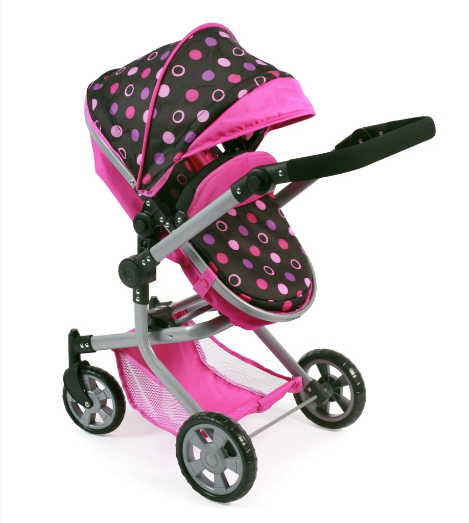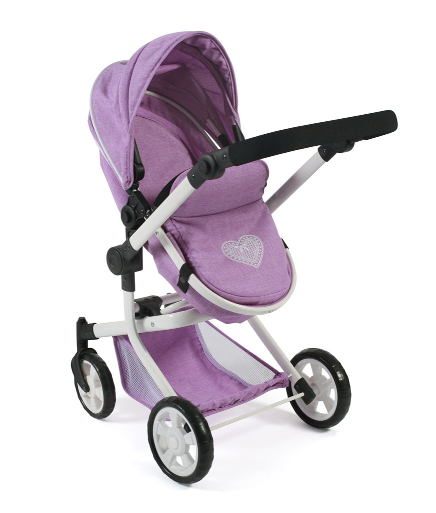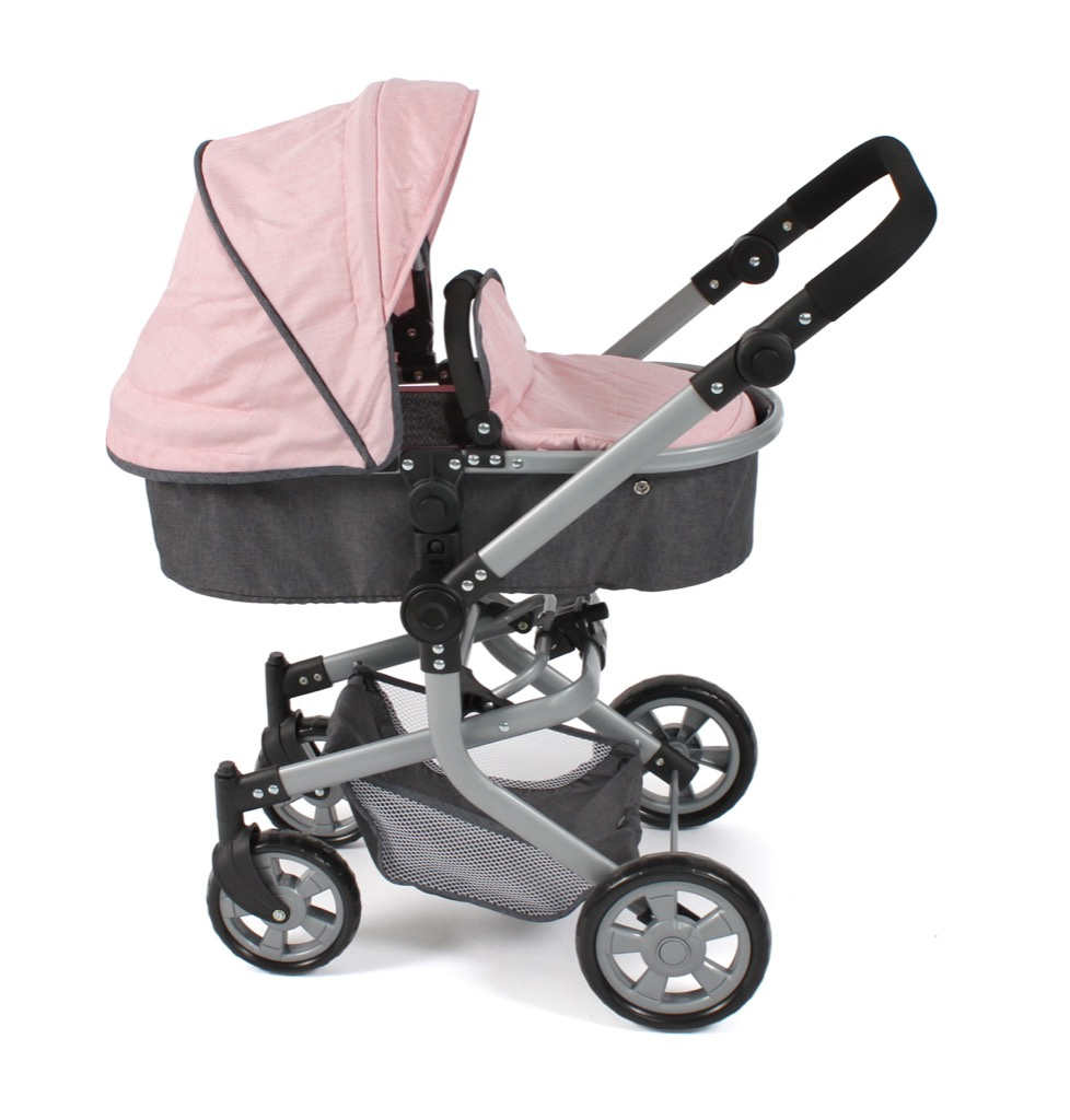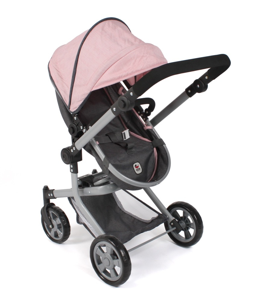 Kočárek je vhodný pro holčičku od 3 do 8 let, prakticky s holčičkou díky nastavitelnému madlu roste.