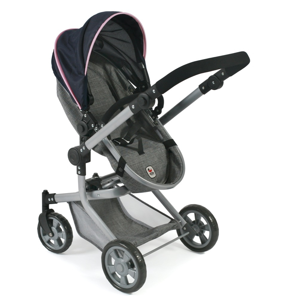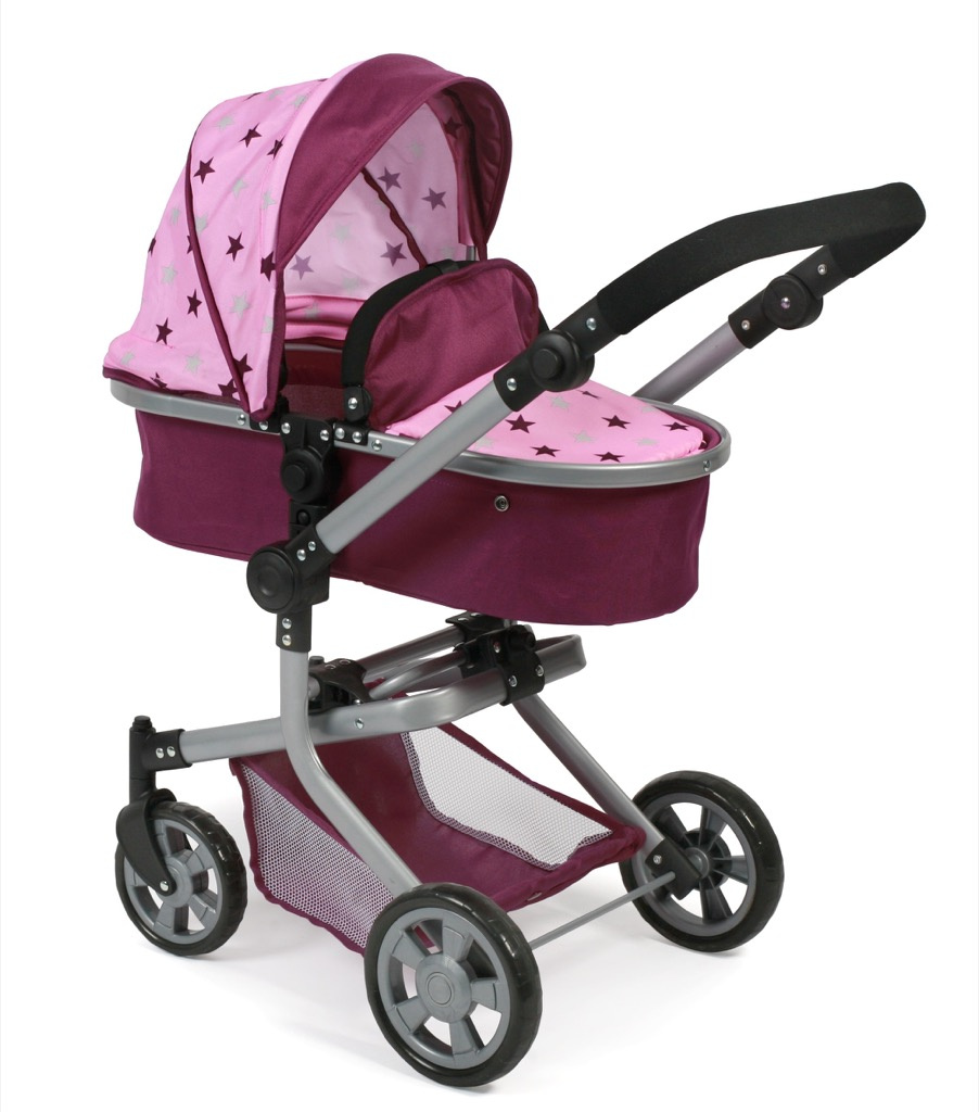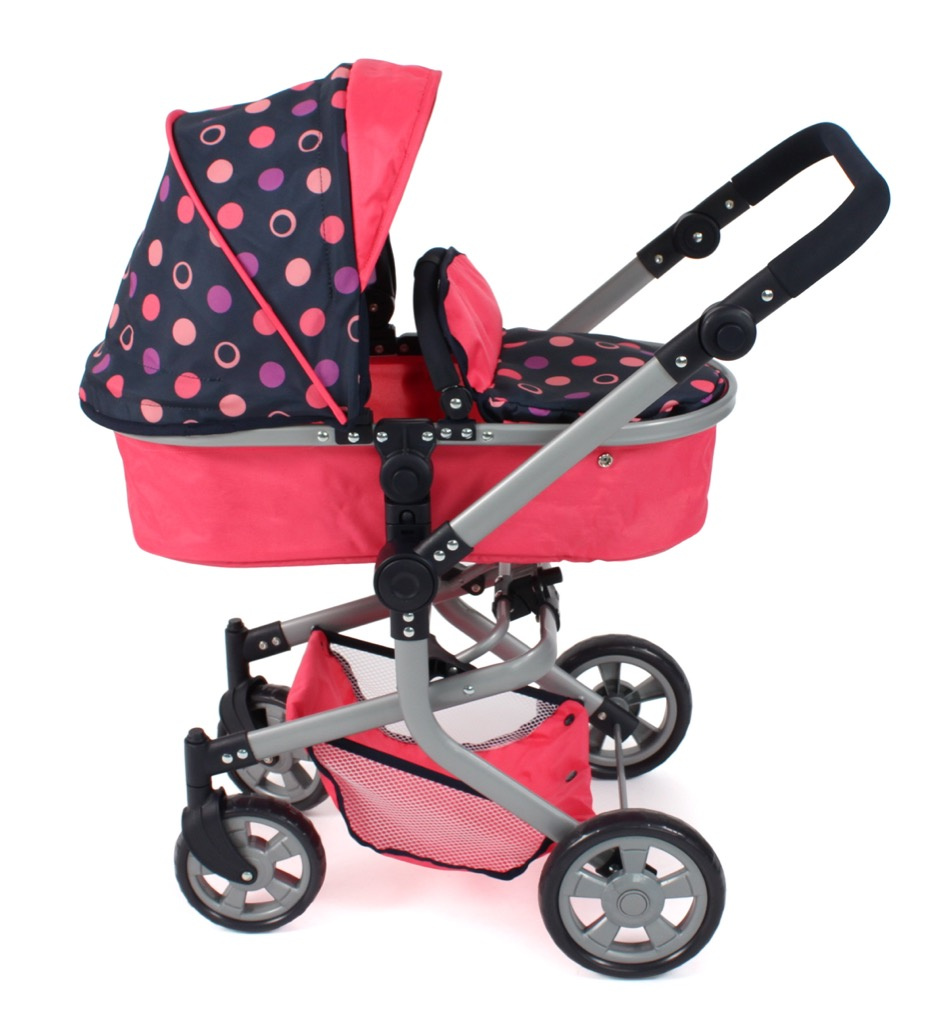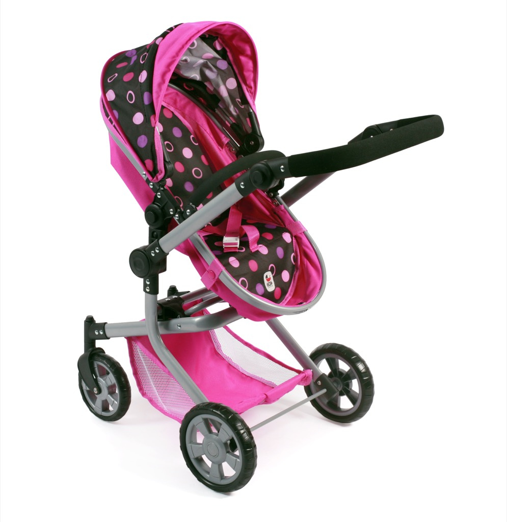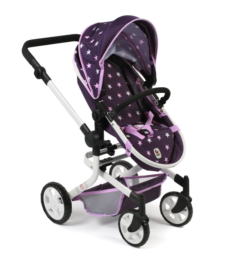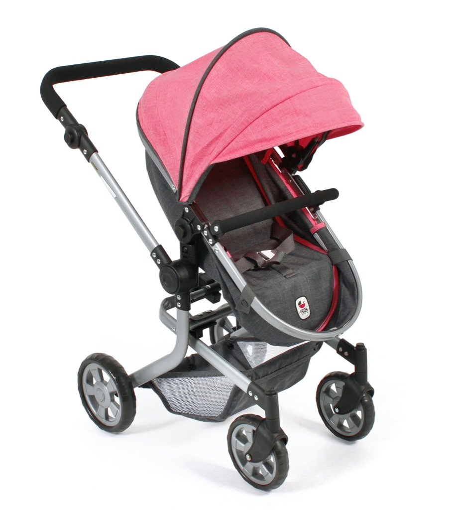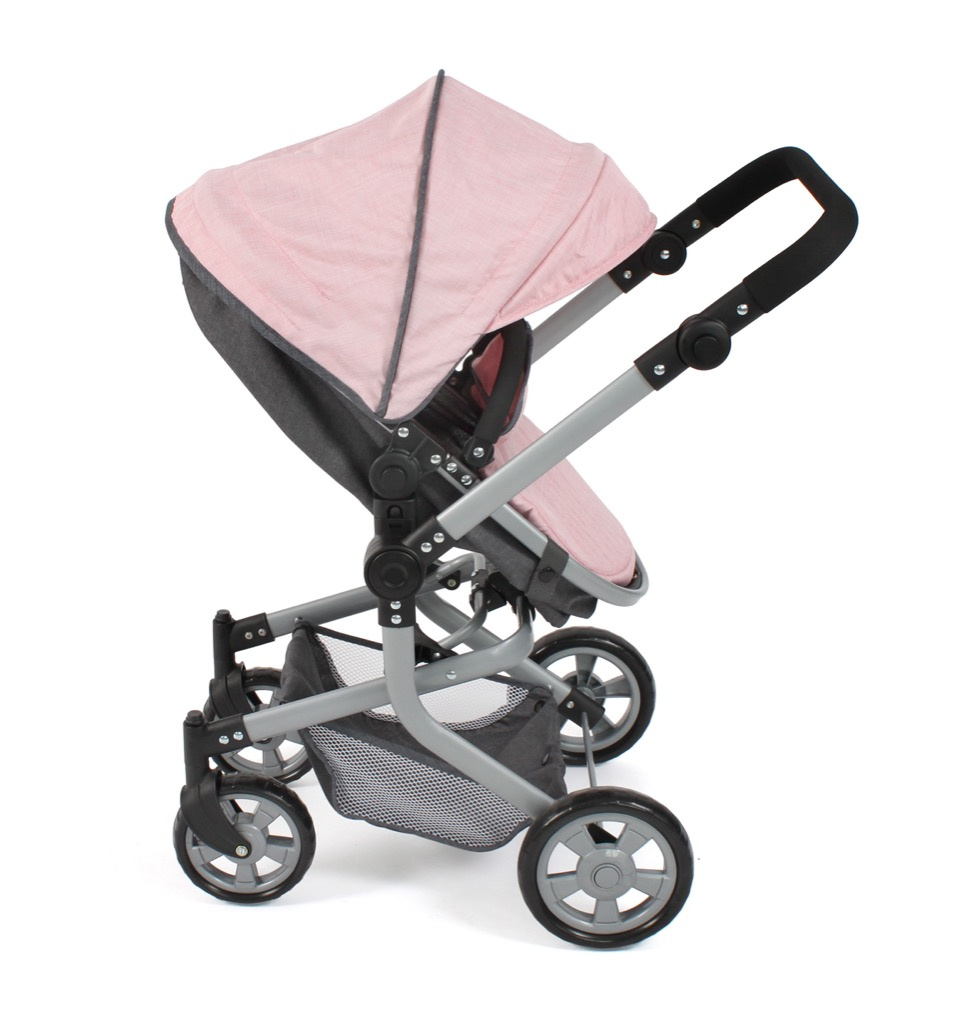 Kočárek je vhodný pro holčičku od 3 do 8 let, prakticky s holčičkou díky nastavitelnému madlu roste.