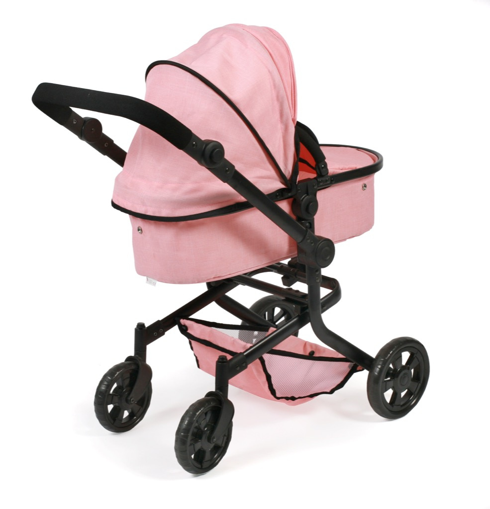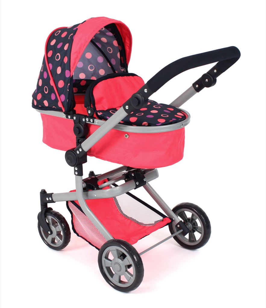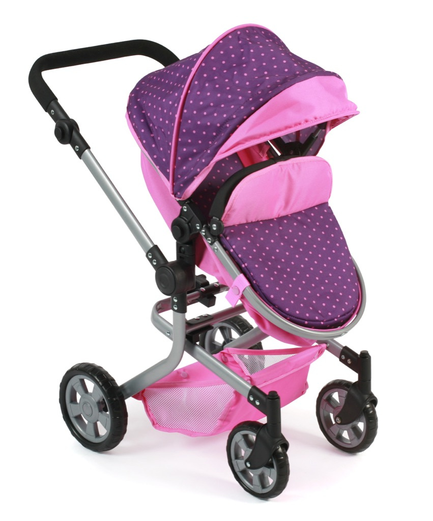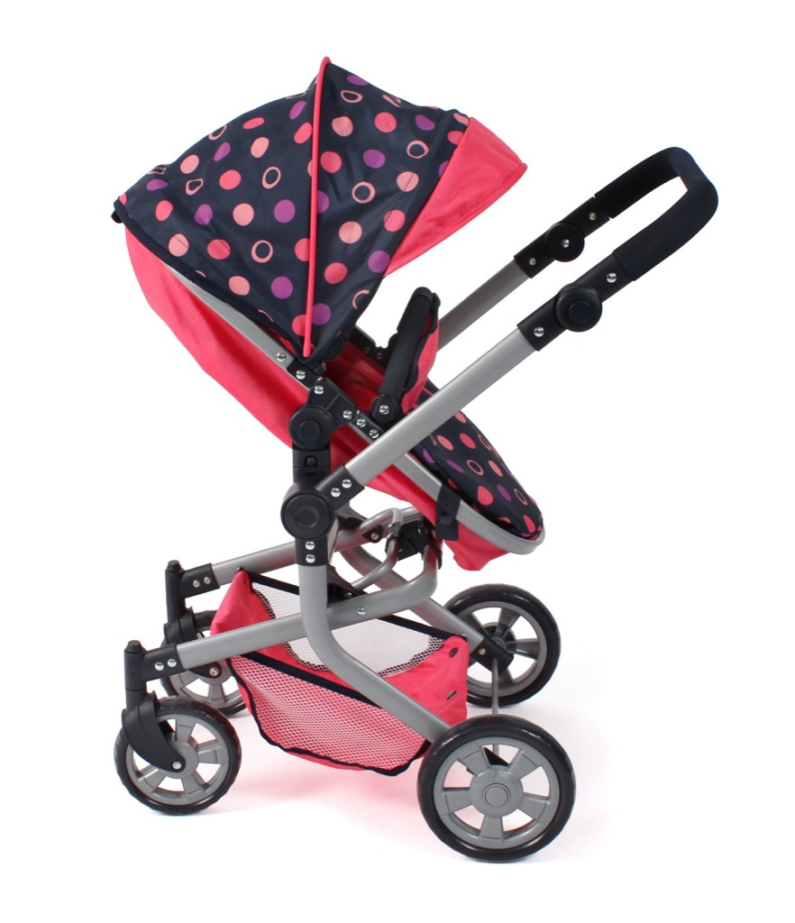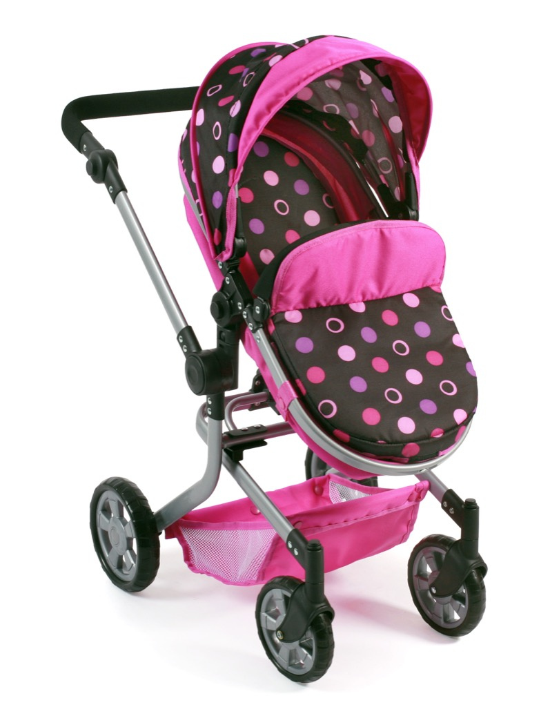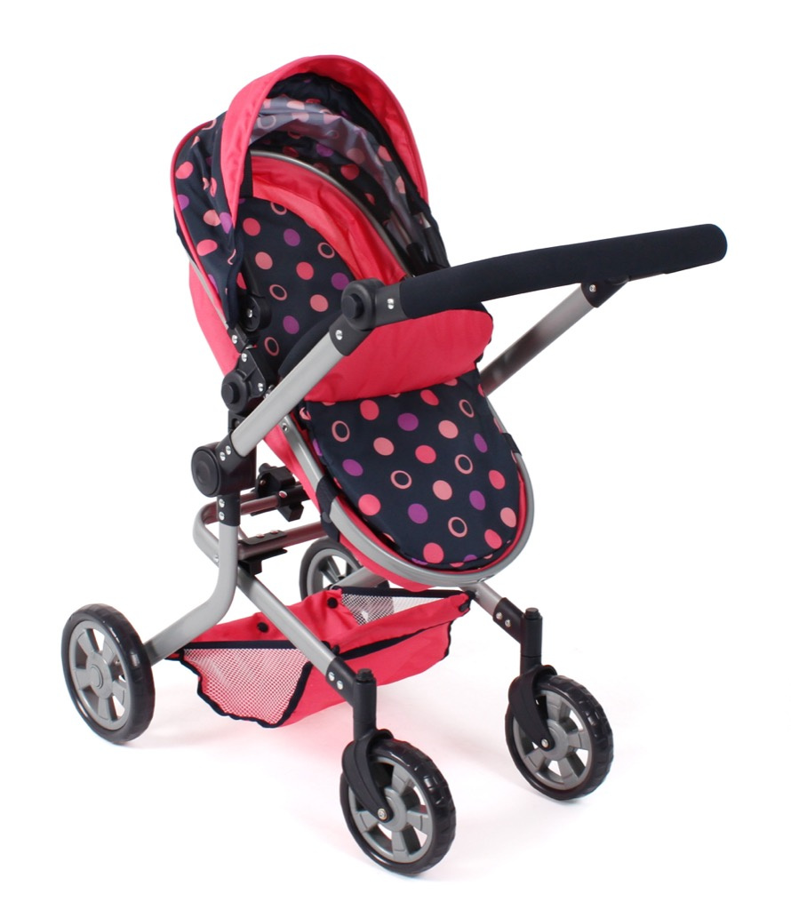 Kočárek je vhodný pro holčičku od 3 do 8 let, prakticky s holčičkou díky nastavitelnému madlu roste.