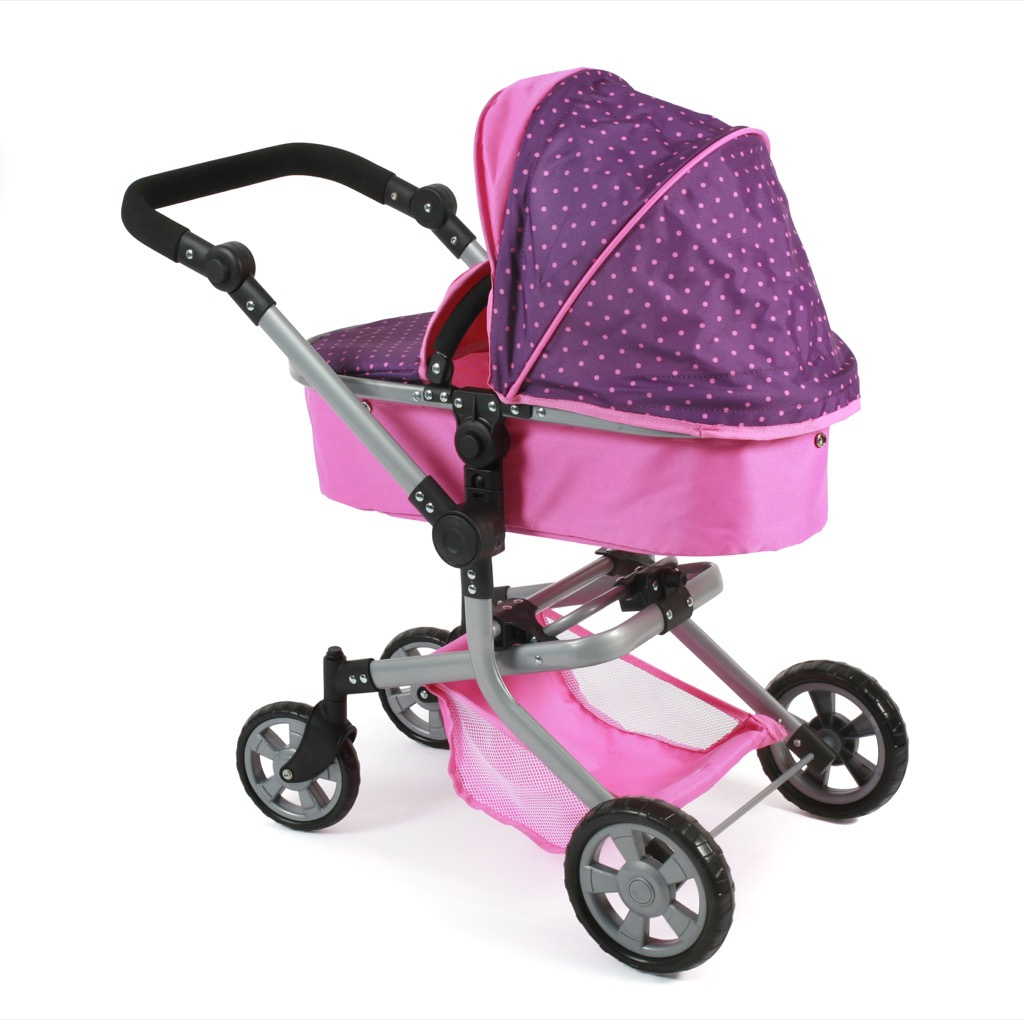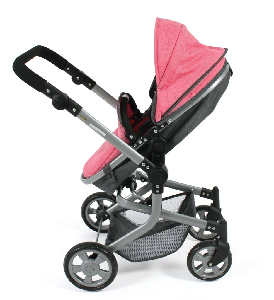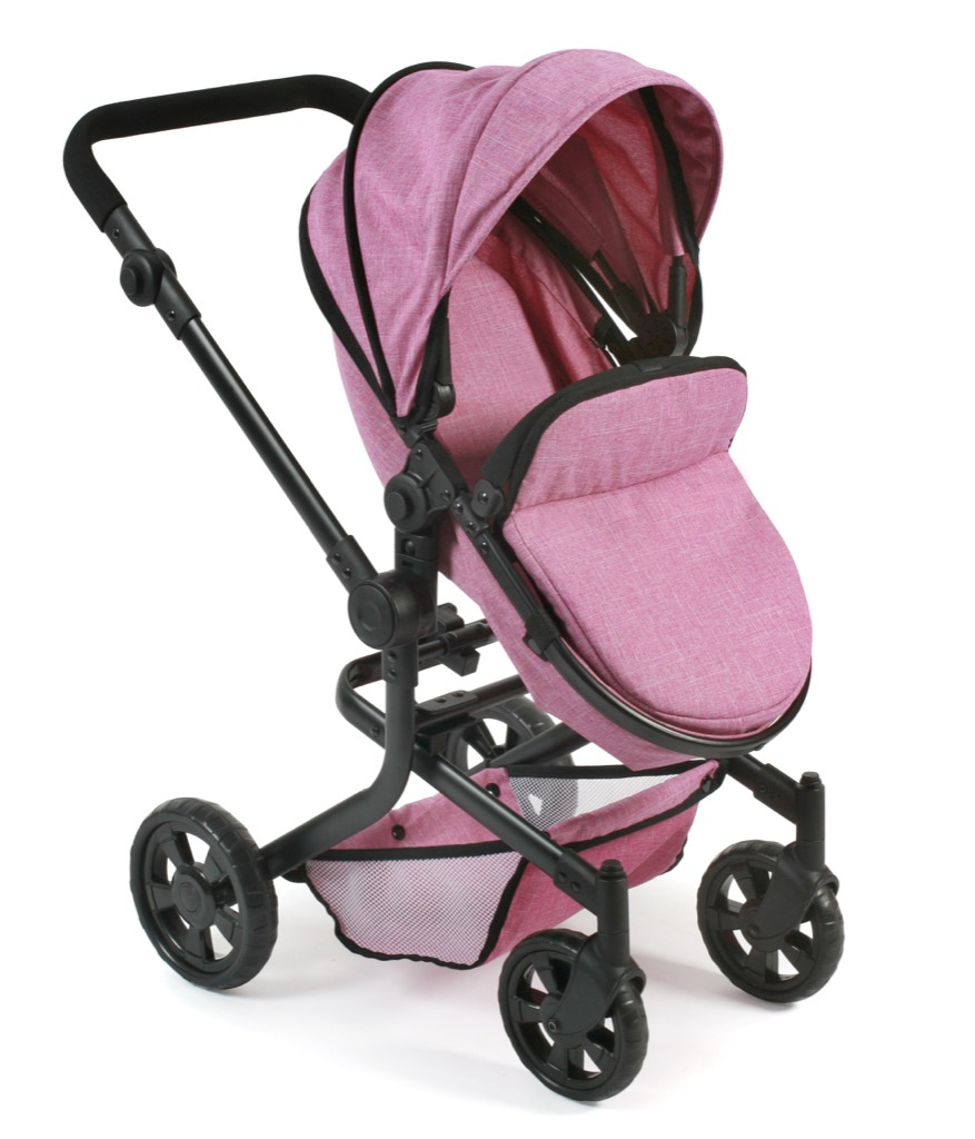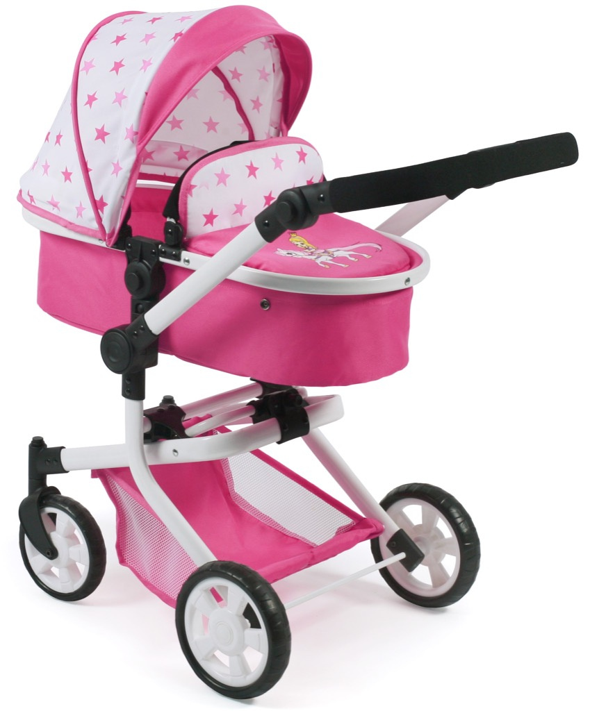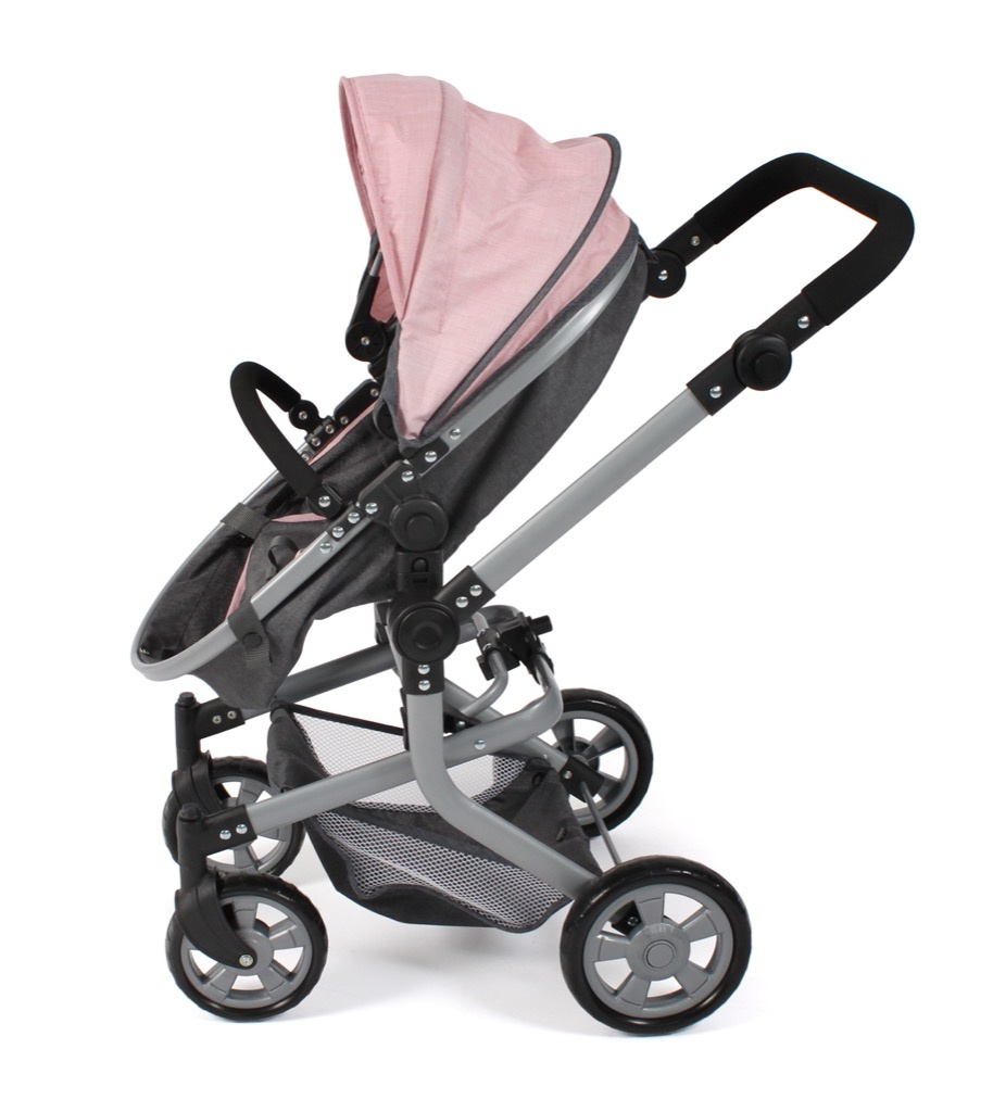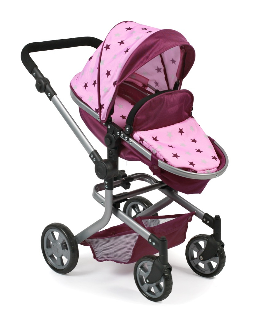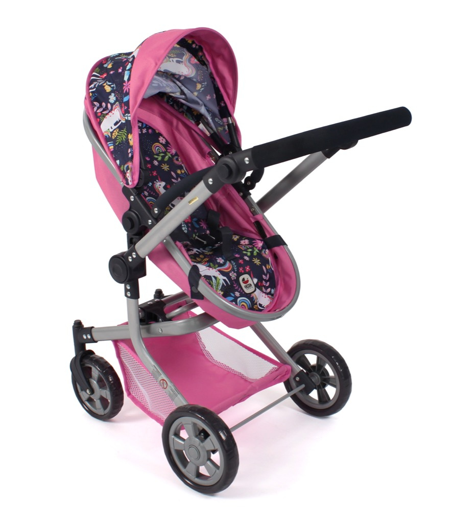 Kočárek je vhodný pro holčičku od 3 do 8 let, prakticky s holčičkou díky nastavitelnému madlu roste.