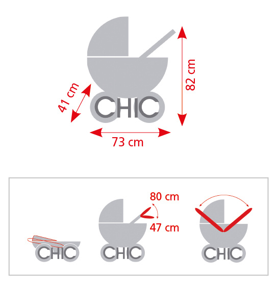 Kočárek má nastavitelnou rukojeť do výšky 47-80 cm. Na rukojeti je měkký pěnový materiál pro příjemné používání.