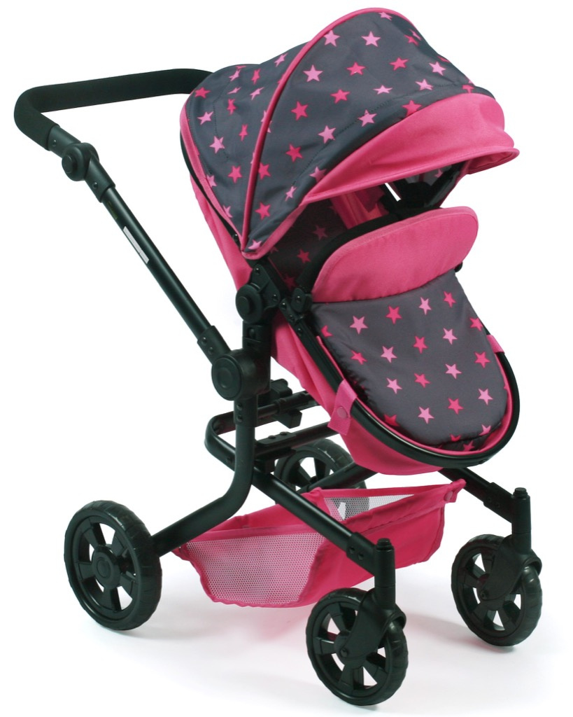 V originále je korbička sportovní, má boudičku s pevným madlem, za které se dá korbička po sundání z podvozku nosit, boudička se dá sklápět, popruhy na připevnění panenky a madlo ve předu jako u opravdového kočárku pro děti. Součástí je také nánožník, který pasuje na obě verze korbičky.Kočárek lze lehce složit pro transport. Tento typ kočárku je pro panenku o velikosti do 52cm.