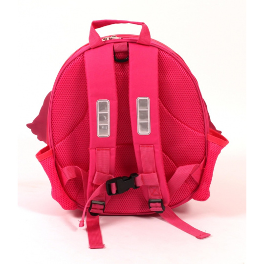 | Dětský batoh pro předškoláky. Z jedné poloviny je tvořen lehkou plastovou skořepinou, zbytek batohu je z polyesterové látky. Batoh má nastavitelné polstrované ramenní popruhy, které lze nastavit dle velikosti dítěte. Popruhy jsou opatřené bezpečnostními odrazkami.Popruhy lze dále sepnout dalším popruhem v úrovni hrudníku, pro lepší stabilitu batohu na zádech dítěte.Batoh se zapíná na zip a uvnitř je po obou stranách několik kapes z toho jedna na zit a stejně tak je kapsa i z venlu batohu, pro přehledné uložení drobností.. |