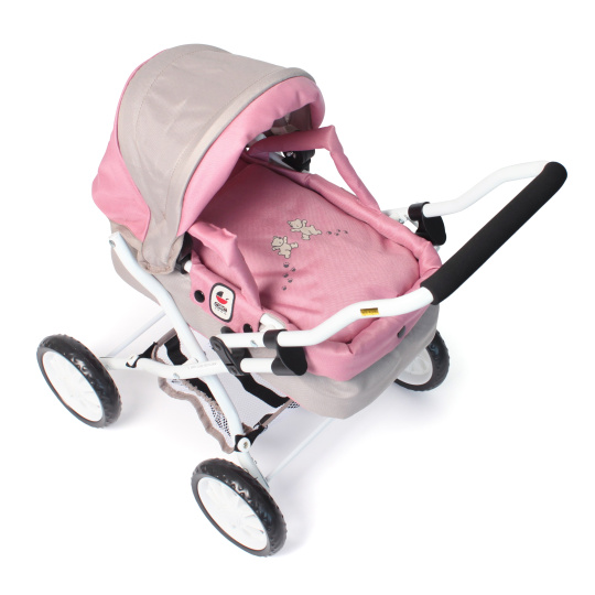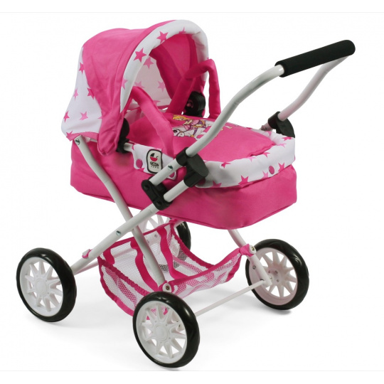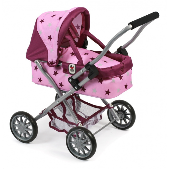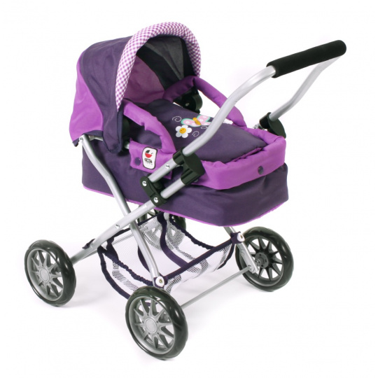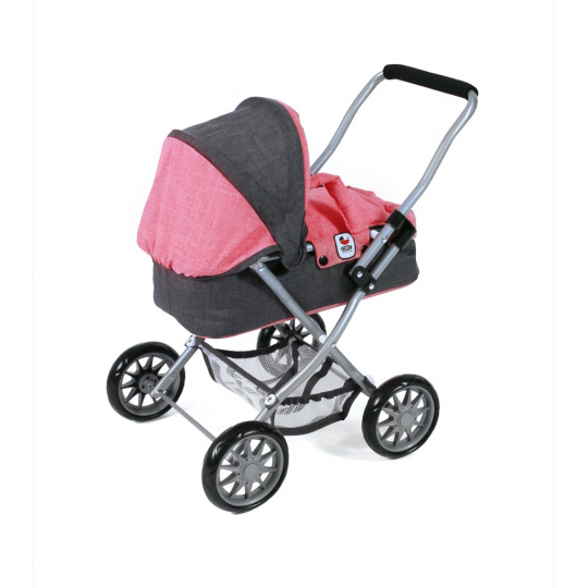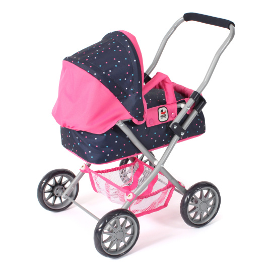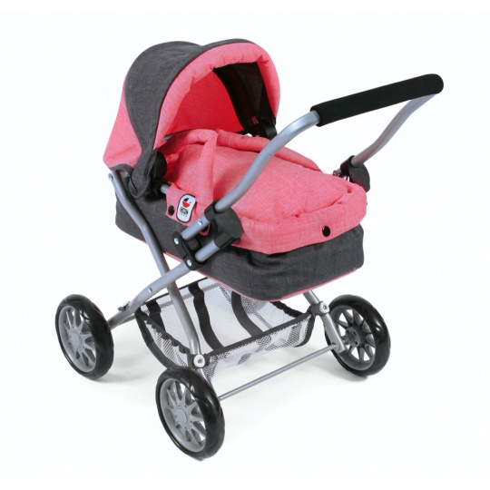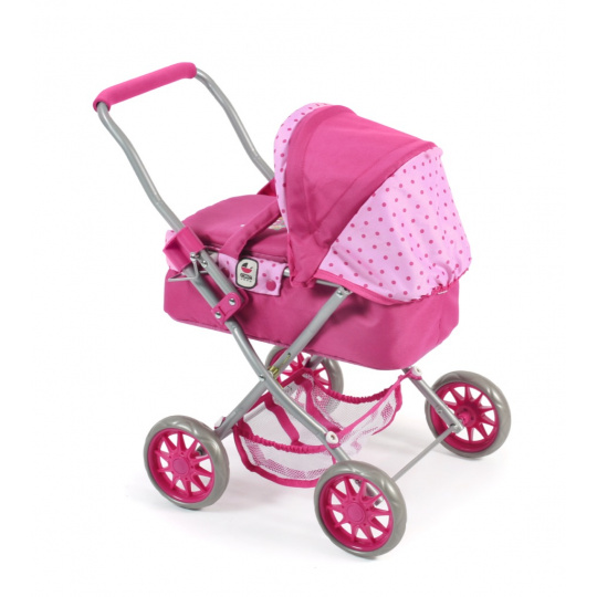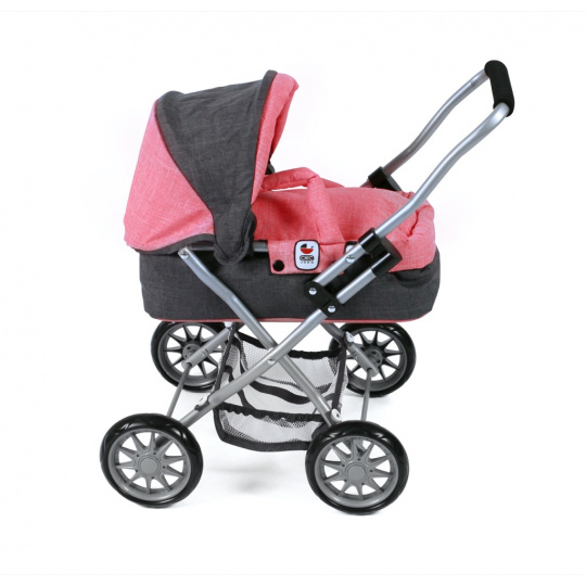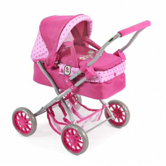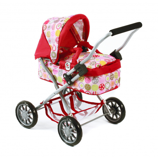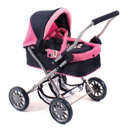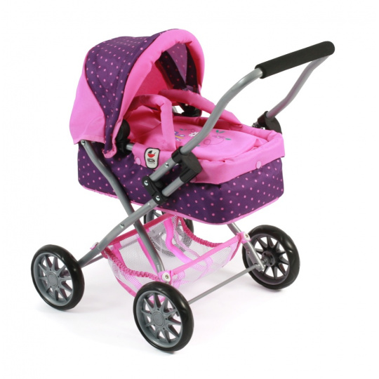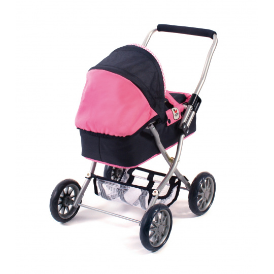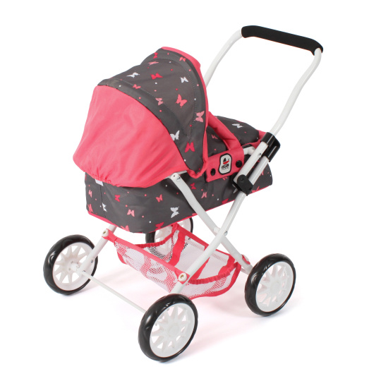 Krásný malinký kočárek pro panenky s vyjímatelnou taškou.