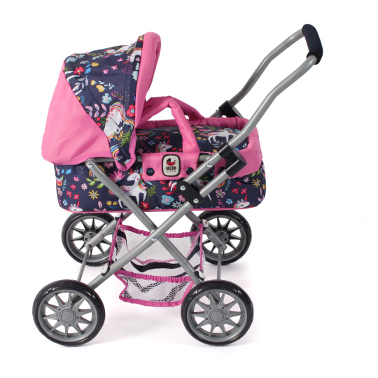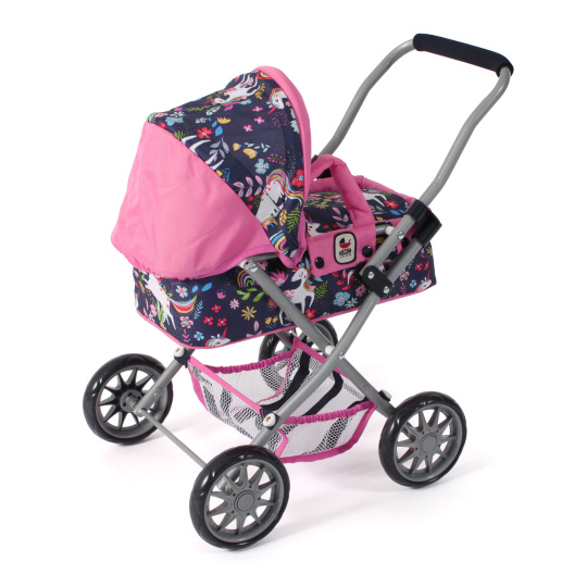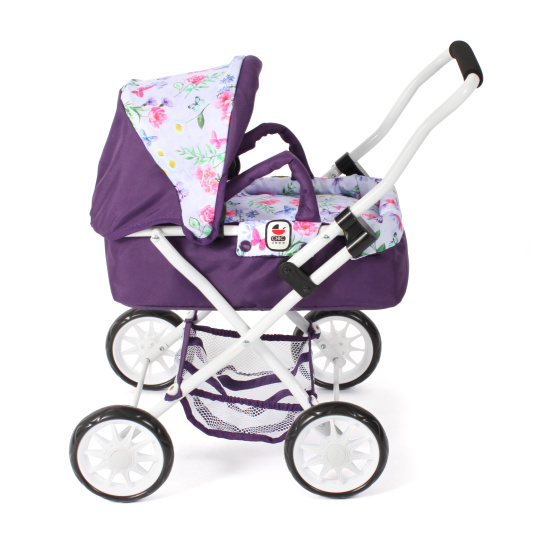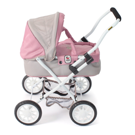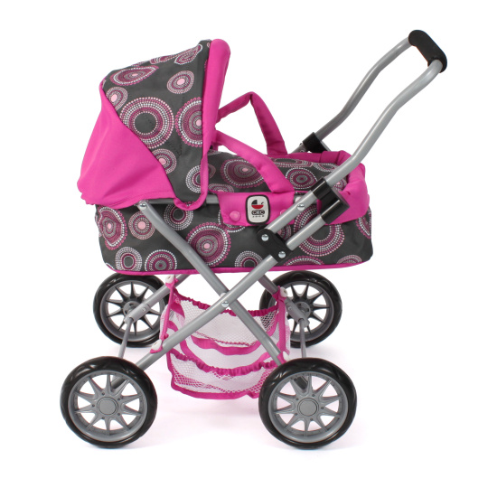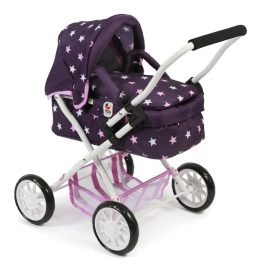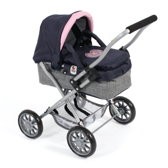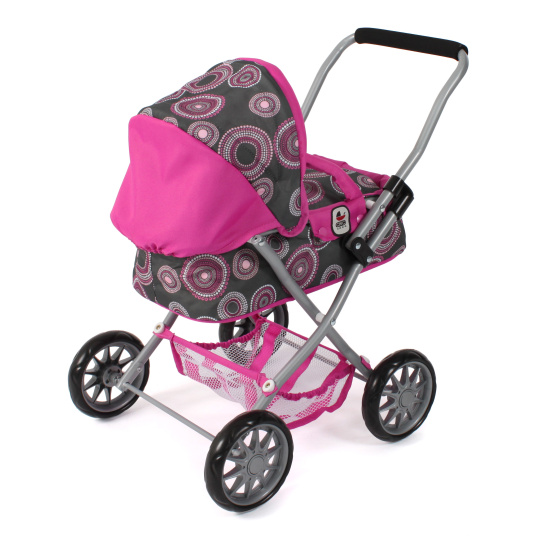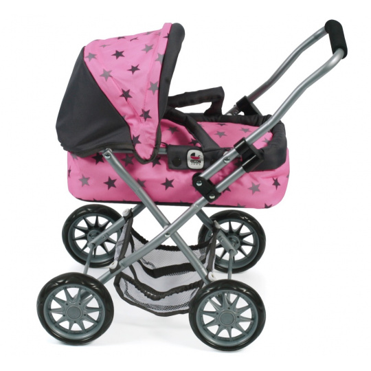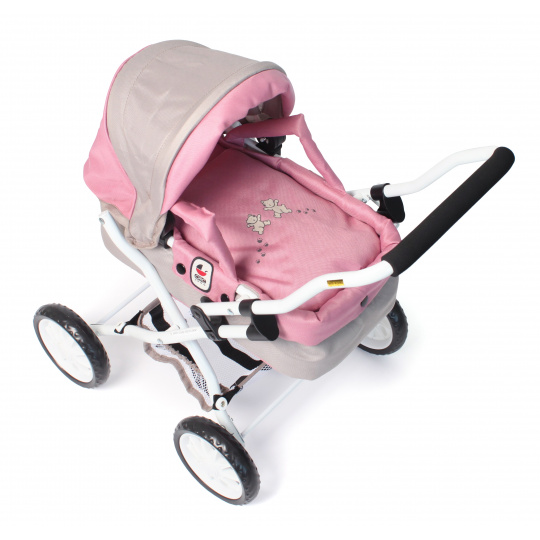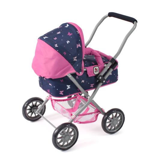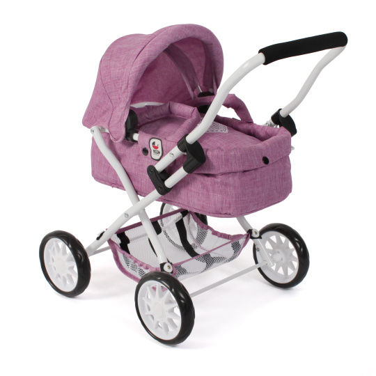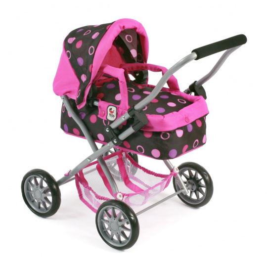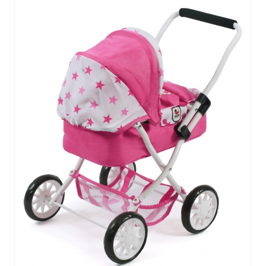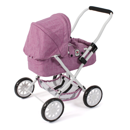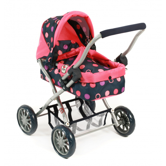 Krásný malinký kočárek pro panenky s vyjímatelnou taškou.