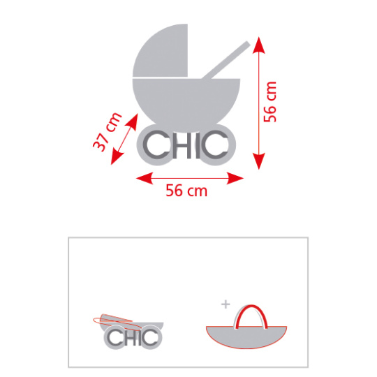 Vyjímatelnou tašku lze použít i samostatně bez podvozku jako tašku pro přenášení panenky.