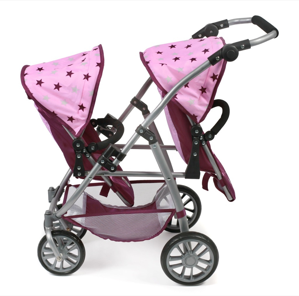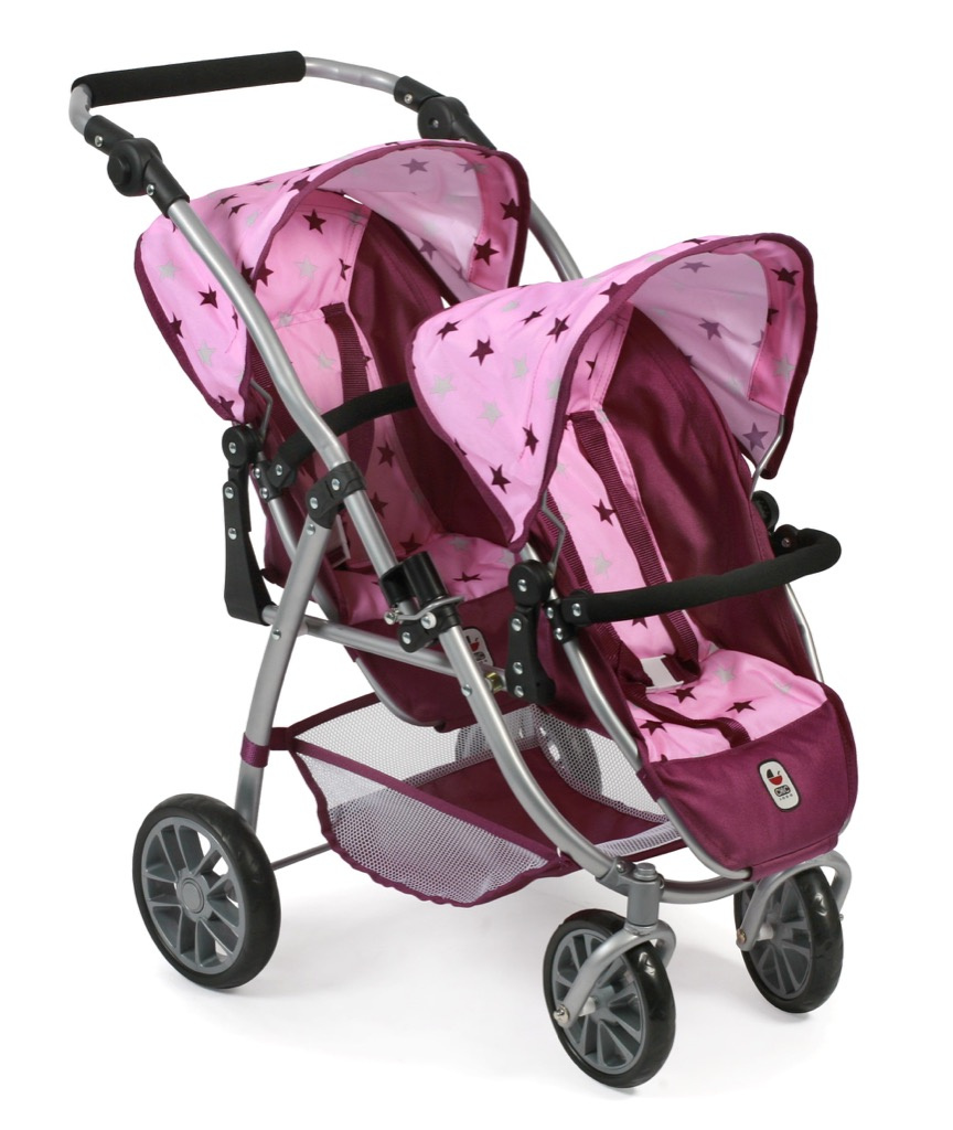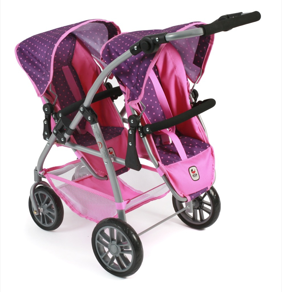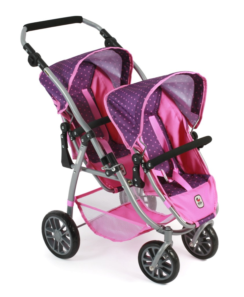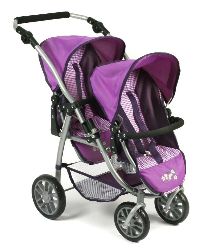 Kočárek pro dvě panenky je variabilní, lehký, skladný s jedinečným konstrukčním řešením.