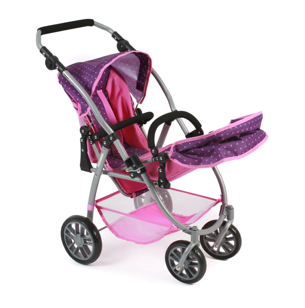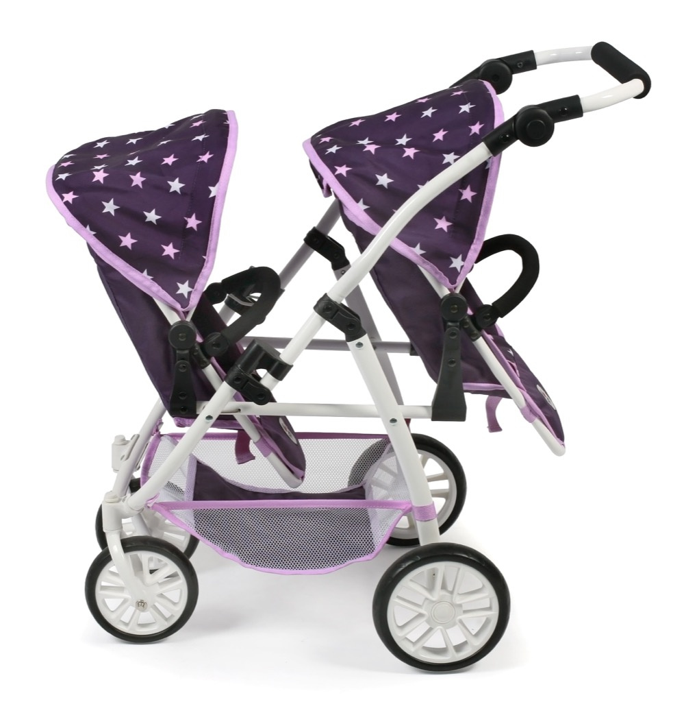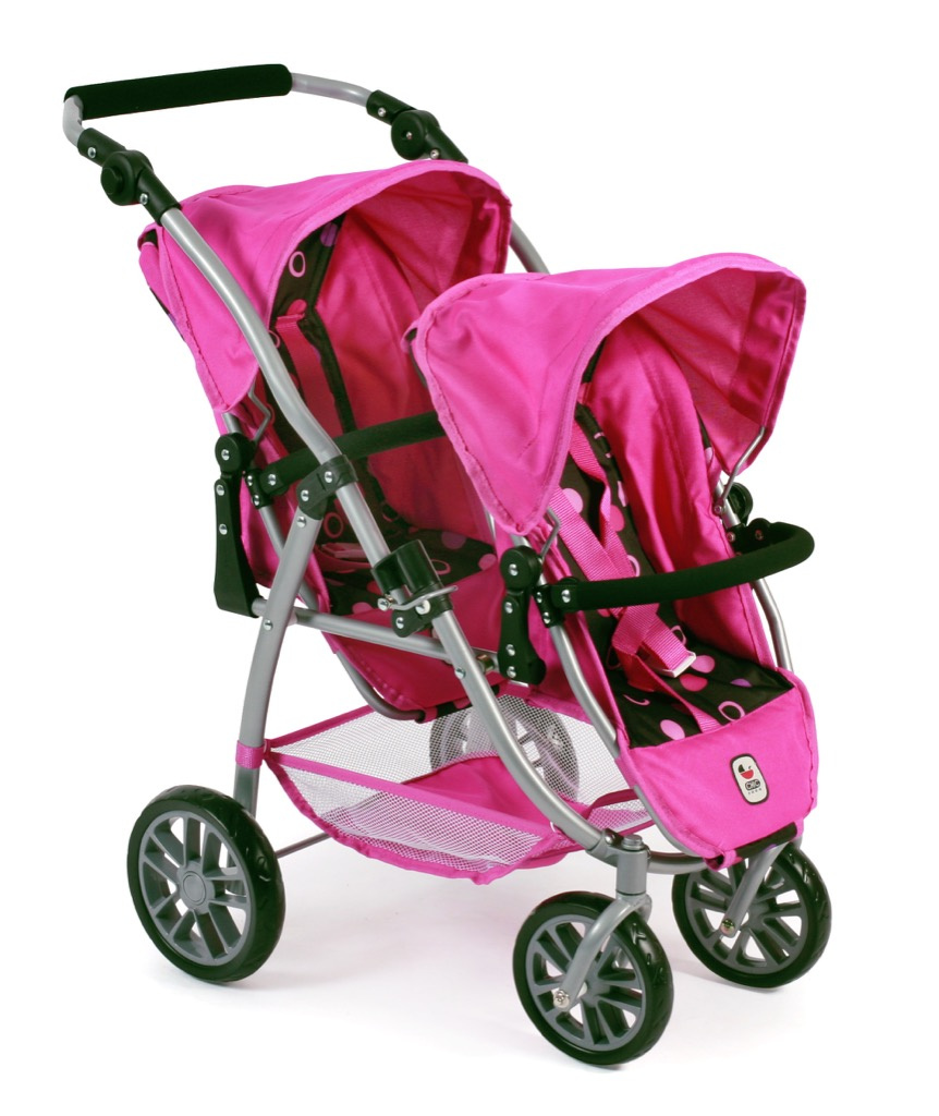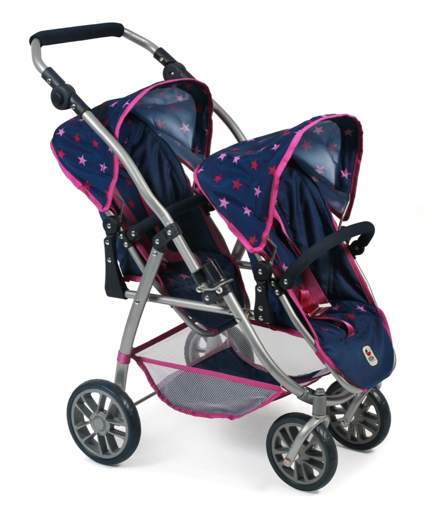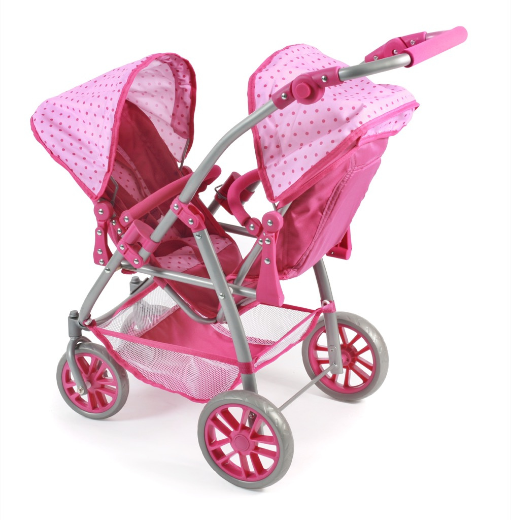 Kočárek pro dvě panenky je variabilní, lehký, skladný s jedinečným konstrukčním řešením.