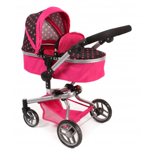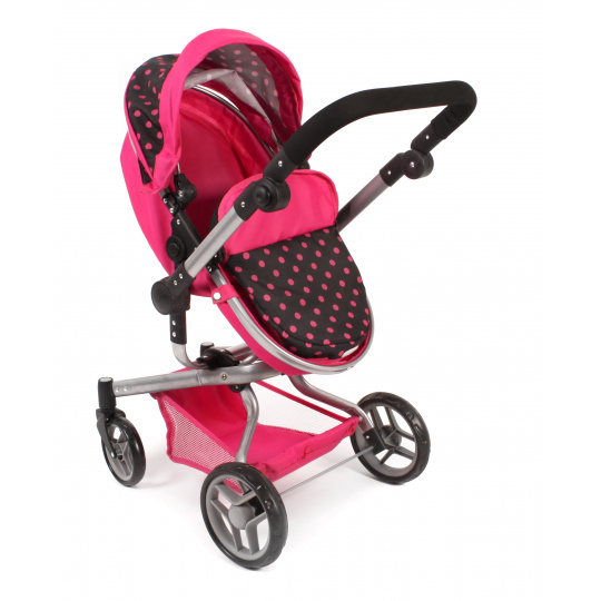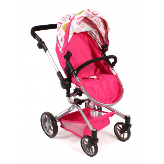 Kočárek je vhodný pro holčičku od 3 do 8 let, prakticky s holčičkou díky nastavitelnému madlu roste.