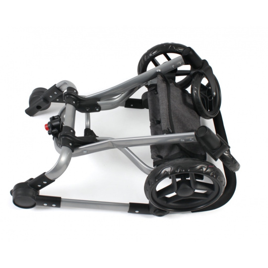 Na pevném podvozku, který má otočná 2 kolečka a 2 pevná je nasazená korbička, která se dá nasadit oběma směry po i proti směru jízdy.