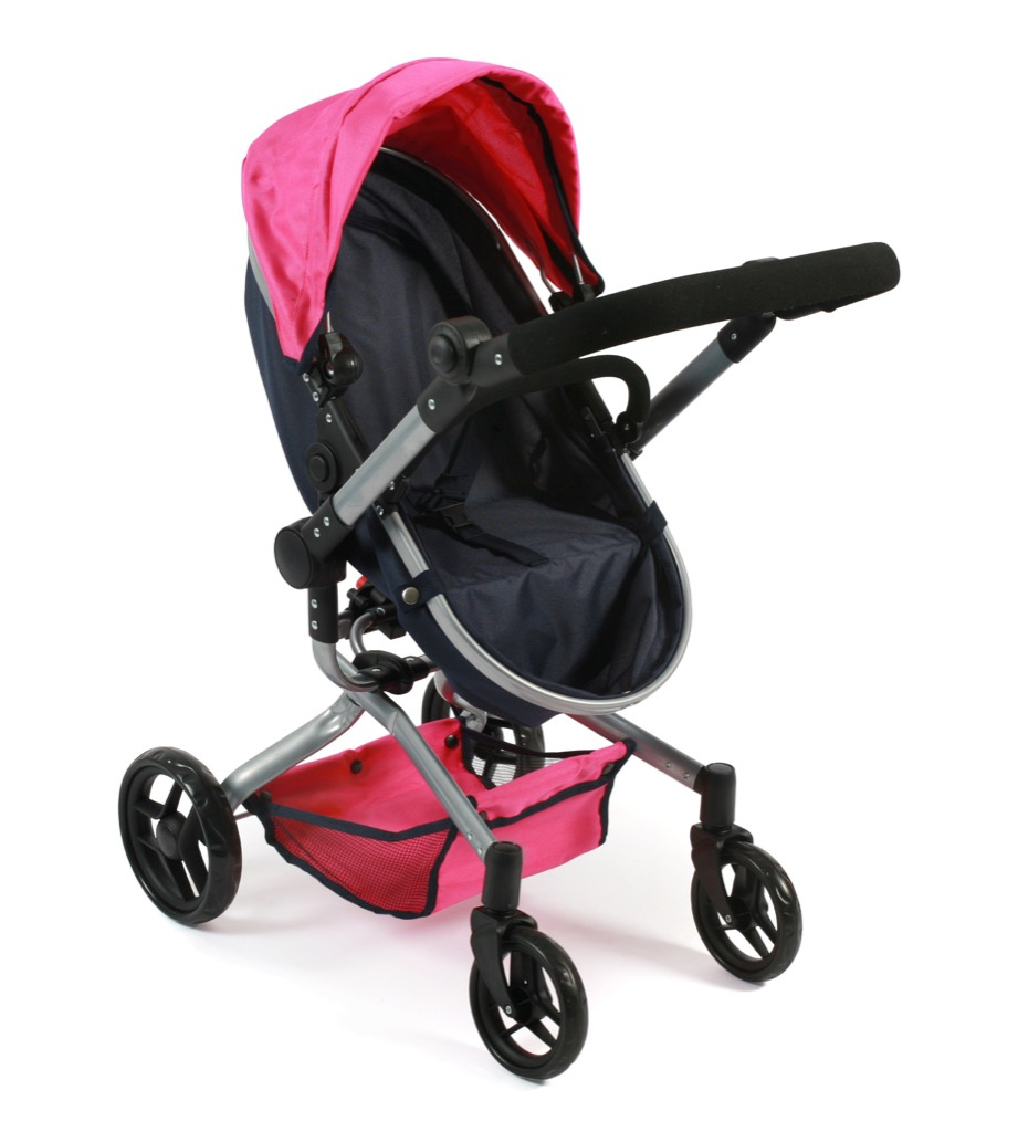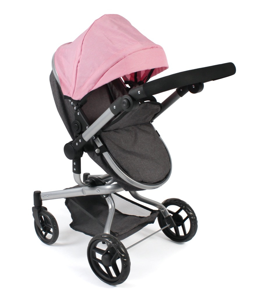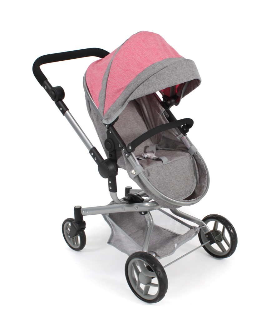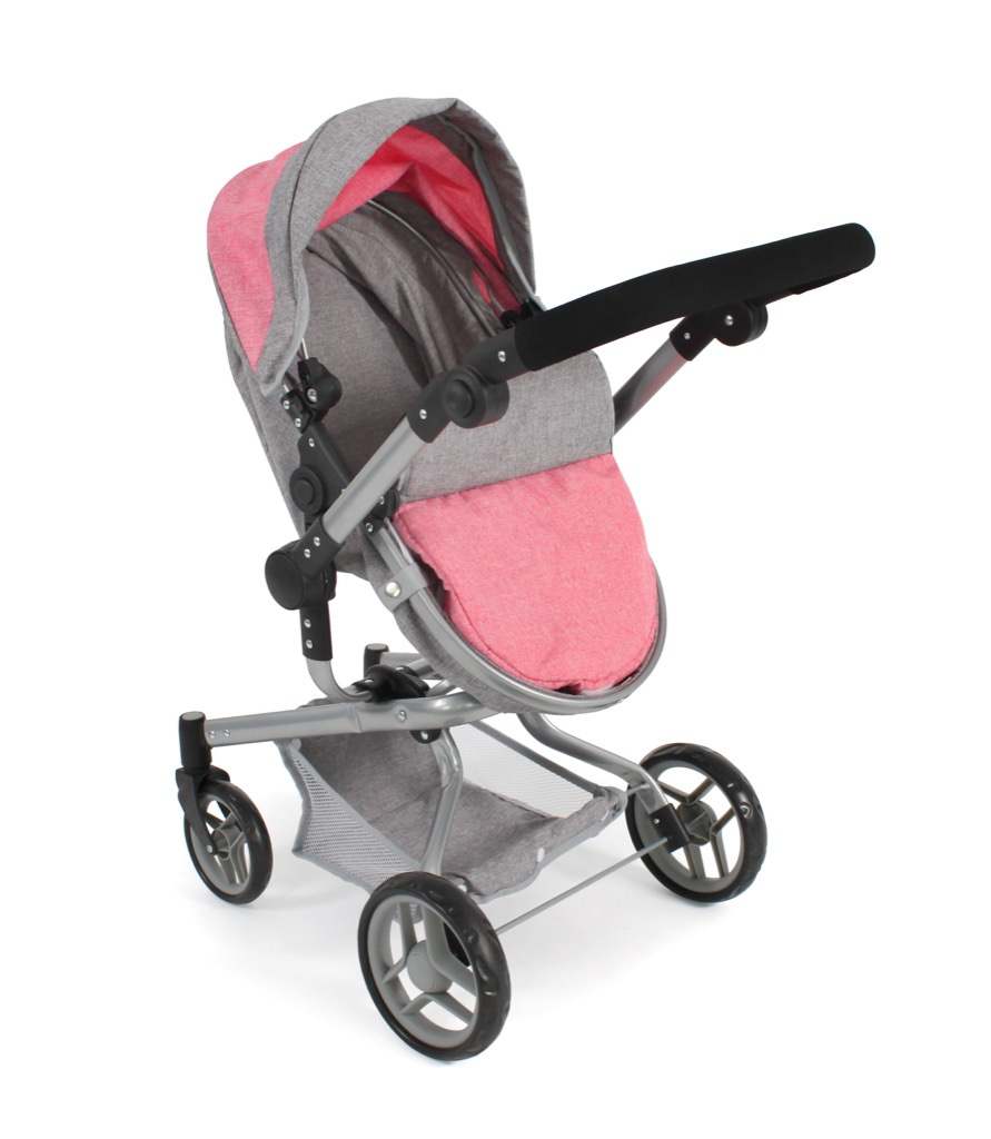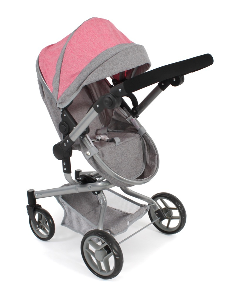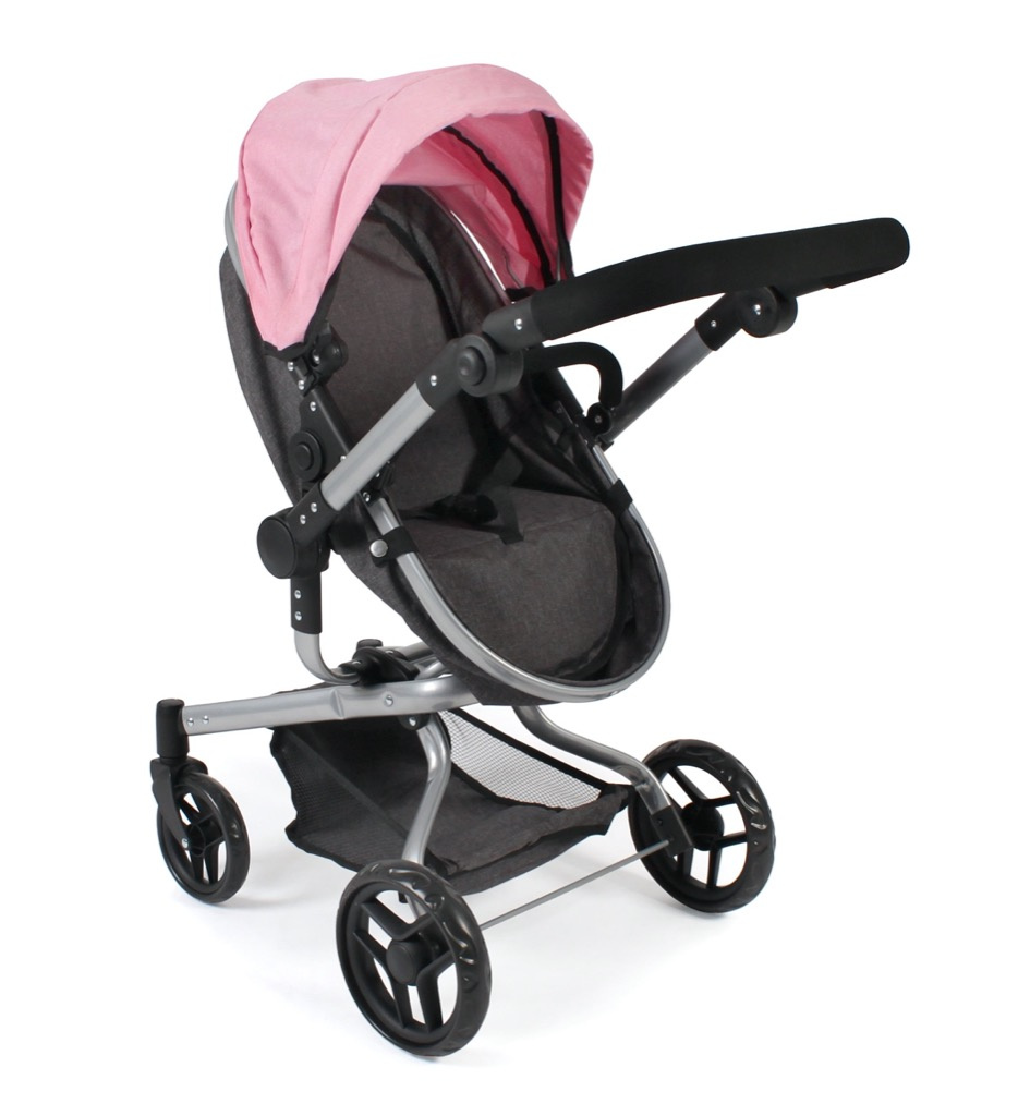 Kočárek je vhodný pro holčičku od 3 do 8 let, prakticky s holčičkou díky nastavitelnému madlu roste.