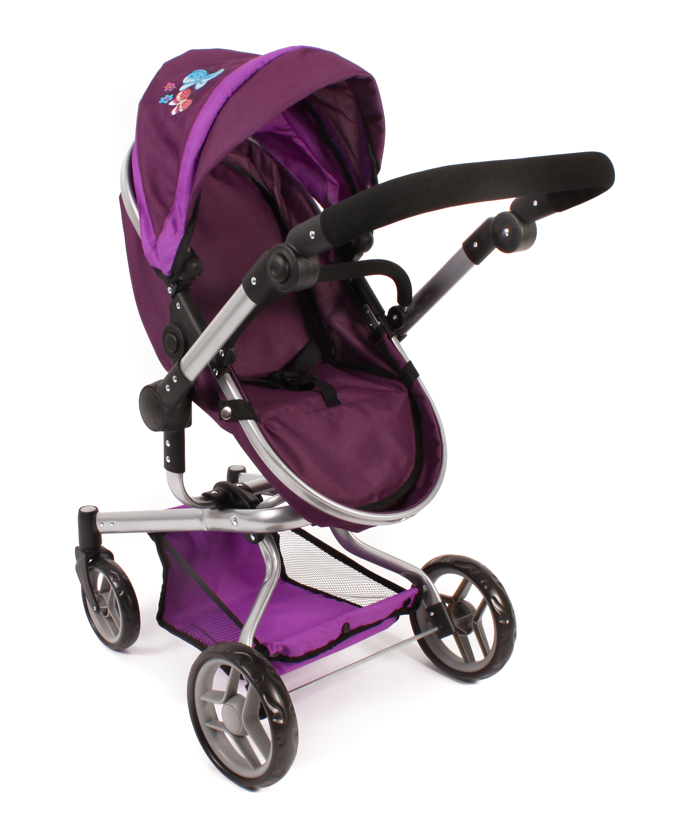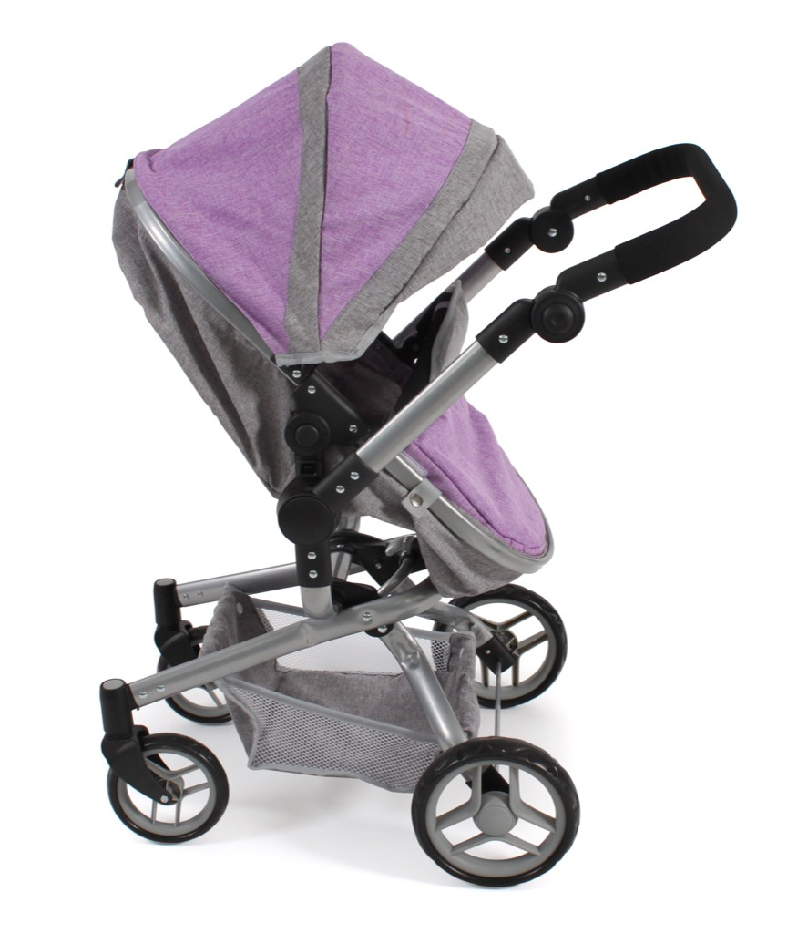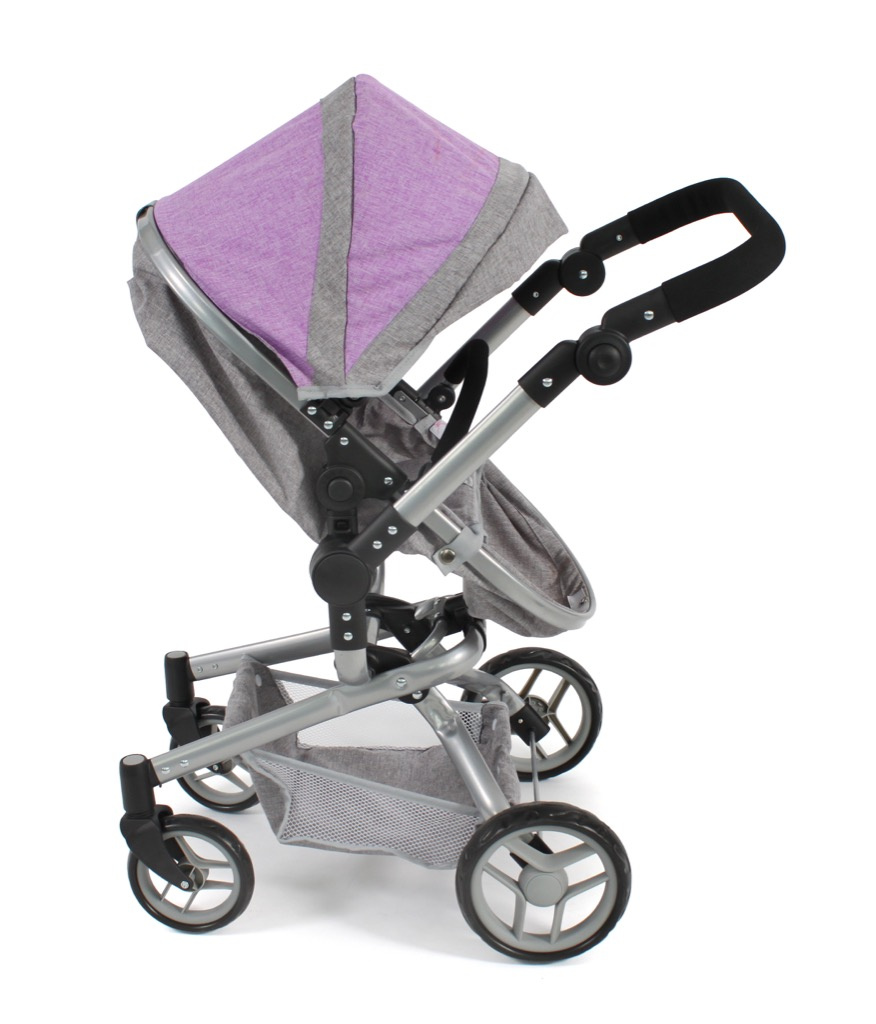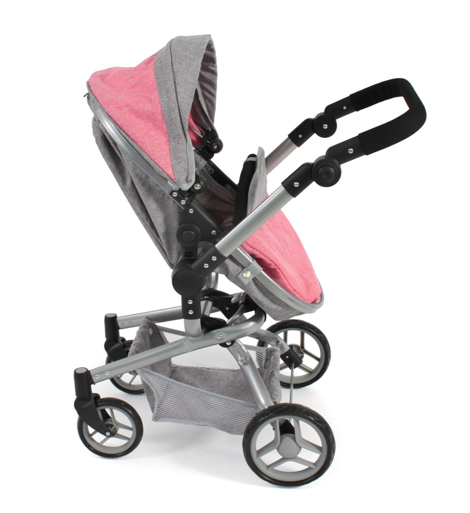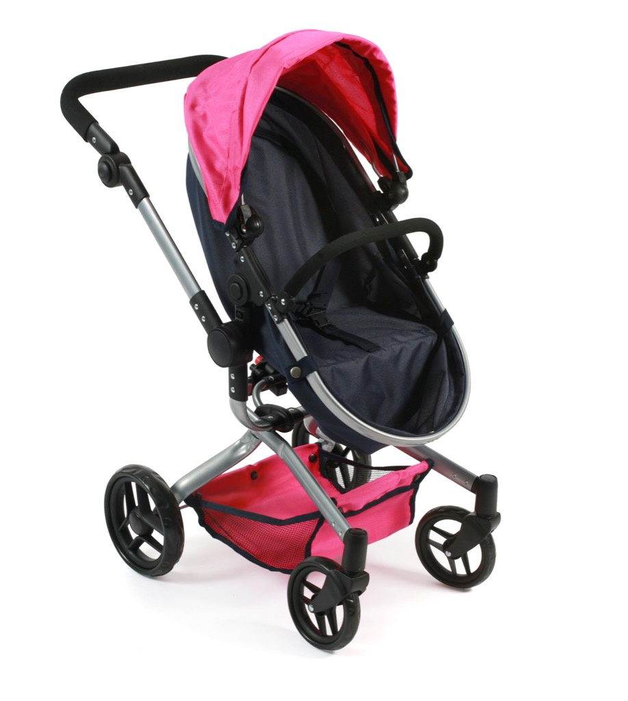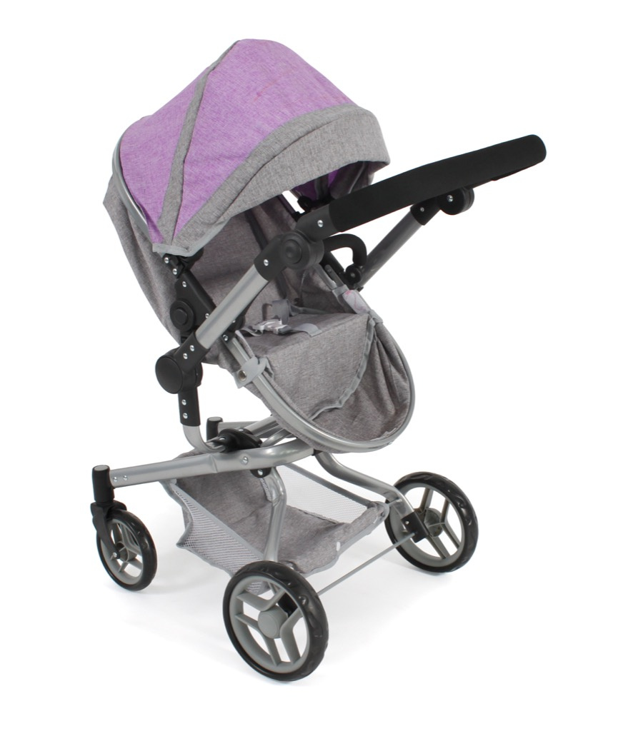Kočárek je vhodný pro holčičku od 3 do 8 let, prakticky s holčičkou díky nastavitelnému madlu roste.