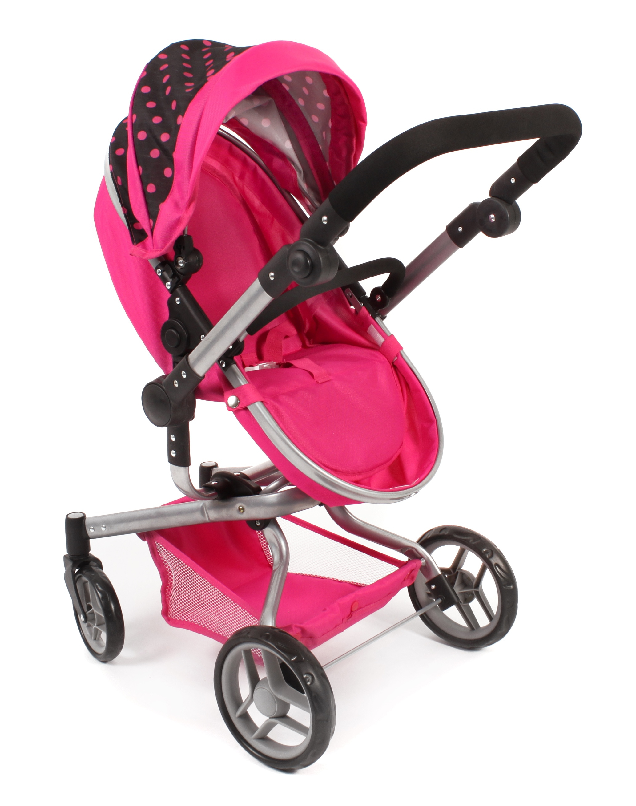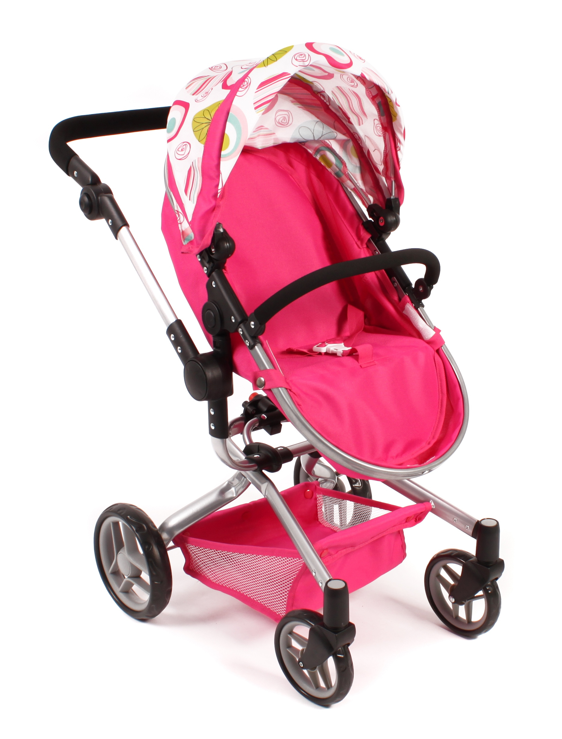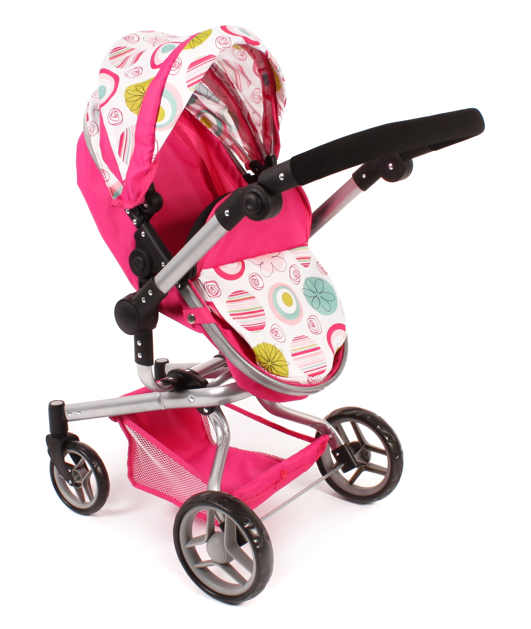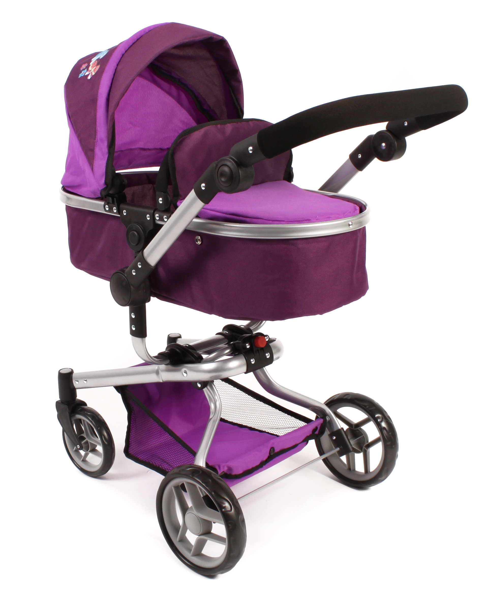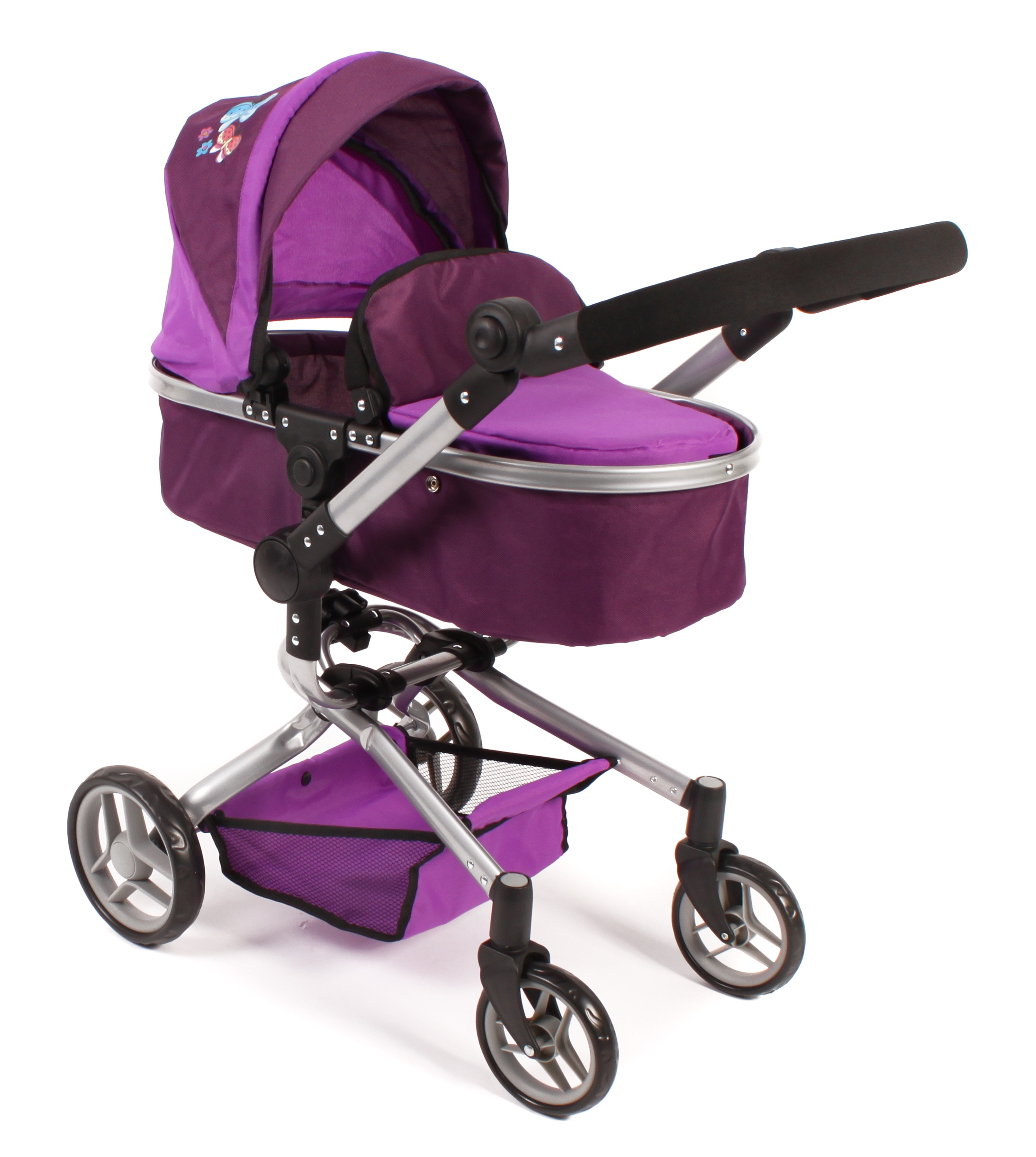 Kočárek je vhodný pro holčičku od 3 do 8 let, prakticky s holčičkou díky nastavitelnému madlu roste.