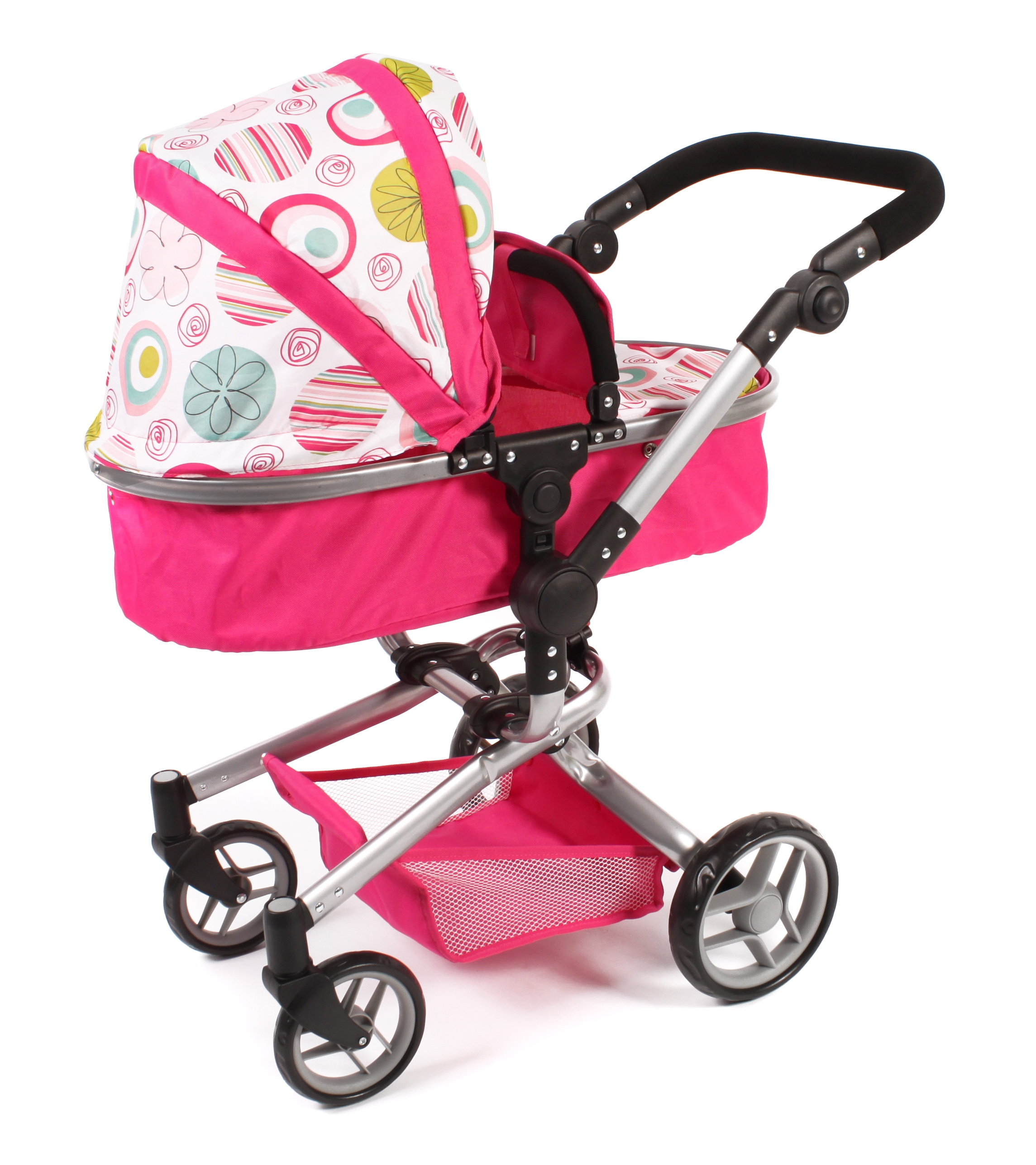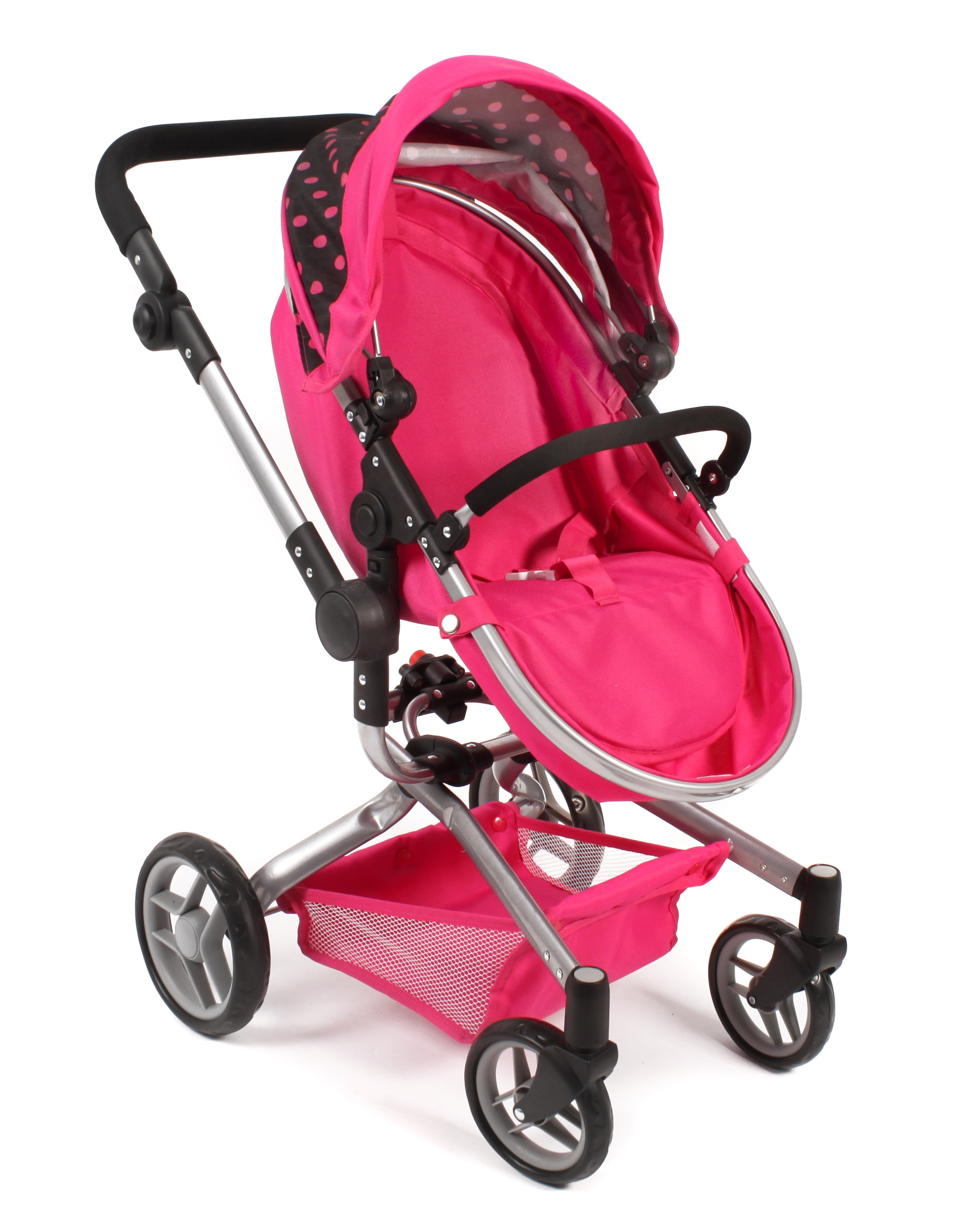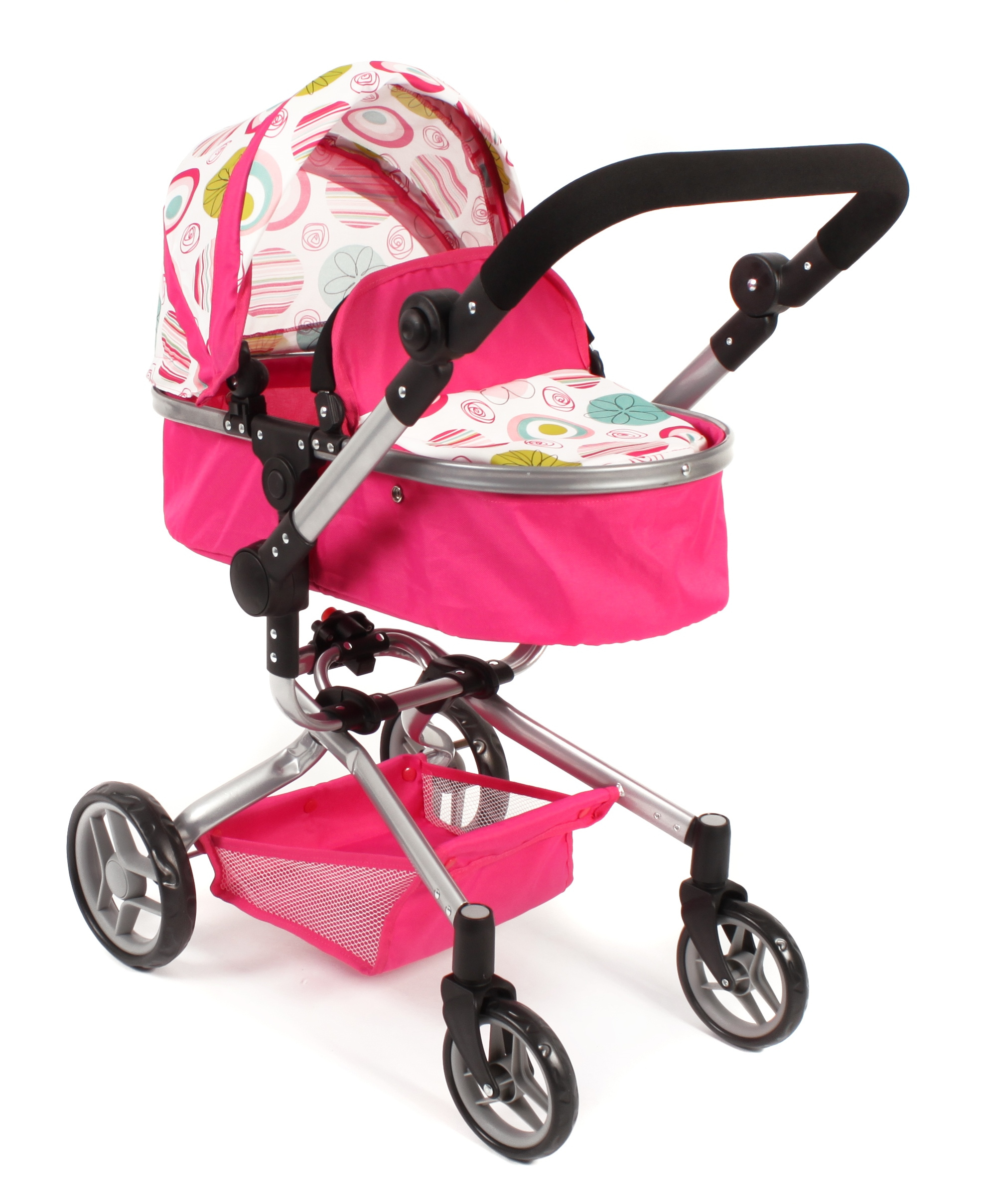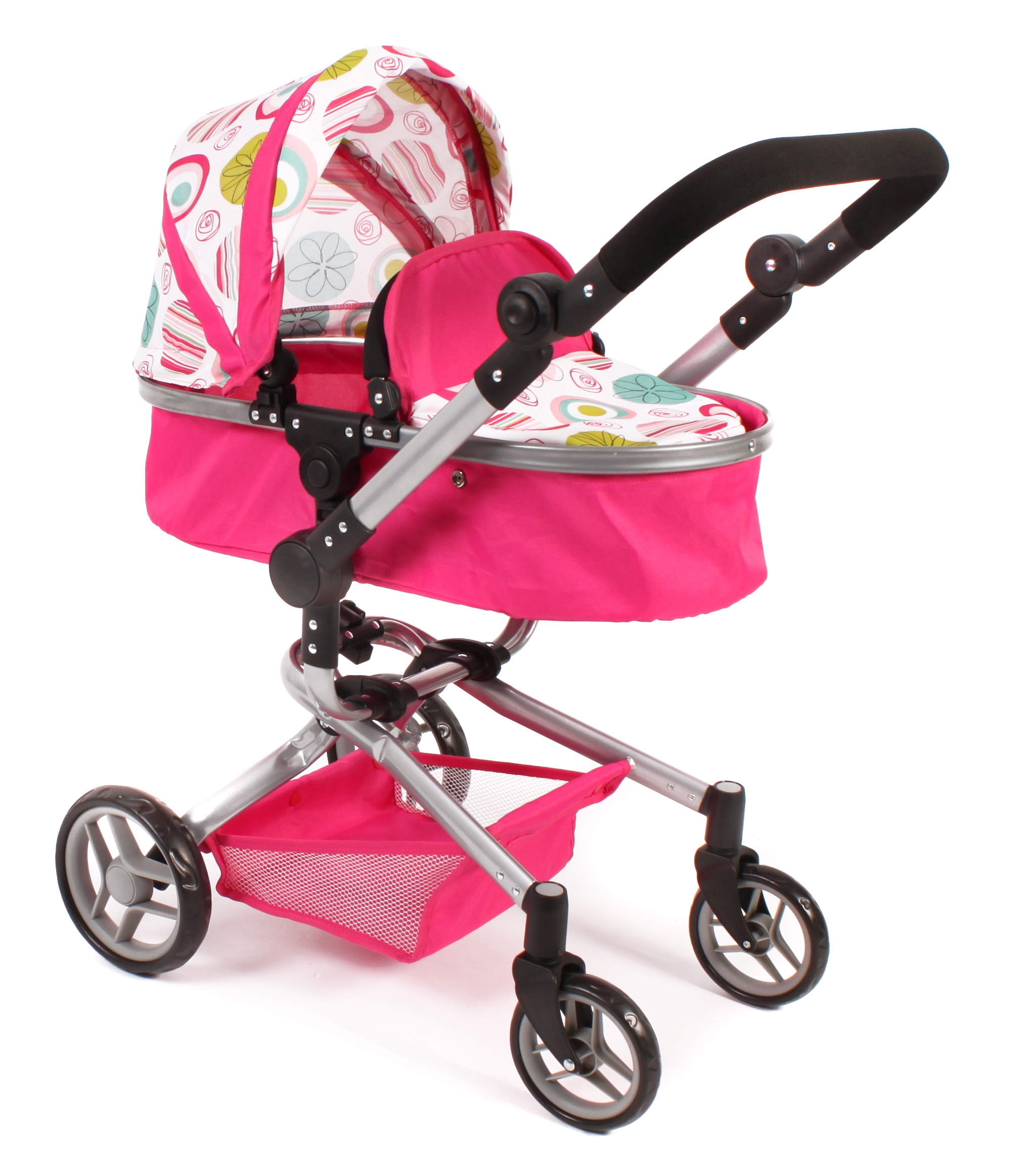 Kočárek je vhodný pro holčičku od 3 do 8 let, prakticky s holčičkou díky nastavitelnému madlu roste.