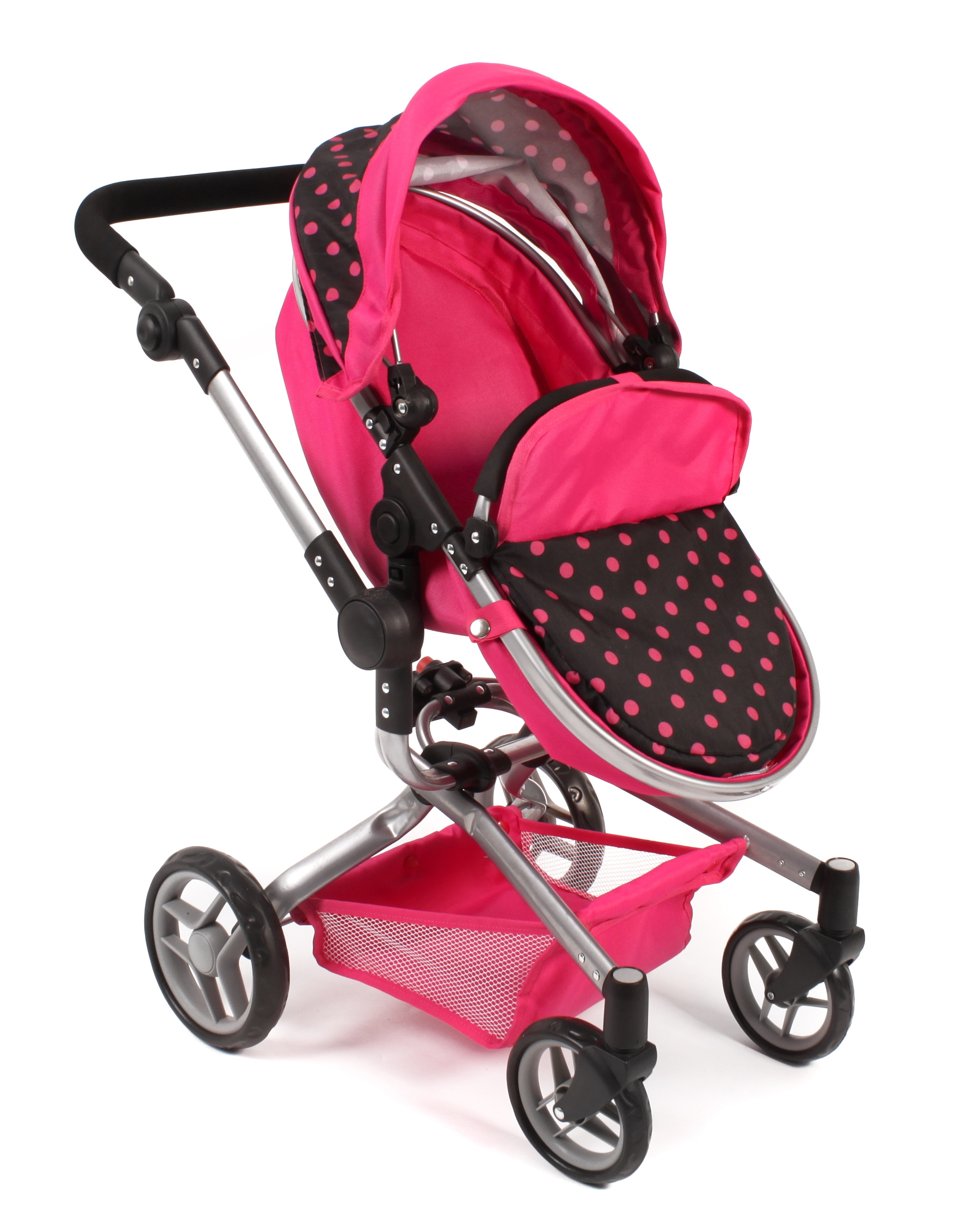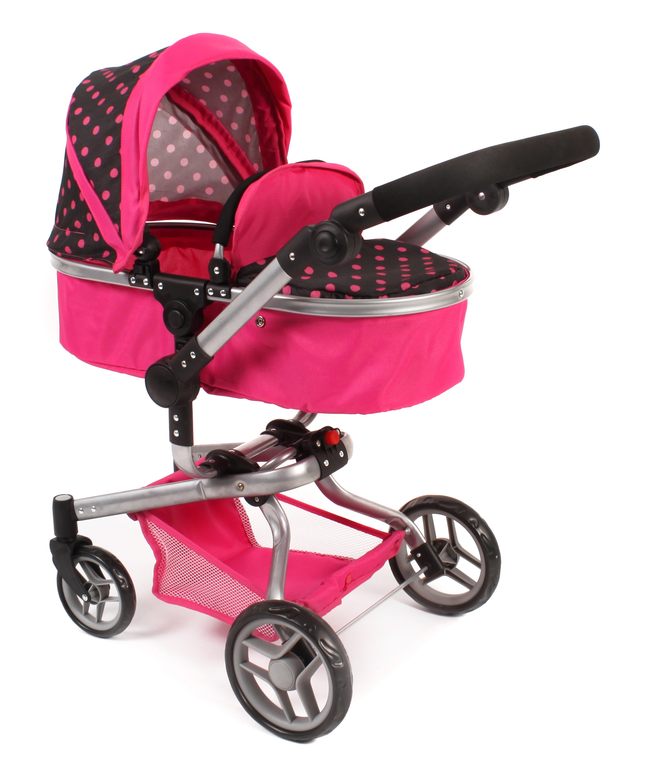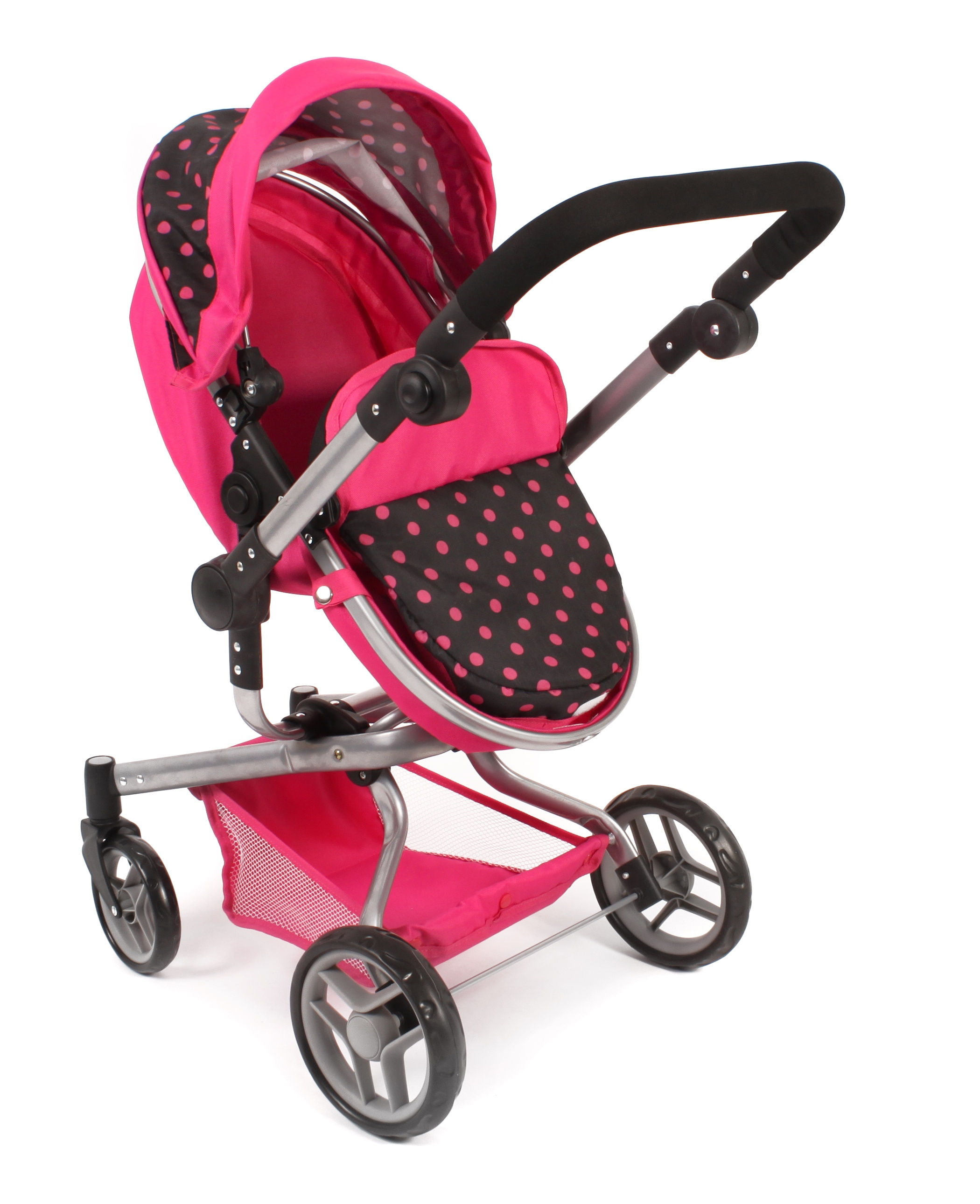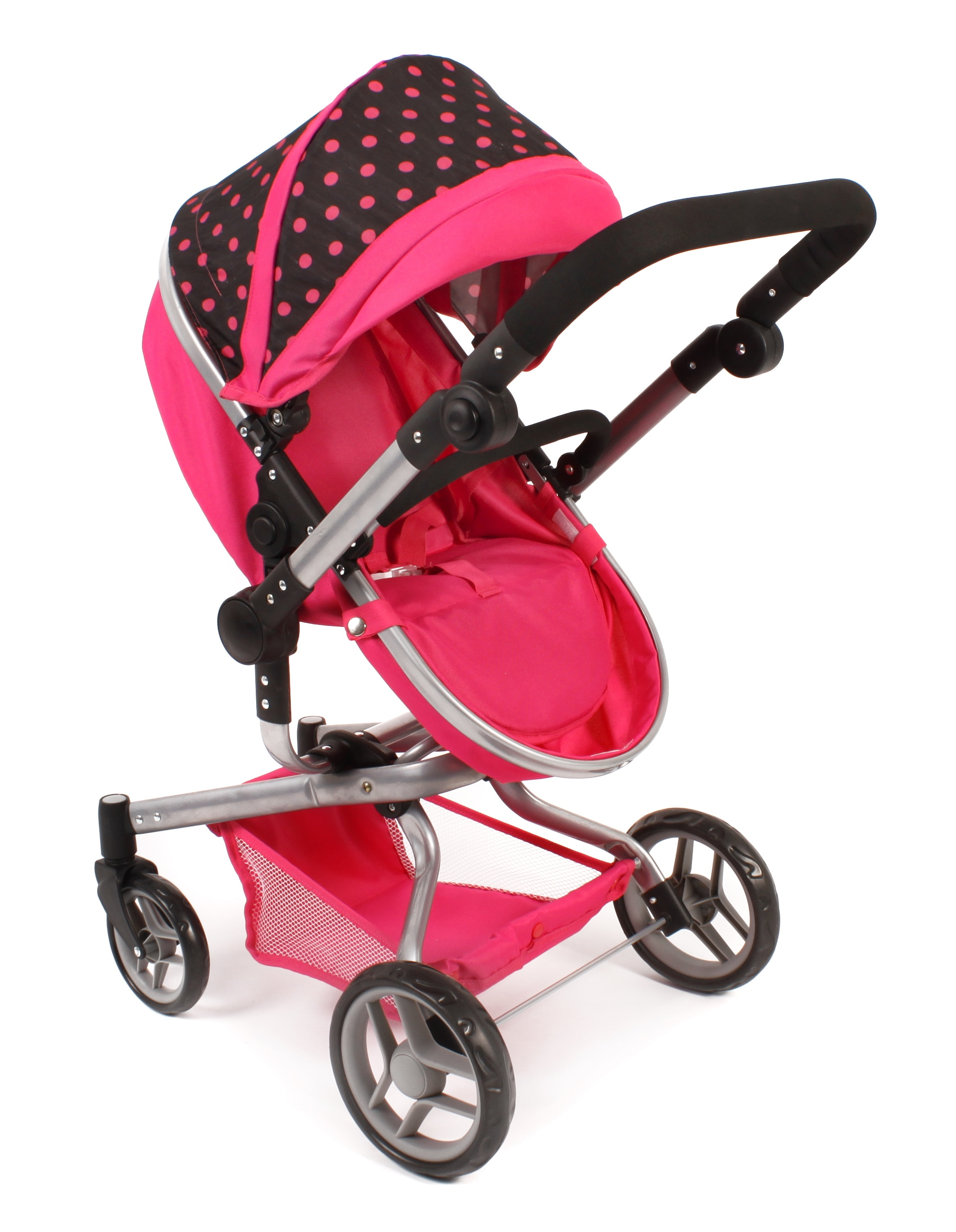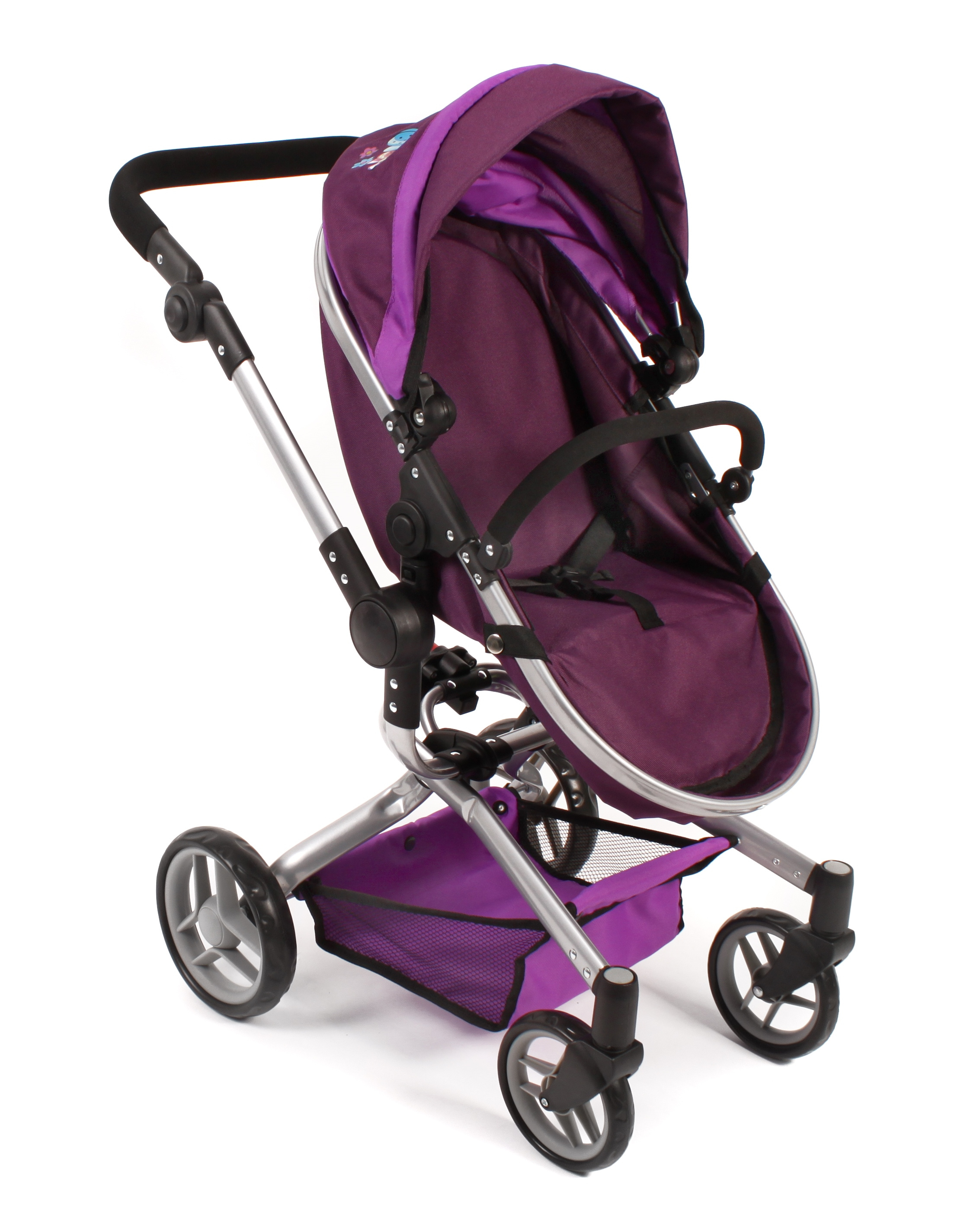 Kočárek je vhodný pro holčičku od 3 do 8 let, prakticky s holčičkou díky nastavitelnému madlu roste.