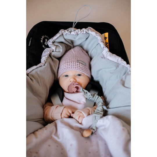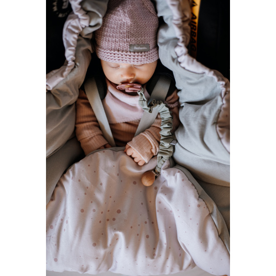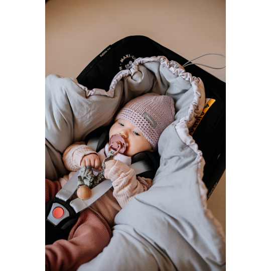 Měkká deka do autosedačky / nebo kočárku s otvory pro možné uchycení v jakékoli autosedačce (i s 5bodovými neoddělitelnými bezpečnostními pásy).