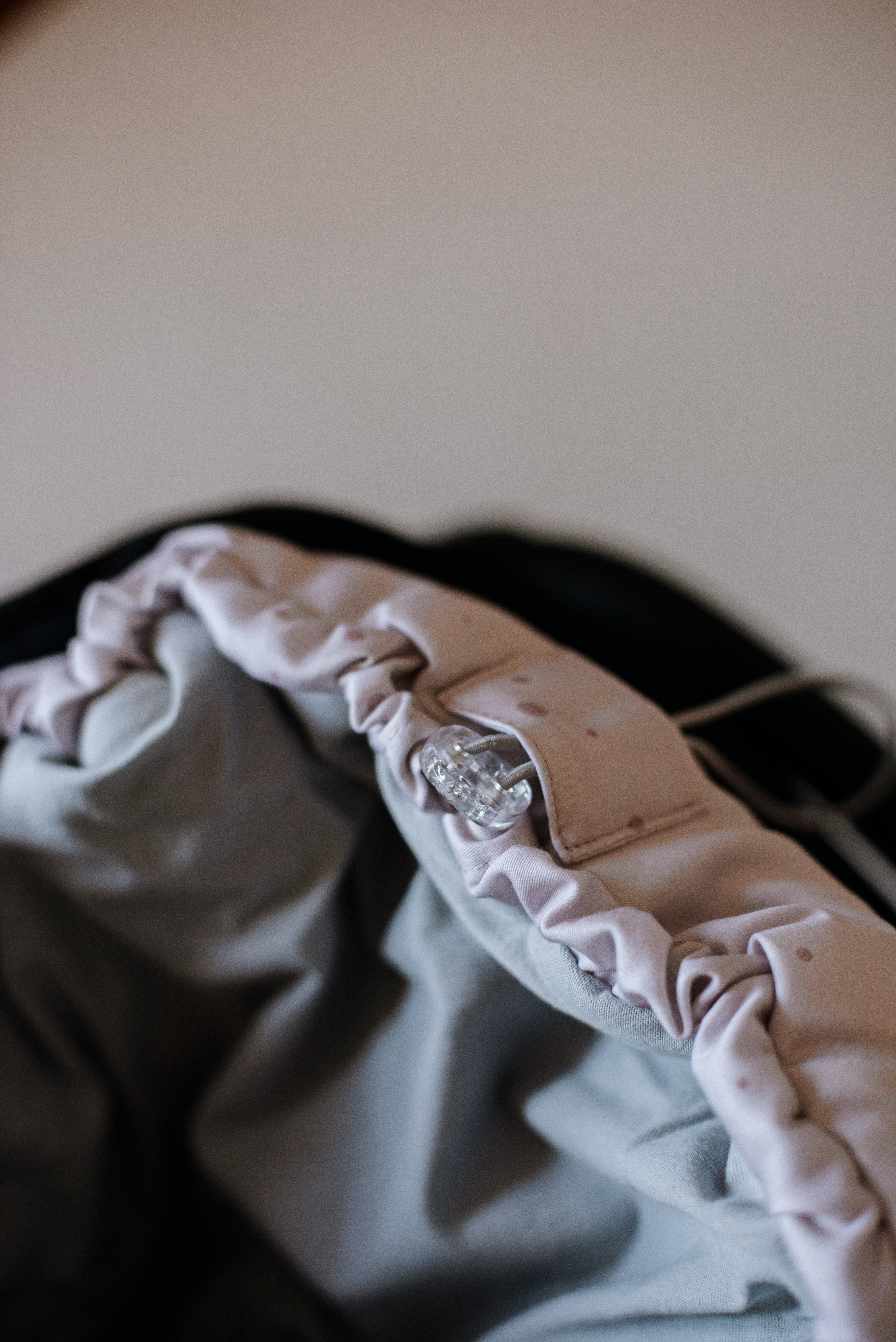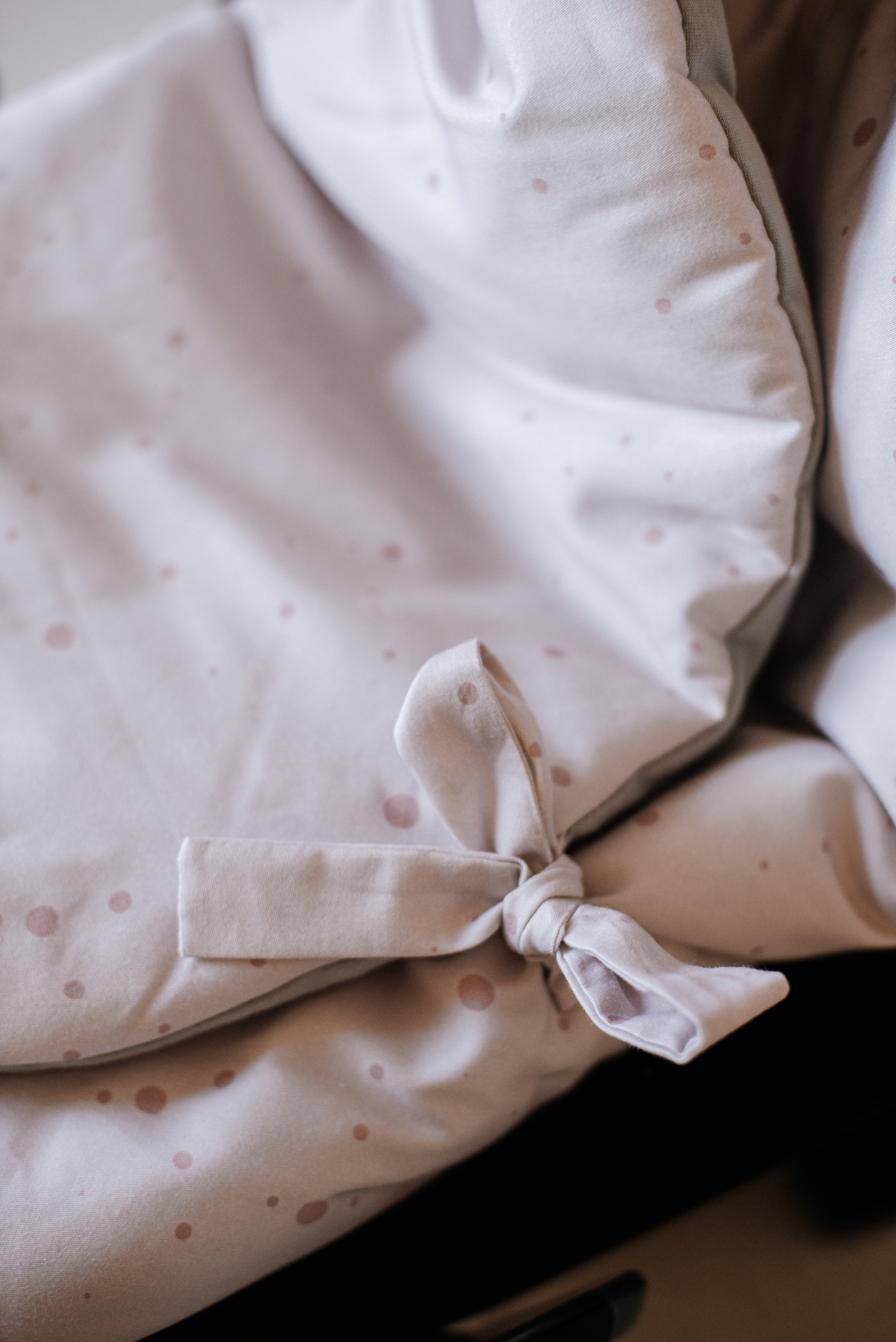Celou deku je možné zavázat šňůrkami, které zabrání nechtěnému rozepnutí deky a vystavení tak chladu vašeho děťátka.