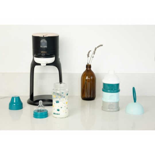 Beaba Bib´Expresso 2v1 je unikátní přístroj, umožňující připravit umělé mléko pro dítě během několika sekund, jednou rukou a s ideální teplotou. Objevte nový způsob, jak připravit mléko: Rychlejší: láhev s mlékem je připravena během 30 sekund (odpovídá přípravě láhve o objemu 150 ml, přesná doba ohřevu záleží na množství a teplotě vody) Bezpečnější: mléko má vždy správnou teplotu, přístroj nabízí možnost ohřevu vody na 22°C (pokojová teplota) nebo 37°C (teplota těla) Praktičtější: proudící voda současně míchá sušené mléko a zajišťuje rovnoměrnou teplotu Jednodušší: láhev s mlékem připravíte snadno jednou rukou, takže můžete během přípravy mléka dítě chovat Bib‘ Expresso 2v1 vám dále nabízí funkci ohřívání láhve s nápojem nebo skleničky s příkrmem. Ohřívač je možné oddělit a používat zcela samostatně, je tak ideální i na cesty. Díky možnosti oddělení podstavce a ohřívače je přístroj možné složit do kompaktního tvaru pro skladování.