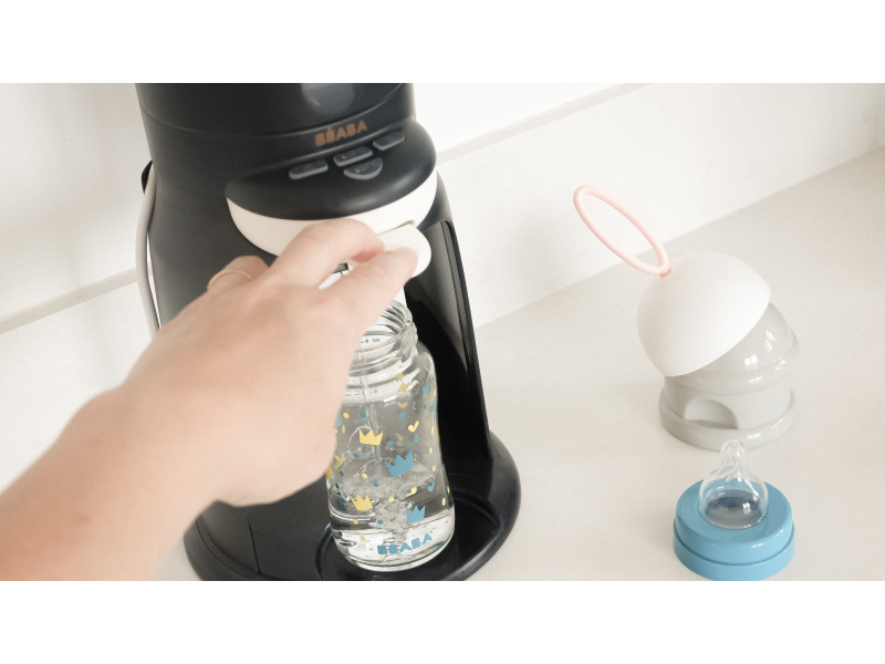 Beaba Bib´Expresso 2v1 je unikátní přístroj, umožňující připravit umělé mléko pro dítě během několika sekund, jednou rukou a s ideální teplotou. Objevte nový způsob, jak připravit mléko: Rychlejší: láhev s mlékem je připravena během 30 sekund (odpovídá přípravě láhve o objemu 150 ml, přesná doba ohřevu záleží na množství a teplotě vody) Bezpečnější: mléko má vždy správnou teplotu, přístroj nabízí možnost ohřevu vody na 22°C (pokojová teplota) nebo 37°C (teplota těla) Praktičtější: proudící voda současně míchá sušené mléko a zajišťuje rovnoměrnou teplotu Jednodušší: láhev s mlékem připravíte snadno jednou rukou, takže můžete během přípravy mléka dítě chovat Bib‘ Expresso 2v1 vám dále nabízí funkci ohřívání láhve s nápojem nebo skleničky s příkrmem. Ohřívač je možné oddělit a používat zcela samostatně, je tak ideální i na cesty. Díky možnosti oddělení podstavce a ohřívače je přístroj možné složit do kompaktního tvaru pro skladování.