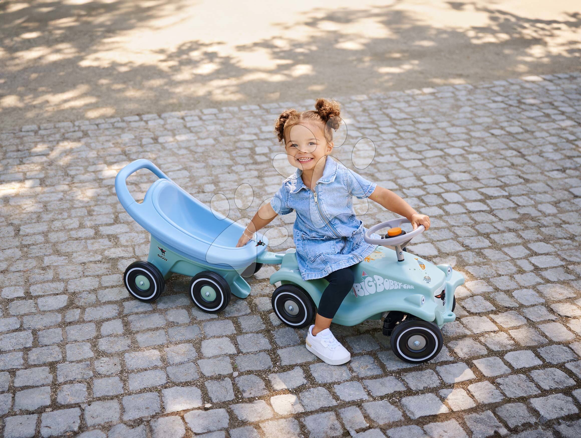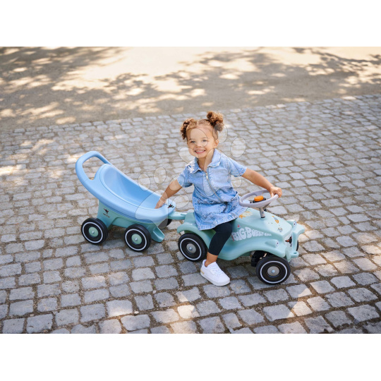 Chodítko a kočárek a přívěs Buggy 3v1 Baby Walker od renomovaného německého výrobce BIG, je originální multifunkční hračka, kterou využijí kluci i holky od 1 do 5 let. Lze ji zkombinovat se všemi odrážedly BIG Bobby Cars – Classic, New, Neo a Next. Tato moderní hračka v originálním modro-zeleném provedení je skutečně univerzální – menší děti ji využijí jako bezpečné chodítko, učí se s ní své první kroky, pak ji mohou využít jako kočárek pro své hračky, panenky a nakonec ji mohou připojit k odrážedlu jako přívěs a hrát si na řidiče. Multifunkční přívěs tak dokáže růst spolu s dítětem.