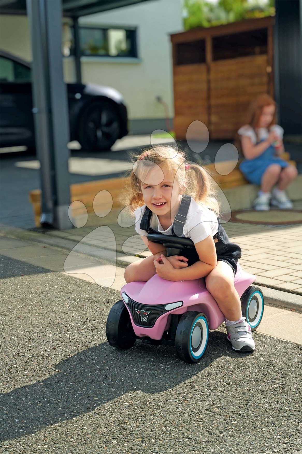 V přední i zadní části autíčka jsou konektory pro připojení doplňků značky BIG – vozík, tažné lano apod. Německý výrobce BIG produkuje kvalitní hračky pro děti různých věkových kategorií. Výrobky BIG jsou testovány v nezávislých ústavech a podtrhují kvalitu produktů. Odrážedlo pro děti je testováno německým kontrolním orgánem TÜV Rheinland v souladu s přísnými bezpečnostními normami GS. Logo značky BIG je buvol, který prezentuje sílu, odolnost a robustnost – přesně to jsou charakteristické prvky této značky. Značka BIG si zakládá na bezpečnosti svých produktů, použité materiály jsou nejen kvalitní, ale i zdravotně nezávadné.
