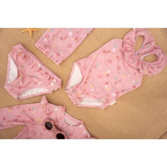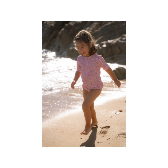 Plavky z UV ochranné tkaniny s krásným potiskem chrání vaše dítě před sluncem při koupání u moře i doma na zahradě. Ať už vaše děti milují skákání ve vlnách, koupání v bazénu nebo si rády staví hrady z písku, v těchto plavkách si mohou bezstarostně užívat celý den. Složení: 82% recyklovaný polyester, 18% elastan Ochranný faktor: UPF 50+ Při pobytu na slunci používejte pro dítě ochranné opalovací krémy. Možno prát v pračce na 30°C. Po každém použití plavky propláchněte v čisté studené vodě.