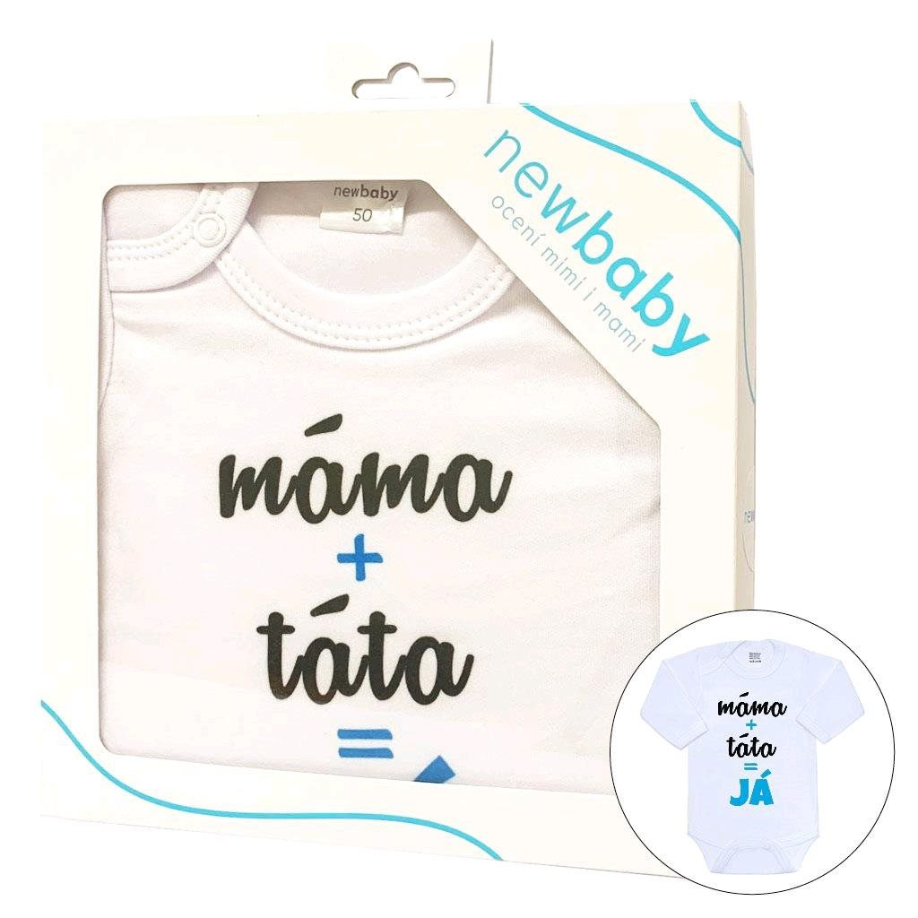 Body s potiskem New Baby máma plus táta rovná se JÁ - dárkové balení