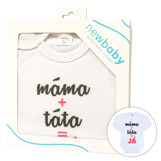 Body s potiskem New Baby máma plus táta rovná se JÁ - dárkové balení