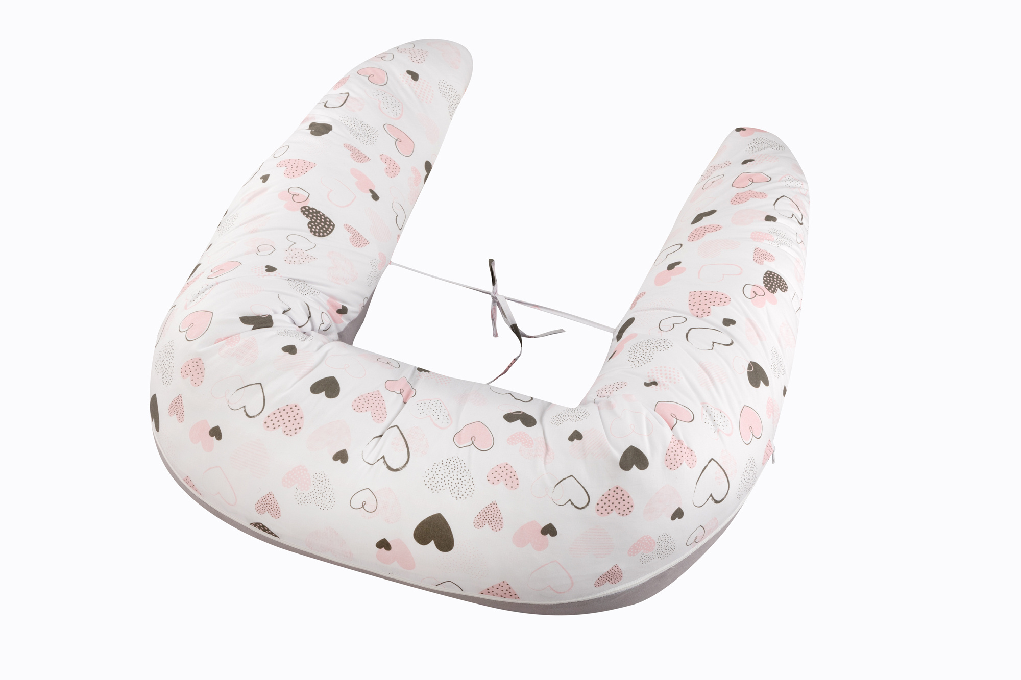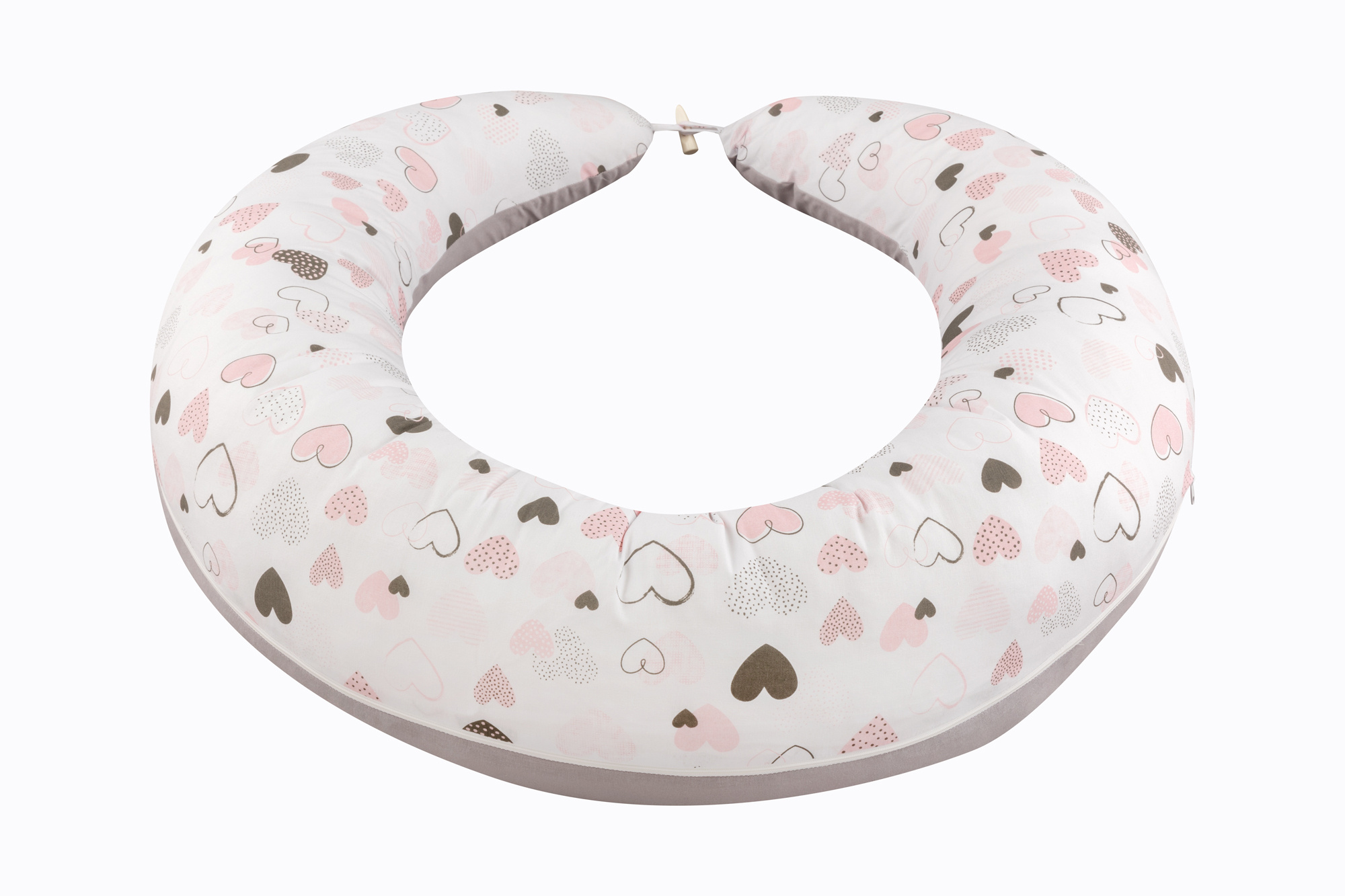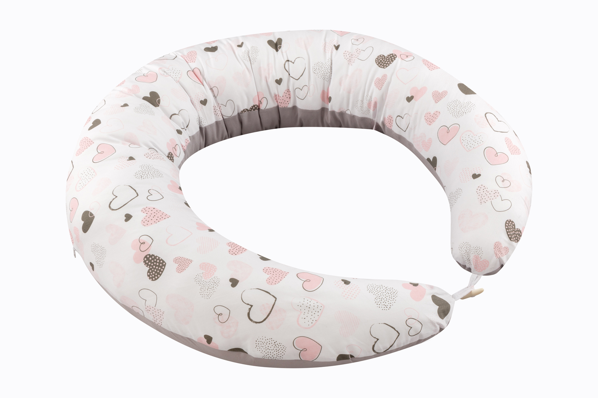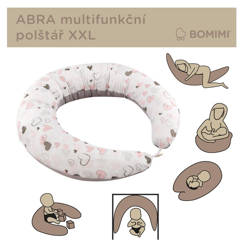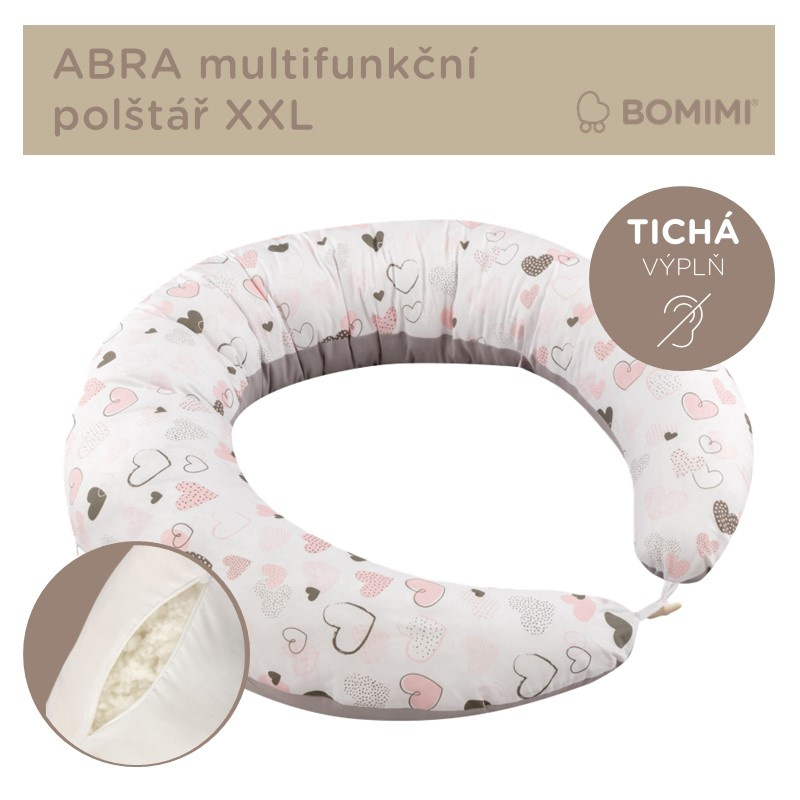 Bomimi ABRA multifunkční polštář XXL, SRDÍČKA růžová/šedá