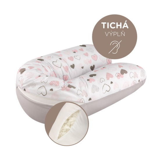 Bomimi ADOS kojící polštář 150x30, SRDÍČKA růžová/šedá