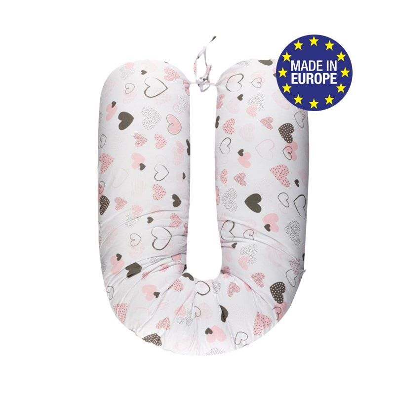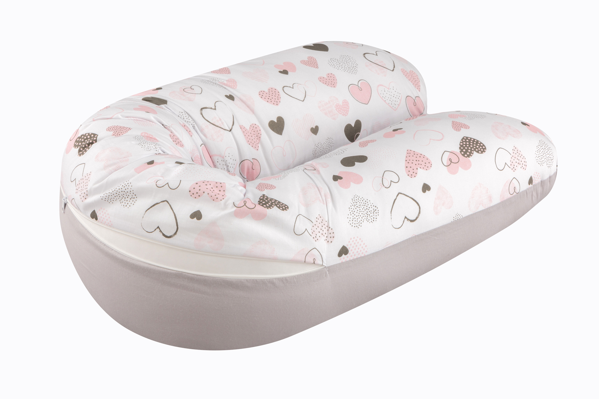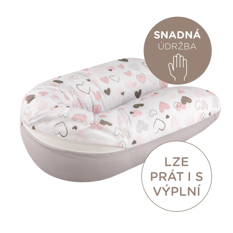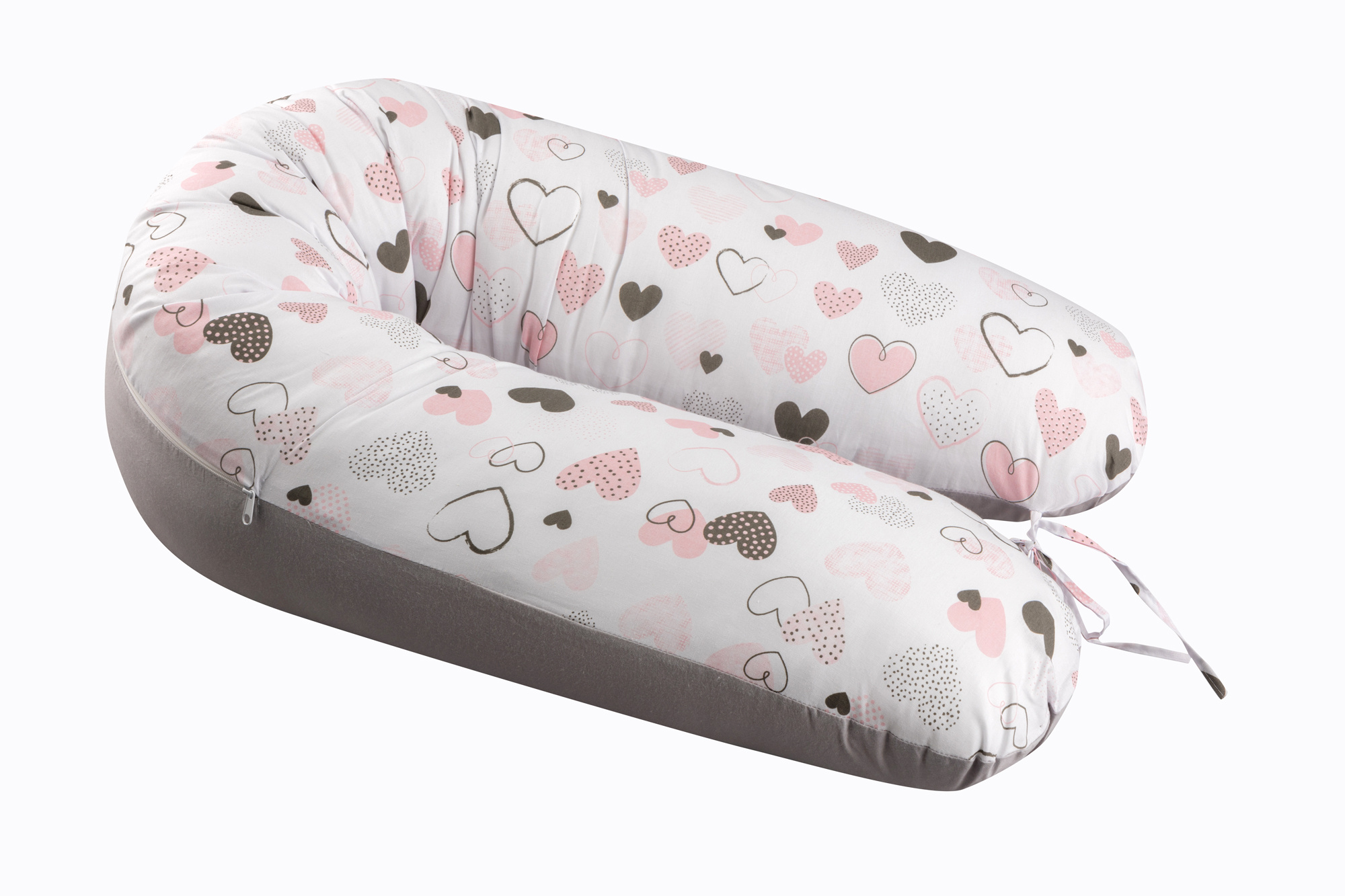 Bomimi ADOS kojící polštář 150x30, SRDÍČKA růžová/šedá