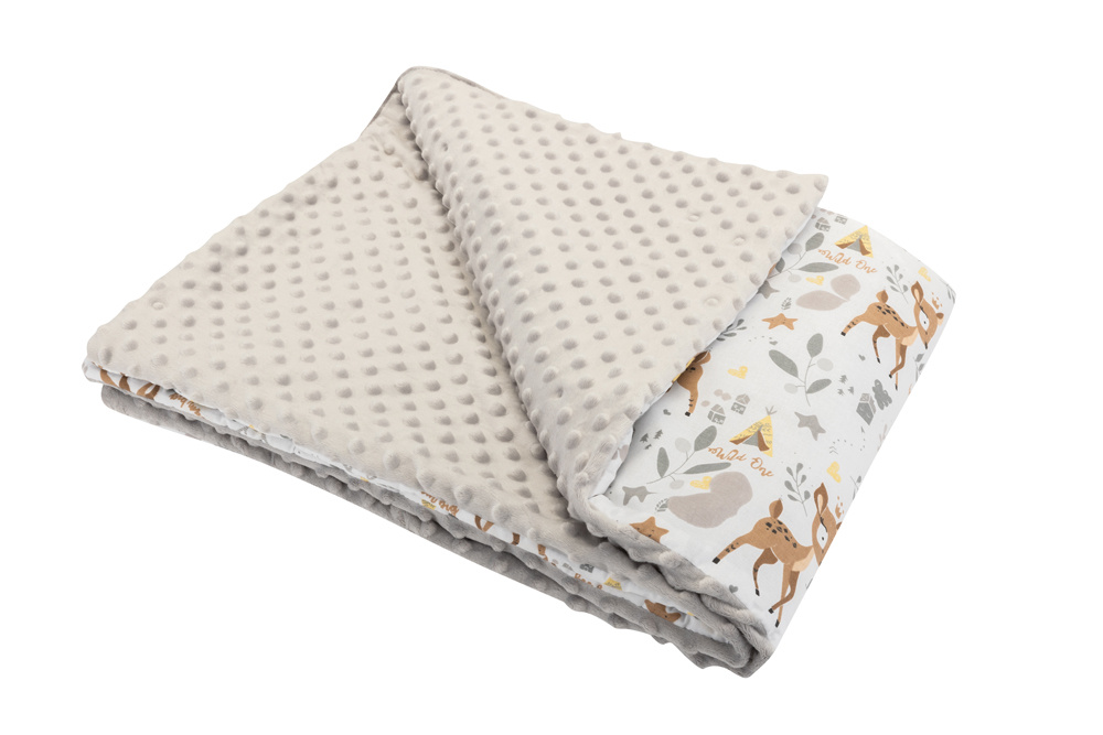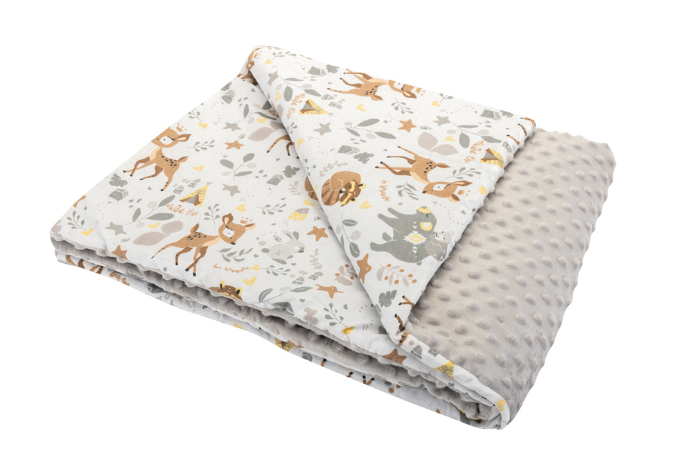 Dětská luxusní oboustranná deka vyrobena z jedné strany ze 100% bavlny a z druhé z jemného, hřejivého a luxusního materiálu MINKY. Měkoučká deka je pro větší pohodlí s výplní z antialergického polyesterového vlákna.