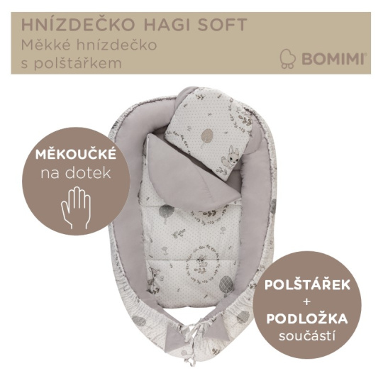 Bomimi HAGI Hnízdečko s polštářkem soft, KOLOUŠEK šedá