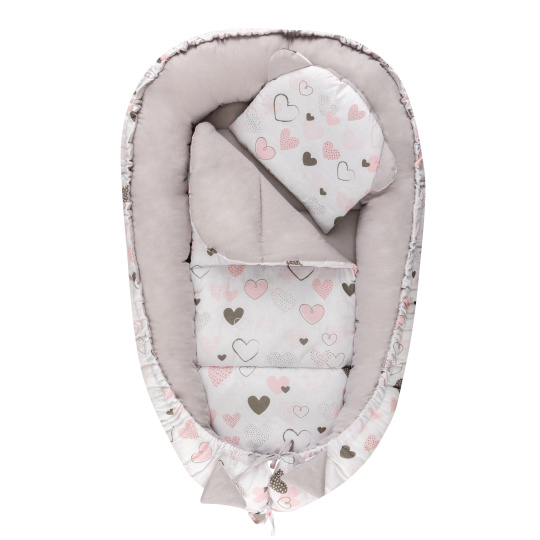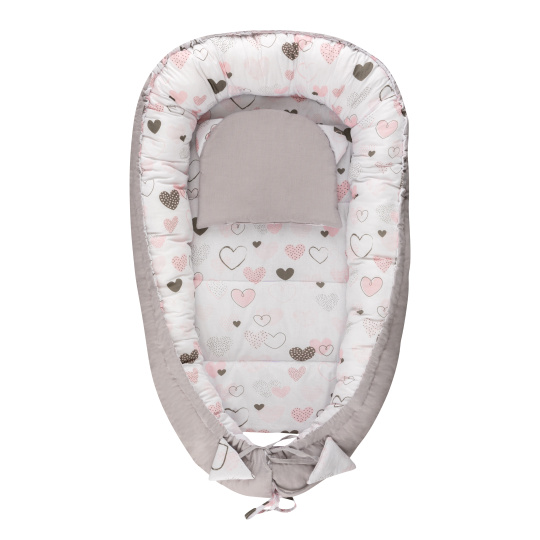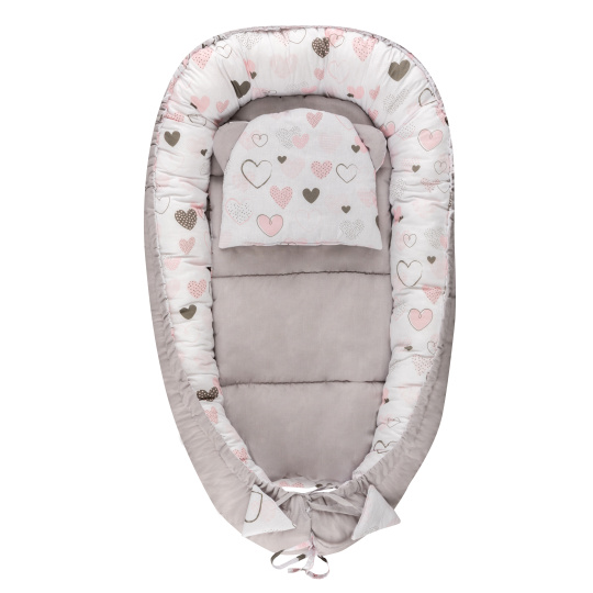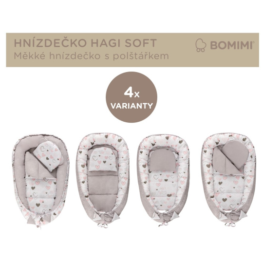 Bomimi HAGI Hnízdečko s polštářkem soft, SRDÍČKA šedá